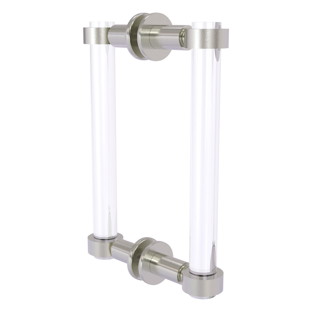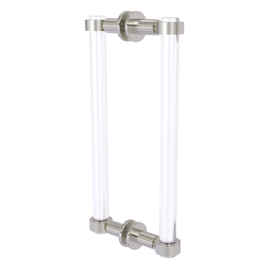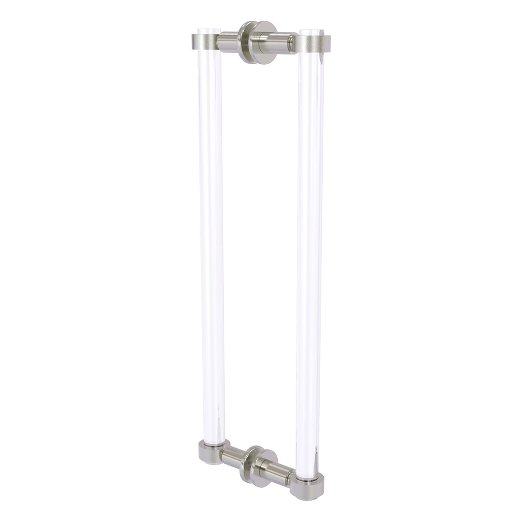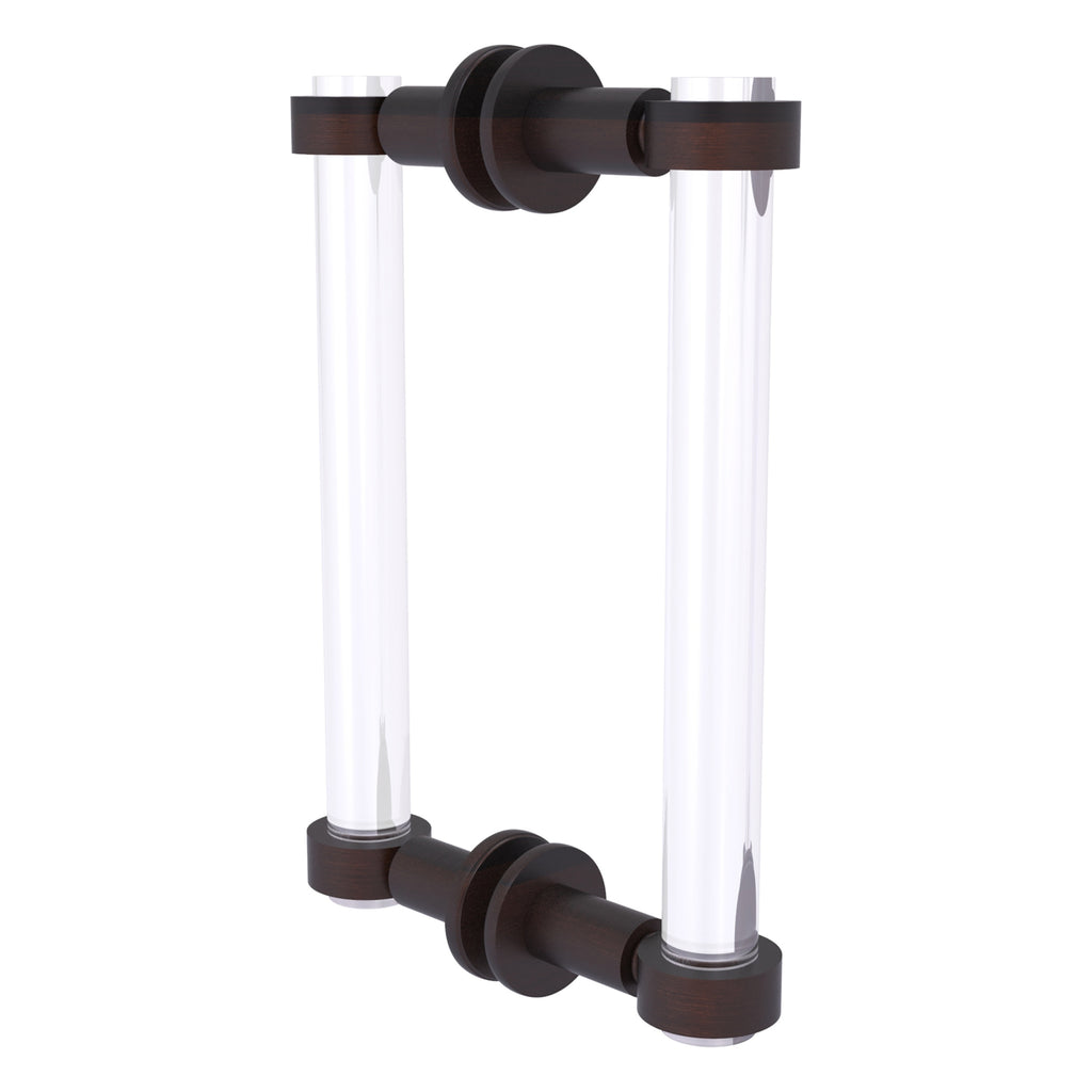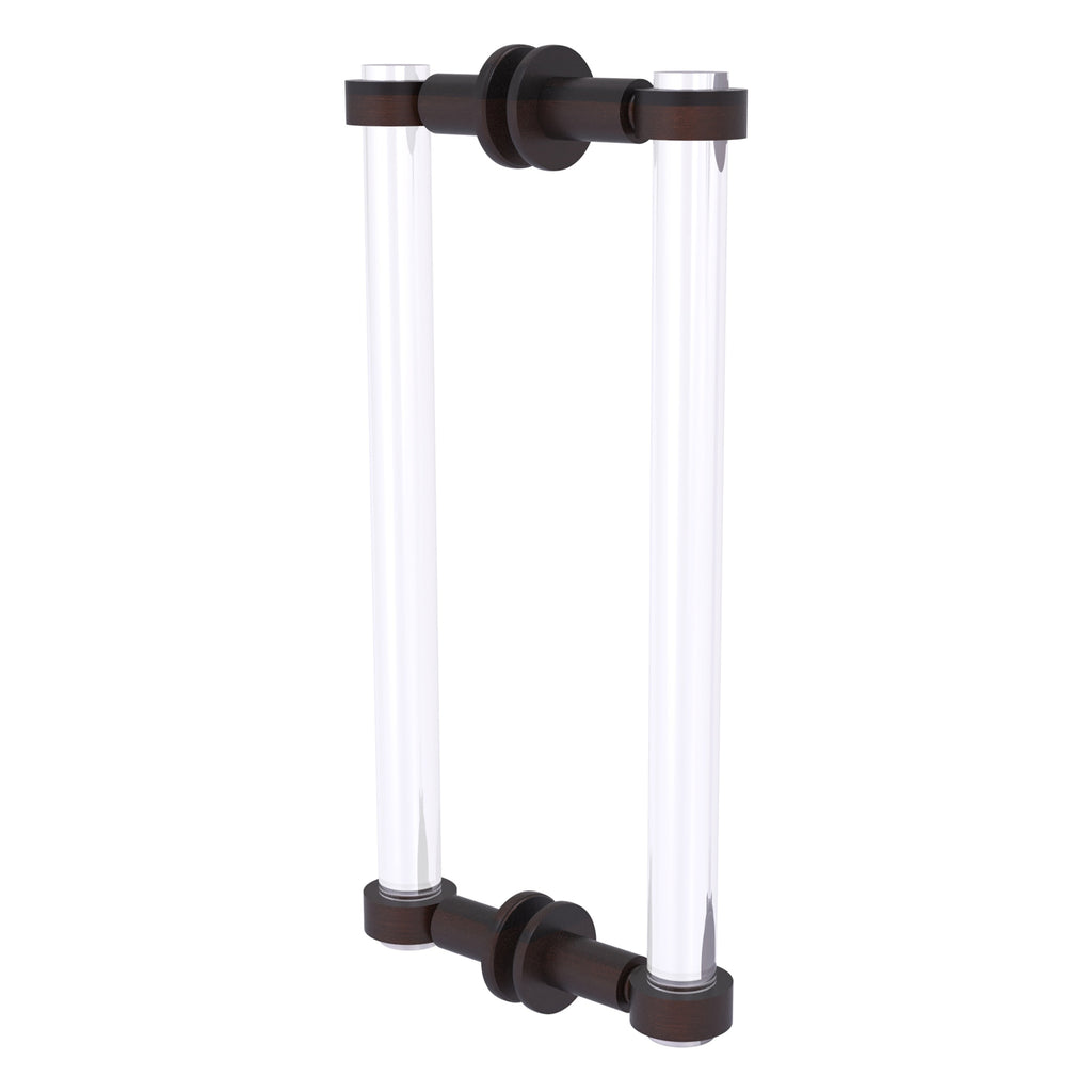 The clean sharp lines of this modern back-to-back shower door pull fits well with any bathroom decor ranging from modern to traditional. Made from high quality solid brass with accents of clear acrylic and provided with your choice of any of our lifetime designer finishes, the shower door pull is extremely attractive yet highly functional. Ideal for glass shower doors of all sizes and styles, the easy to install back-to-back shower door pull comes with two durable u-shaped pulls made from solid brass and all the hardware necessary for installation.