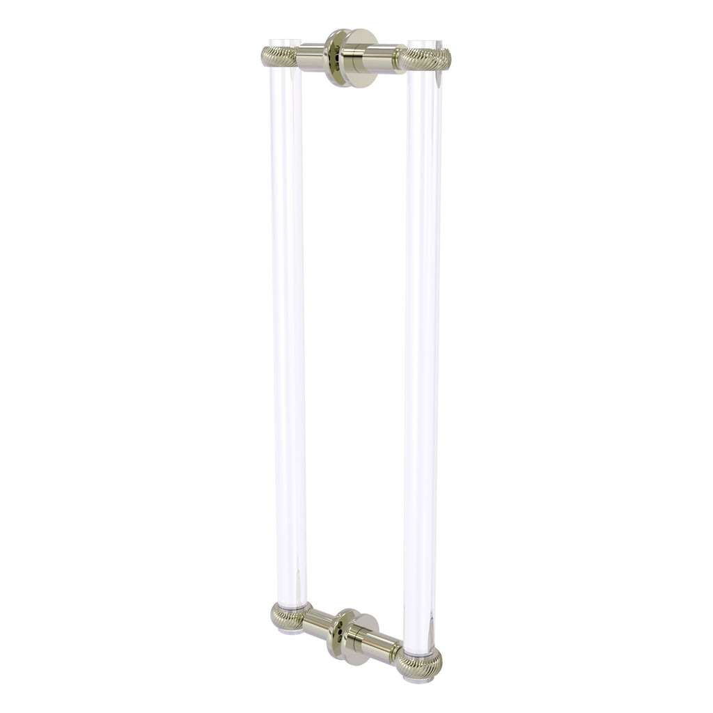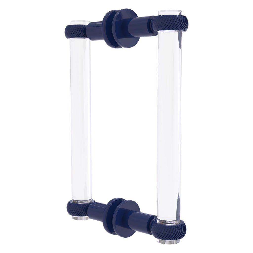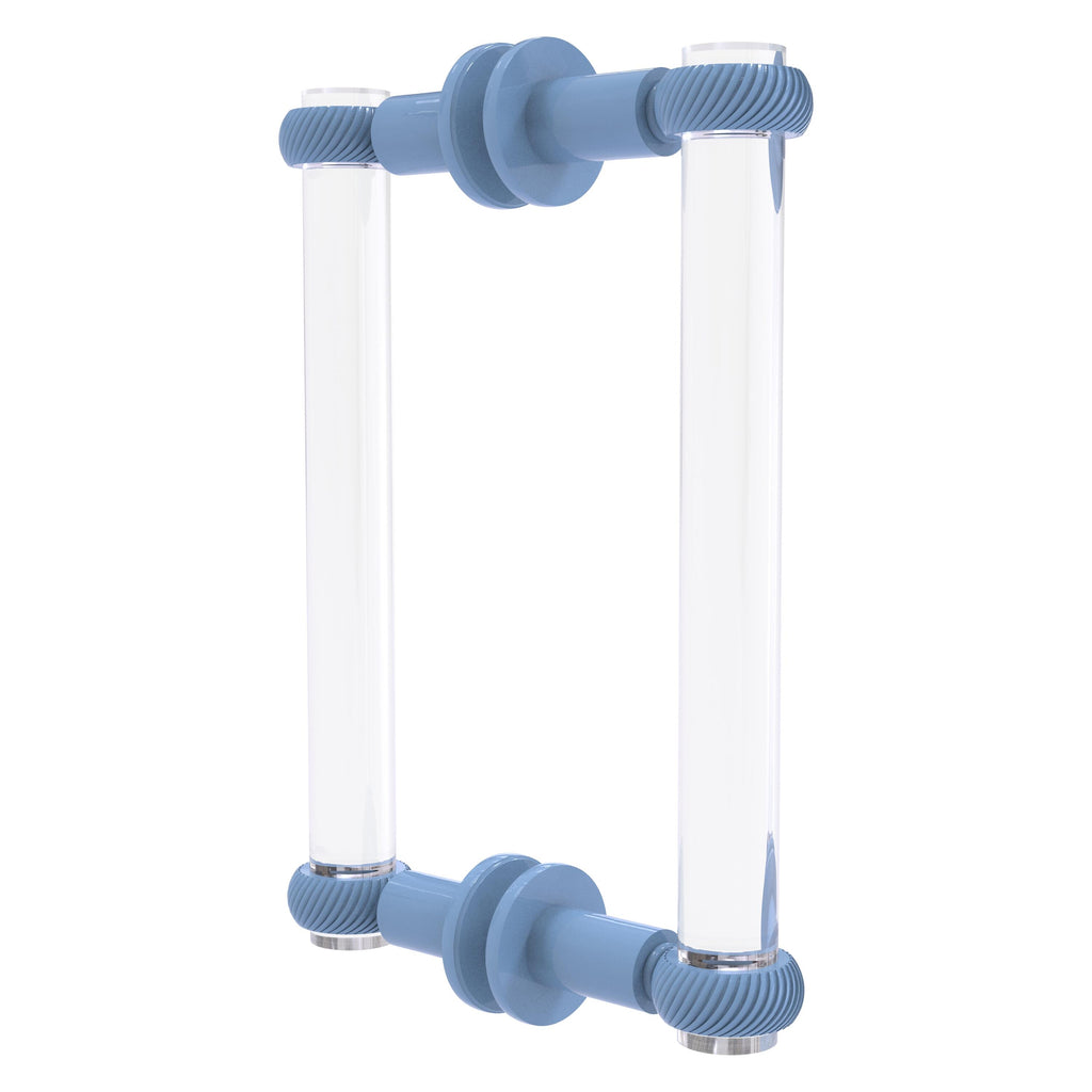 The clean sharp lines of this modern back-to-back shower door pull fits well with any bathroom decor ranging from modern to traditional. Made from high quality solid brass with accents of clear acrylic and provided with your choice of any of our lifetime designer finishes, the shower door pull is extremely attractive yet highly functional. Ideal for glass shower doors of all sizes and styles, the easy to install back-to-back shower door pull comes with two durable u-shaped pulls made from solid brass and all the hardware necessary for installation.