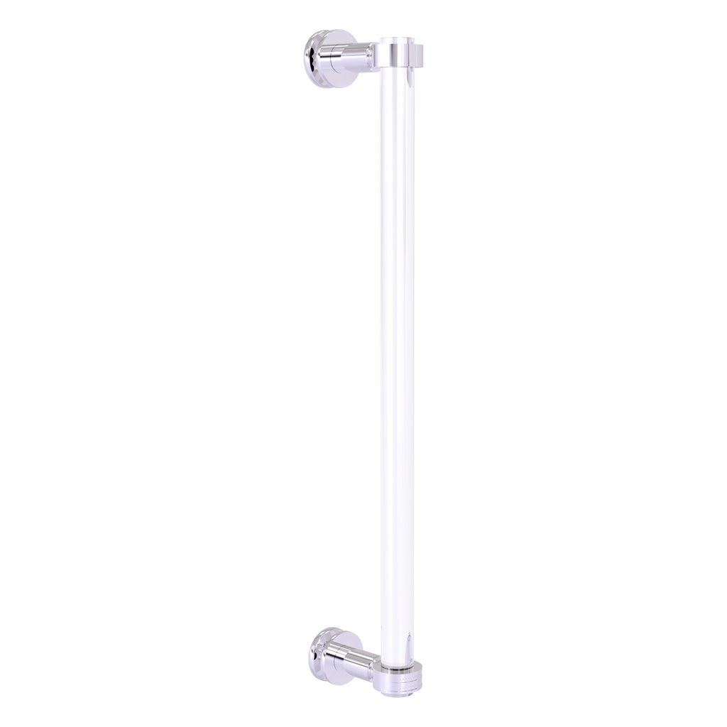 The clean sharp lines of this modern shower door pull fits well with any bathroom décor ranging from modern to traditional. Made from high quality solid brass with accents of clear acrylic and provided with your choice of any of our lifetime designer finishes, the shower door pull is extremely attractive yet highly functional. Ideal for glass shower doors of all sizes and styles, the easy to install shower door pull comes with durable u-shaped pull made from solid brass and all the hardware necessary for installation.
