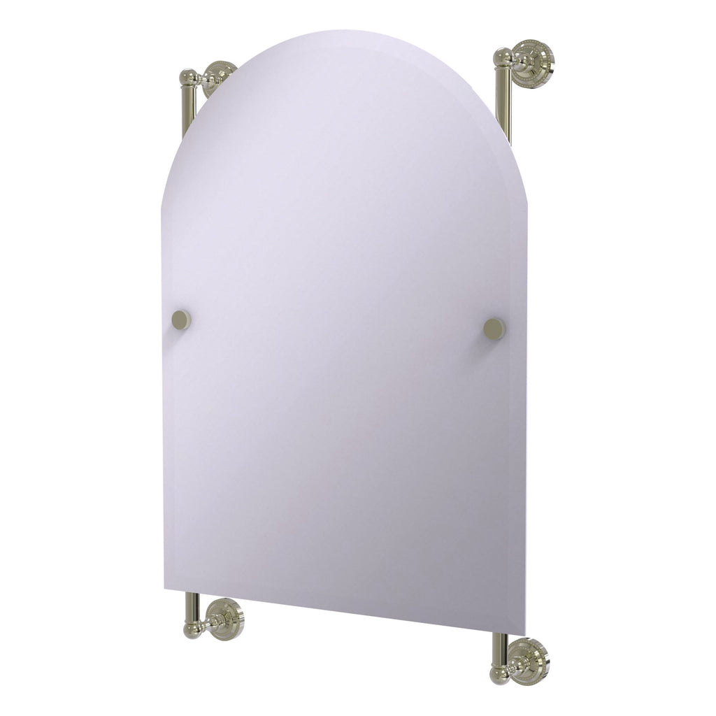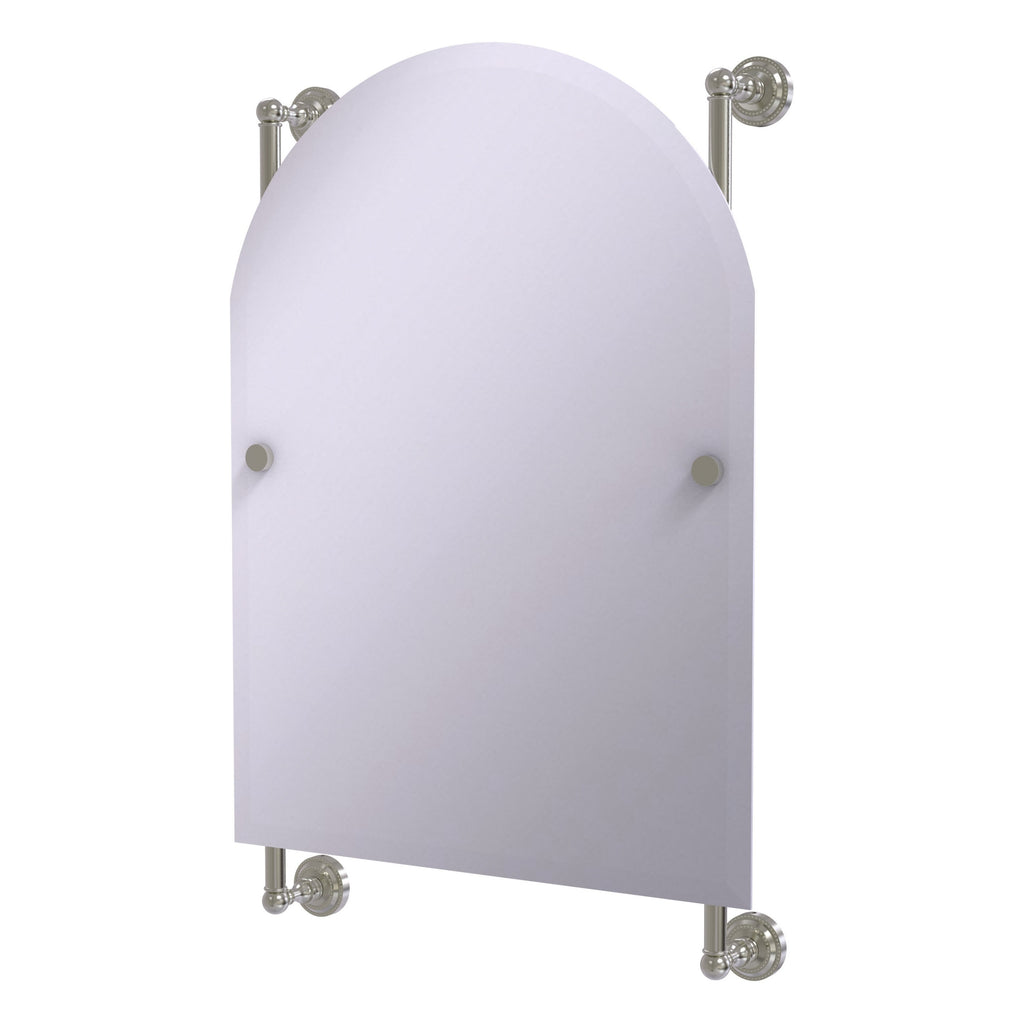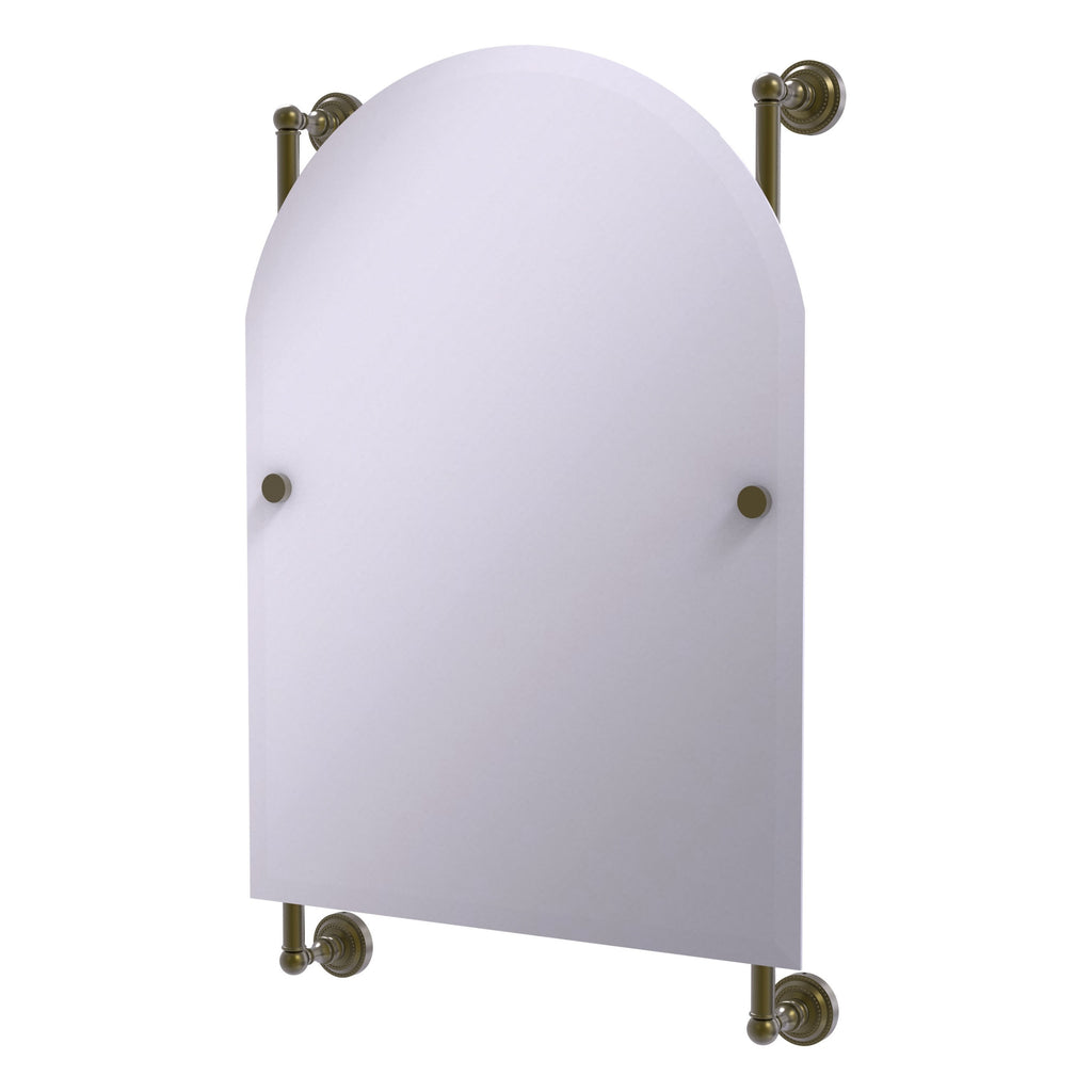 - Frameless 21 x 29 inch arched top mirror with beveled edge