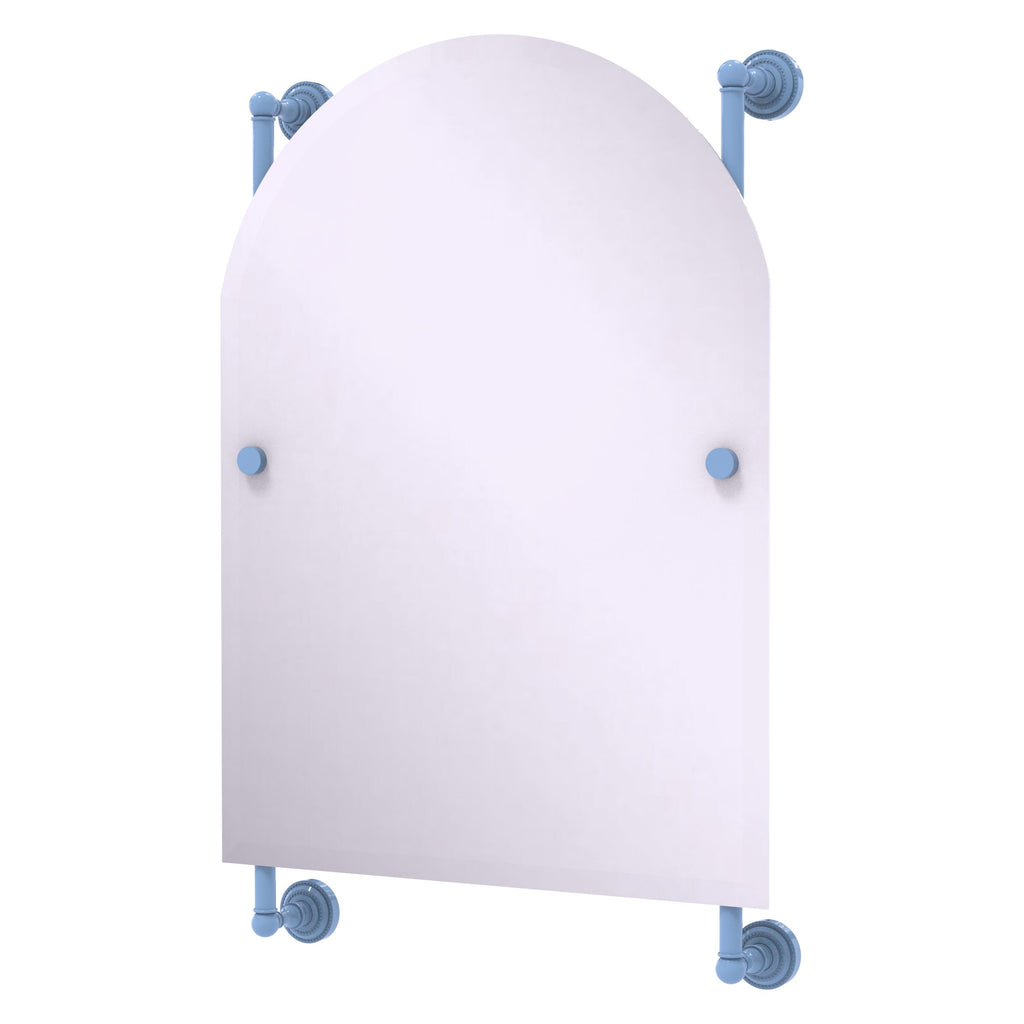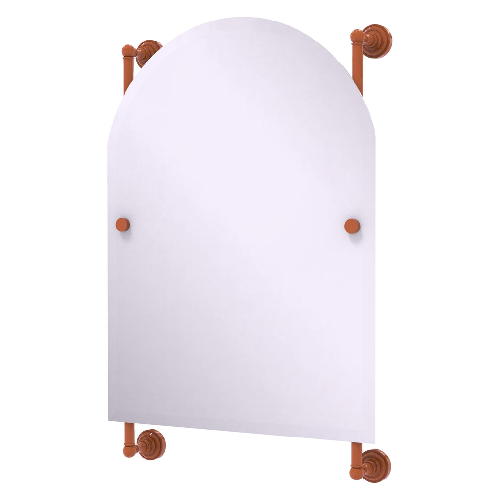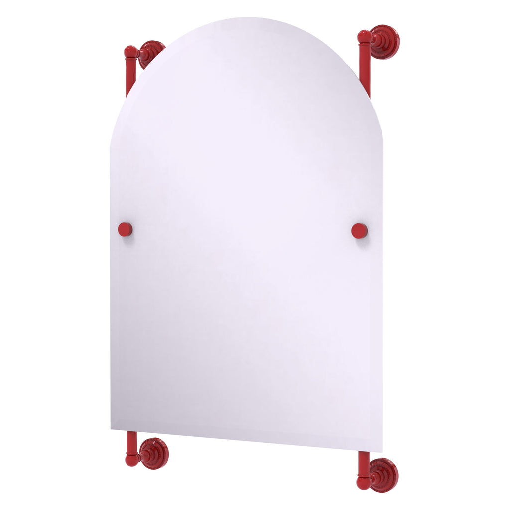 - Frameless 21 x 29 inch arched top mirror with beveled edge