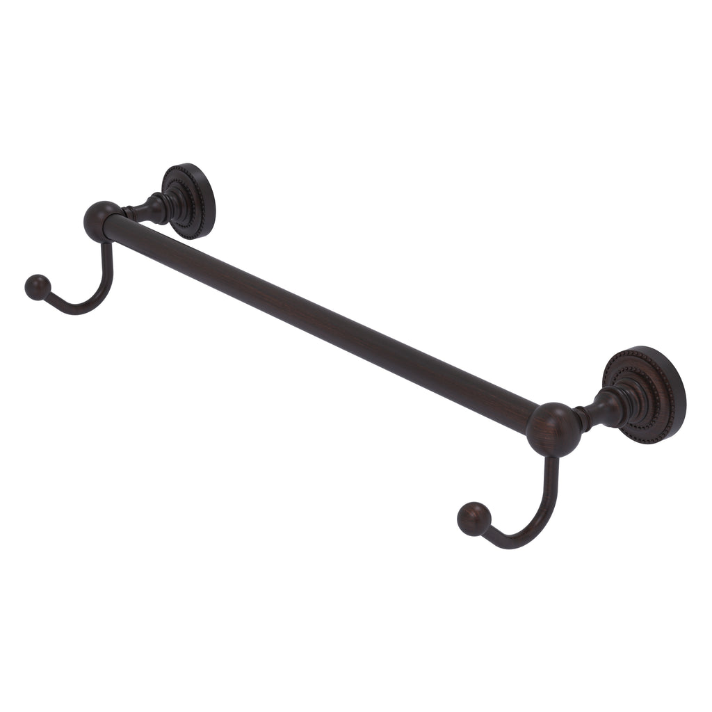 "Save space in your bathroom, with this fashionable towel bar with integrated hooks. This brass towel bar is an excellent choice for a modern bathroom. Its simple, yet stylish design, adds a sleek finish to your bathroom. Any of our designer finishes make this bar a perfect fit for any dǸcor style. This bar looks wonderful in any bathroom and it gives a feel of comfort and safety. Its integrated hooks add convenience to this towel bar, as it allows you to also use this accessory for holding your bathrobes or for drying your towels before placing them back on the rod."