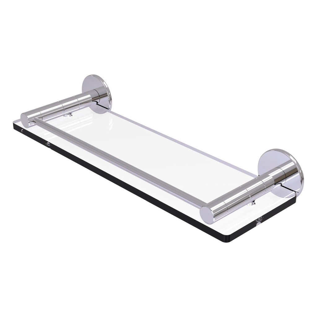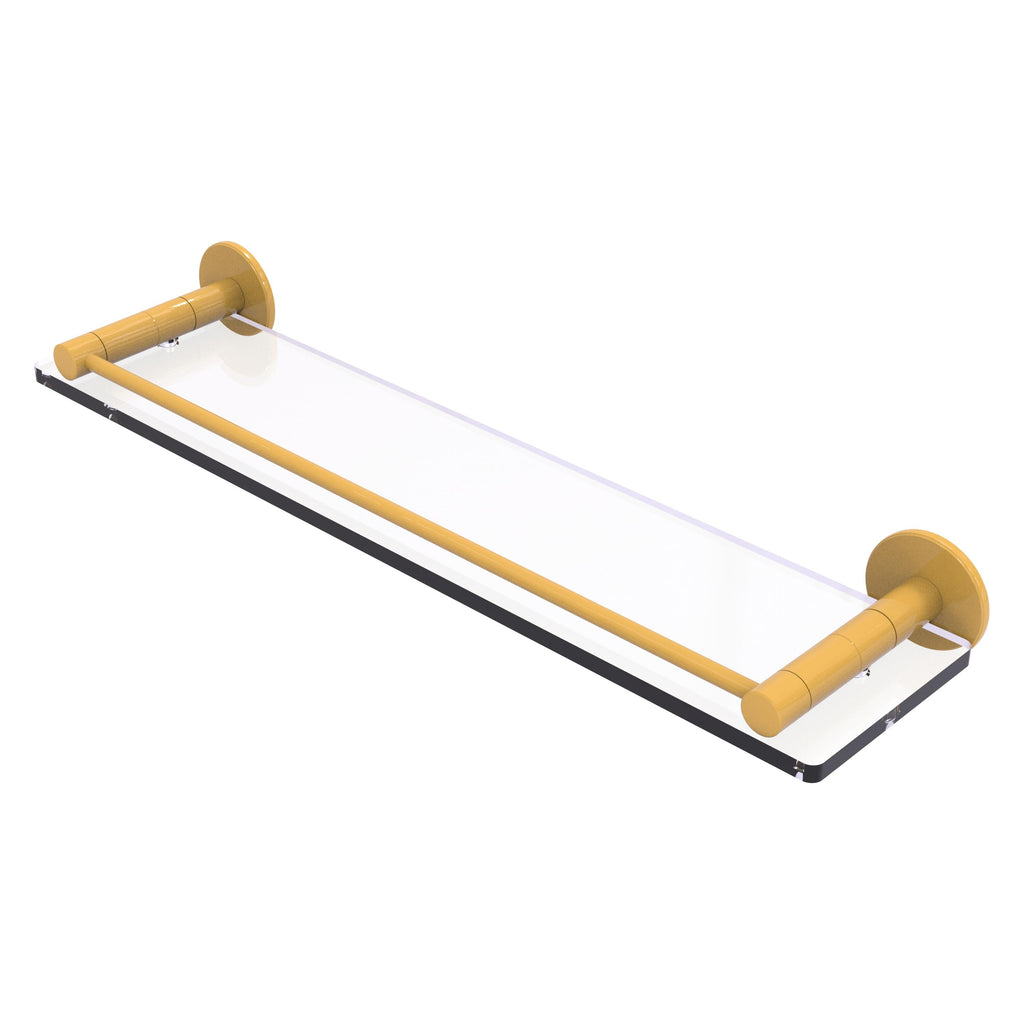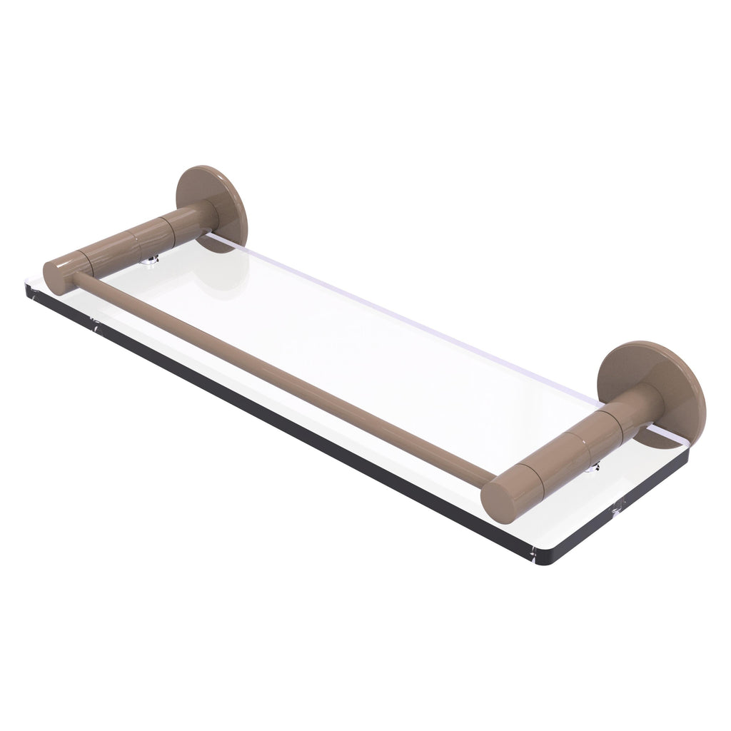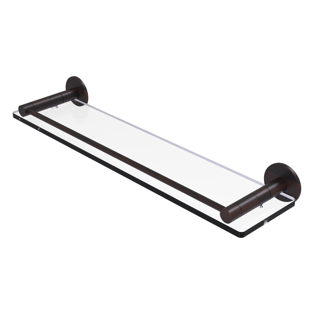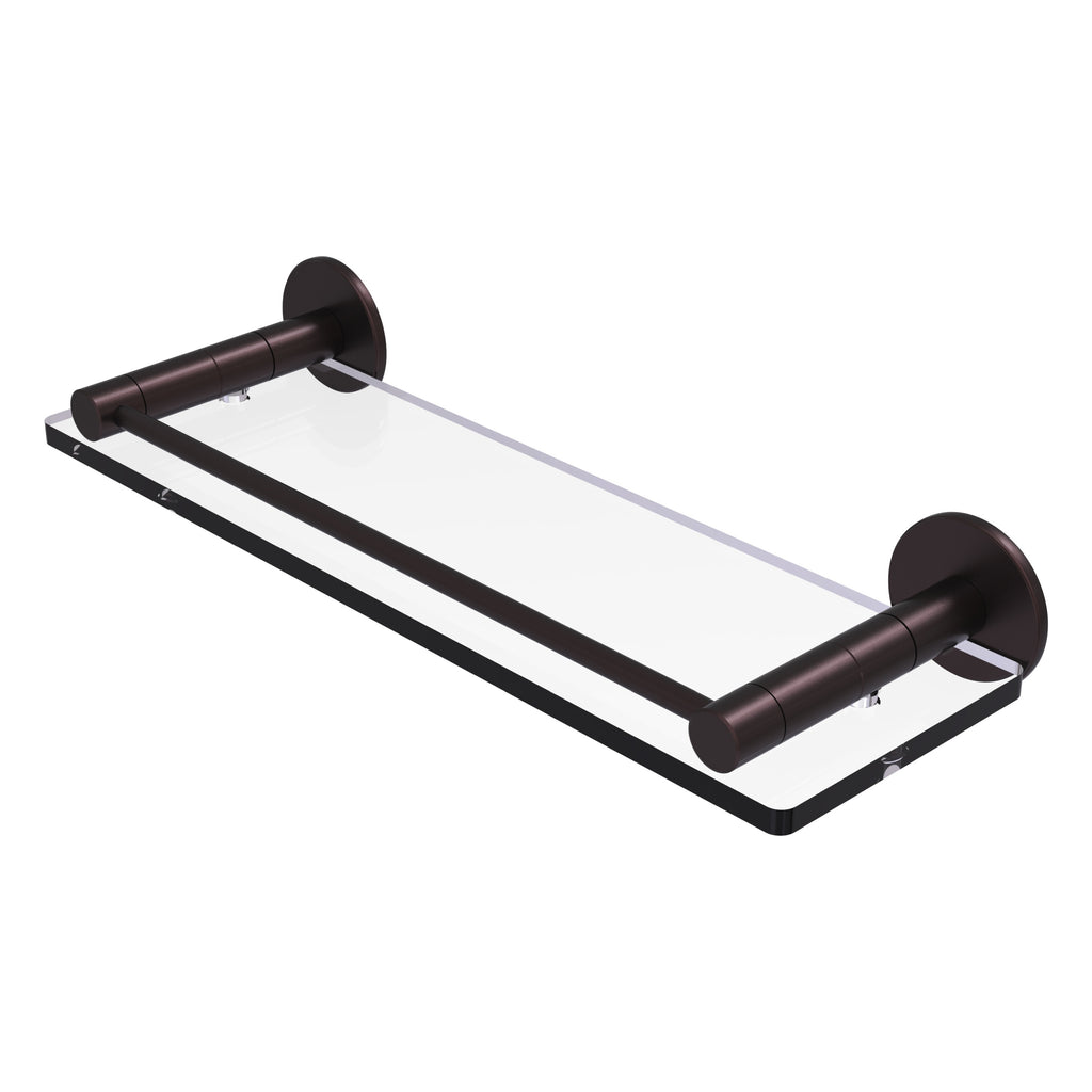 Add space and organization to your bathroom with this simple, contemporary style glass shelf. Featuring tempered, beveled-edged glass and solid brass hardware this shelf is crafted for durability, strength and style. One of the many coordinating accessories in the Allied Brass Fresno Collection, this subtle glass shelf is the perfect complement to your bathroom decor.