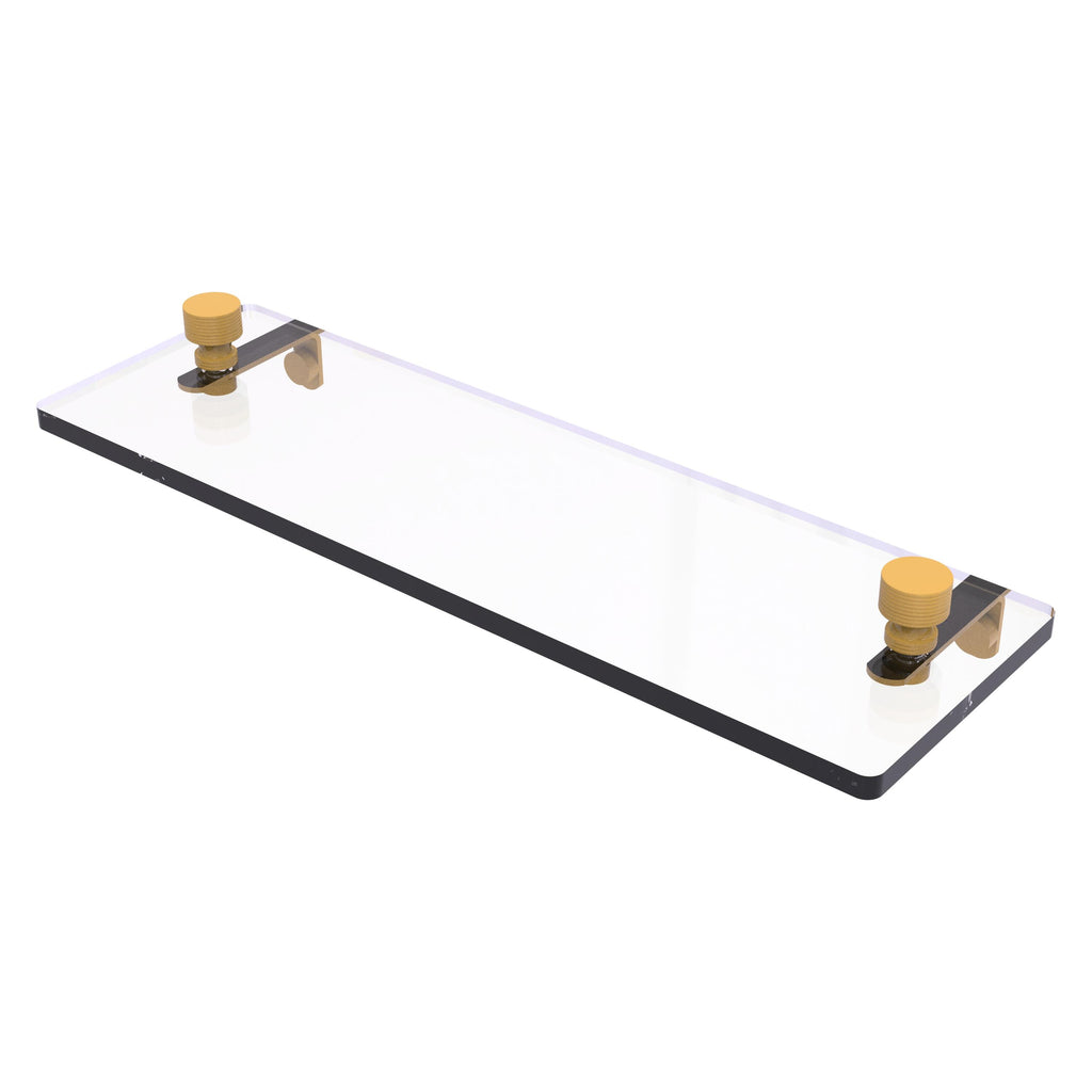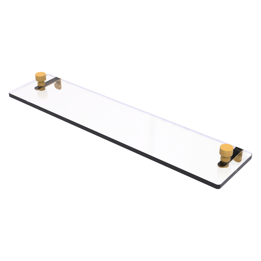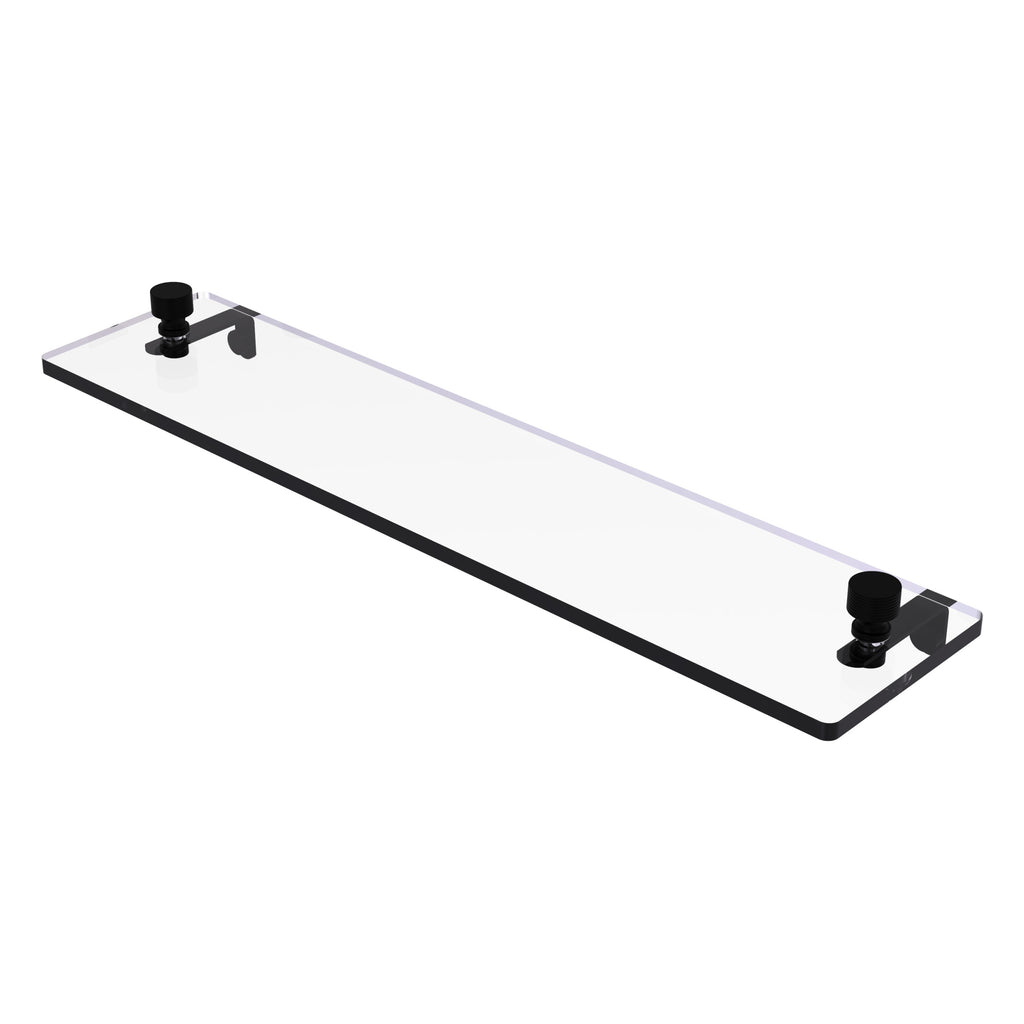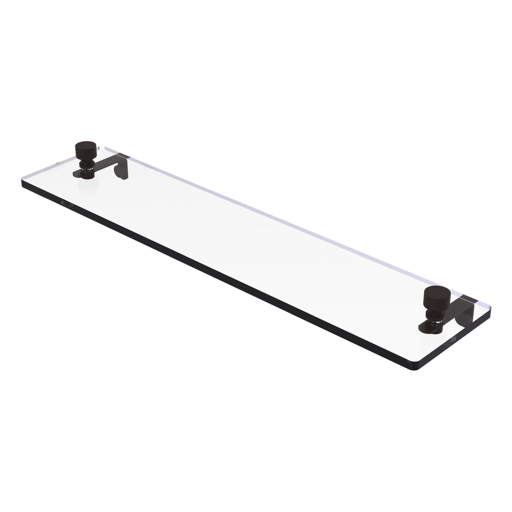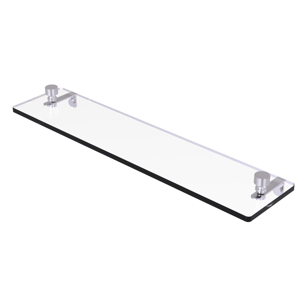 Add space and organization to your bathroom with this simple, contemporary style glass shelf. Featuring tempered, beveled-edged glass and solid brass hardware this shelf is crafted for durability, strength and style. One of the many coordinating accessories in the Allied Brass Foxtrot Collection, this subtle glass shelf is the perfect complement to your bathroom decor.