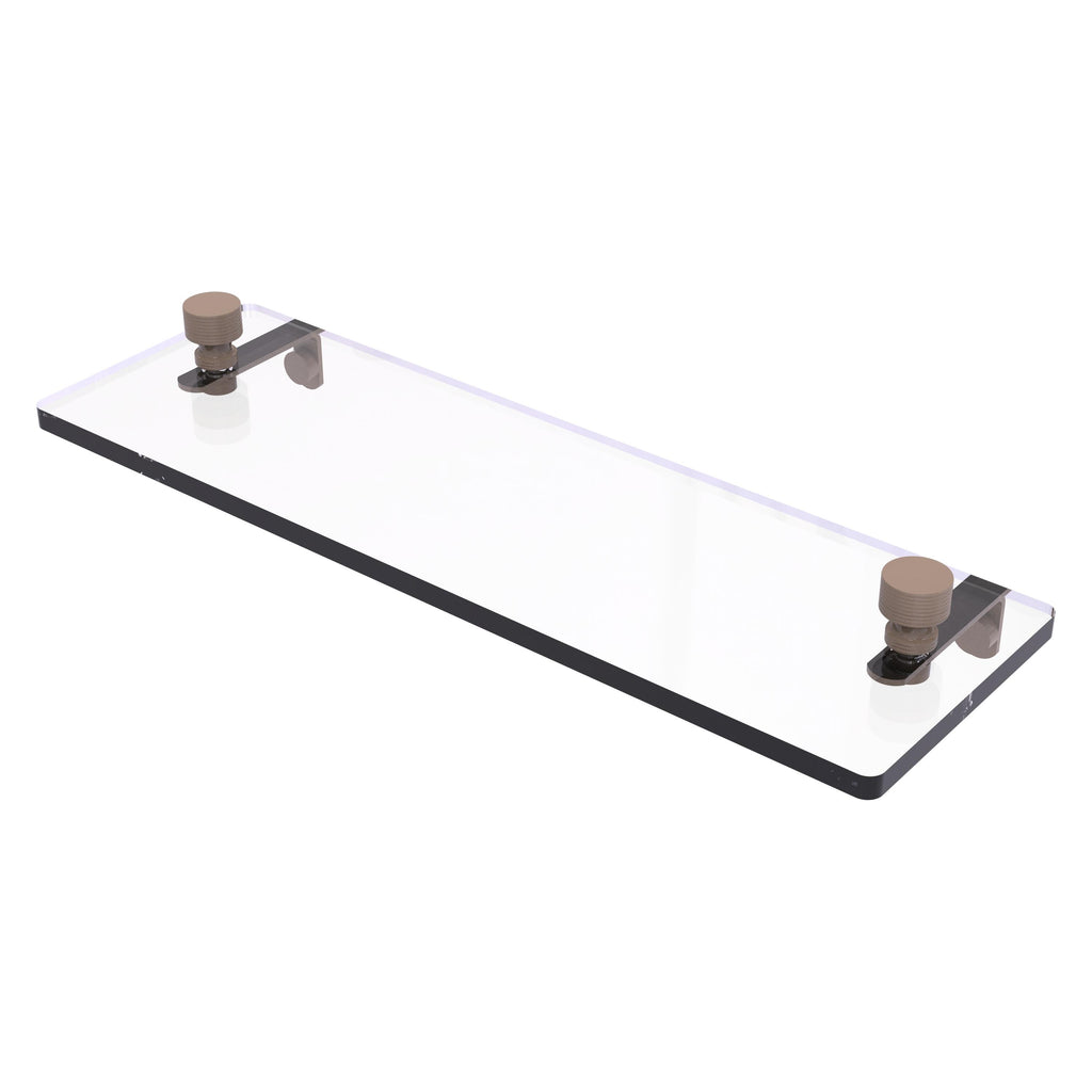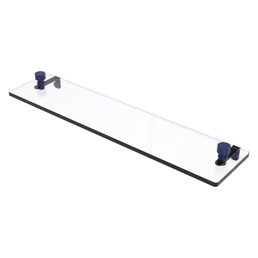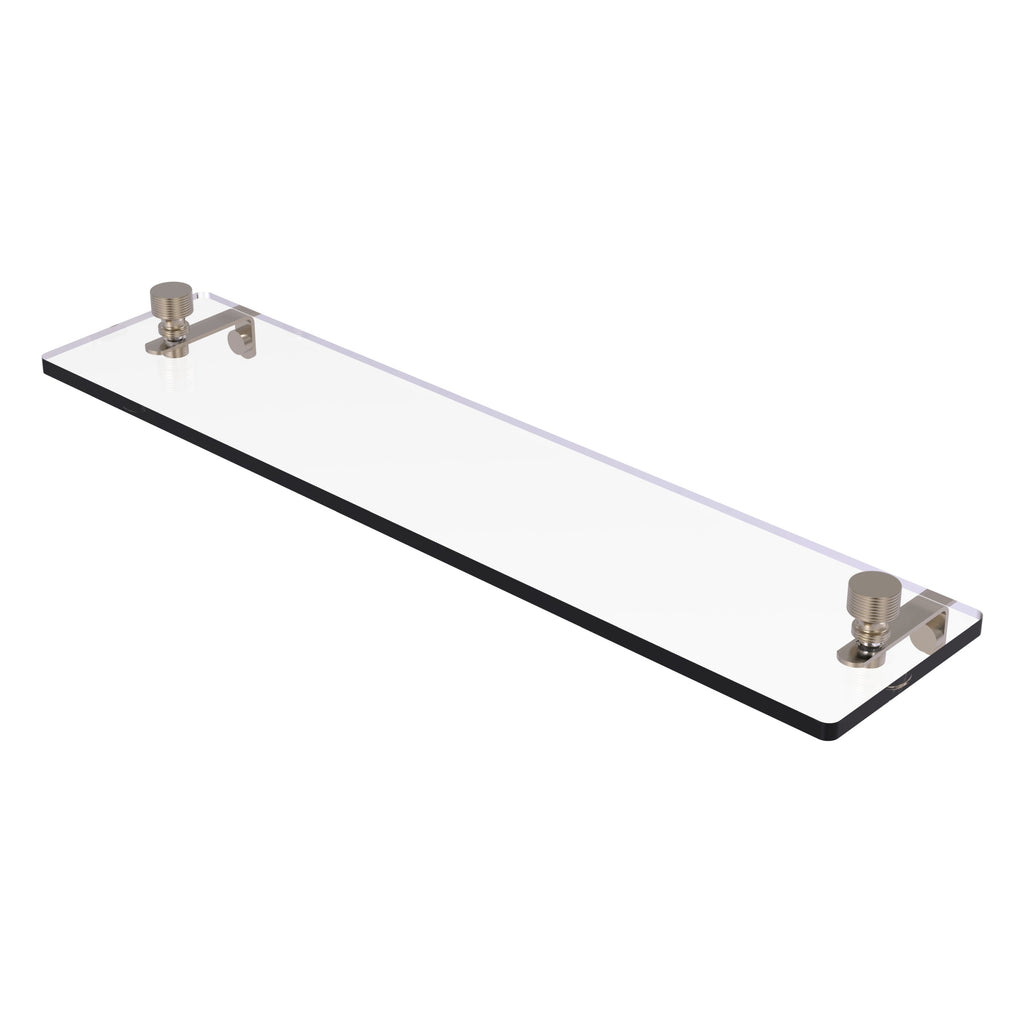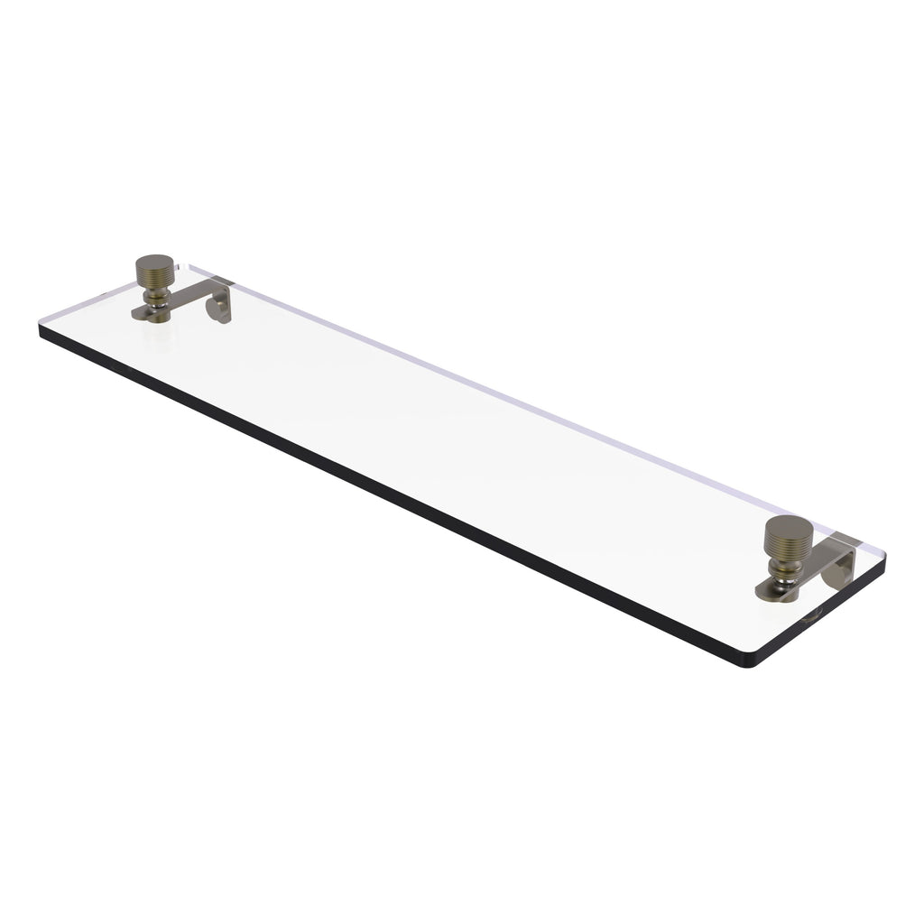 Add space and organization to your bathroom with this simple, contemporary style glass shelf. Featuring tempered, beveled-edged glass and solid brass hardware this shelf is crafted for durability, strength and style. One of the many coordinating accessories in the Allied Brass Foxtrot Collection, this subtle glass shelf is the perfect complement to your bathroom decor.