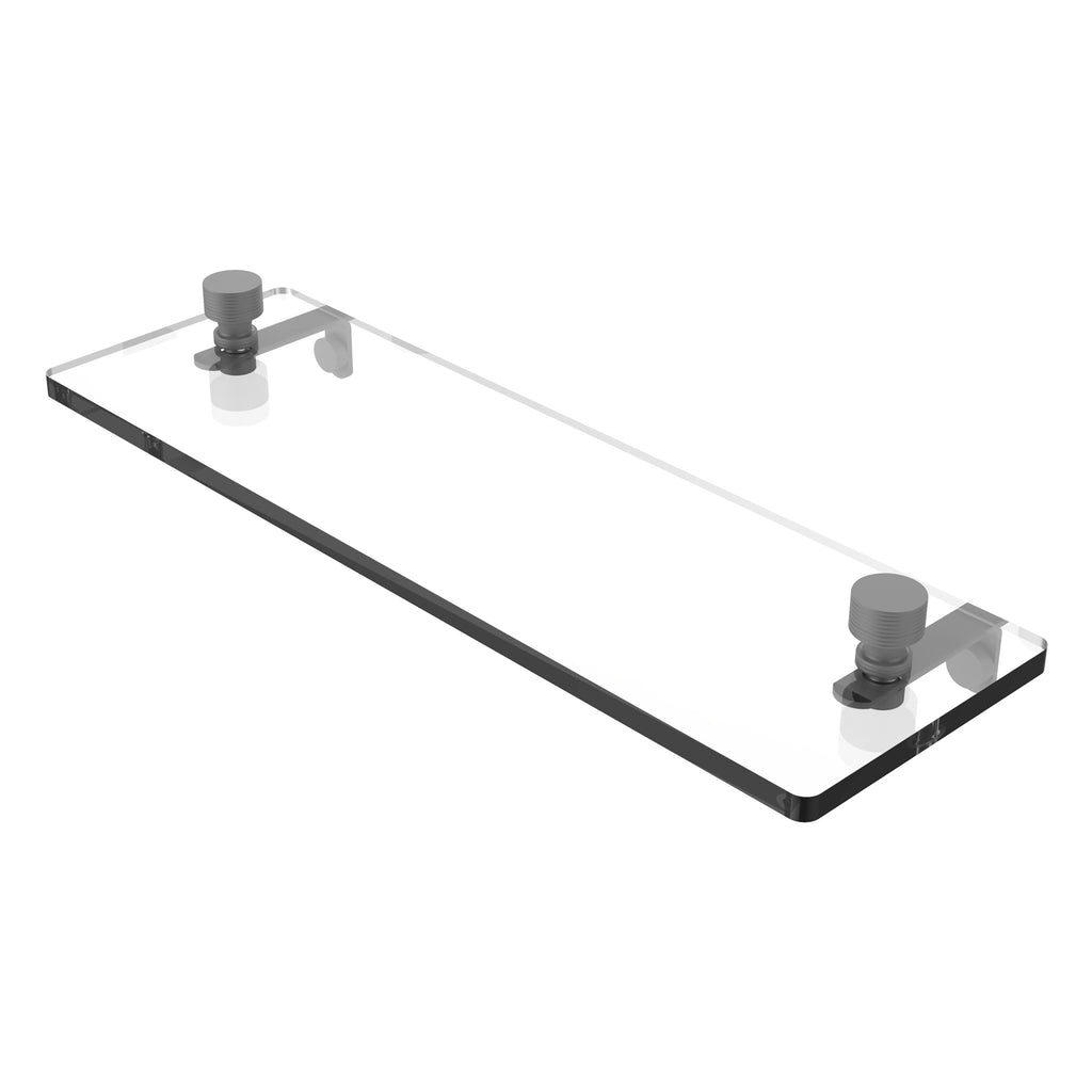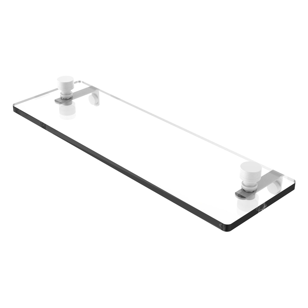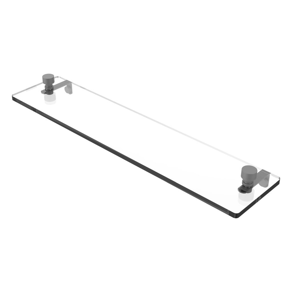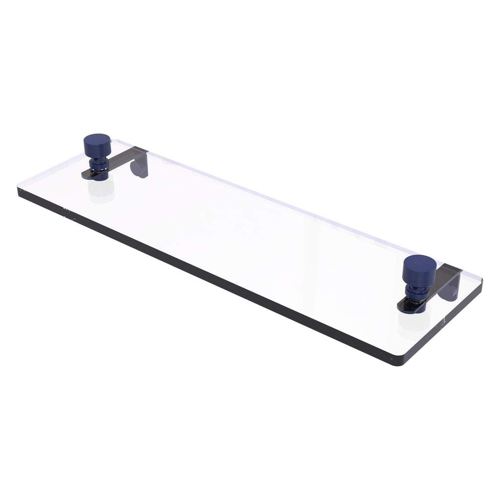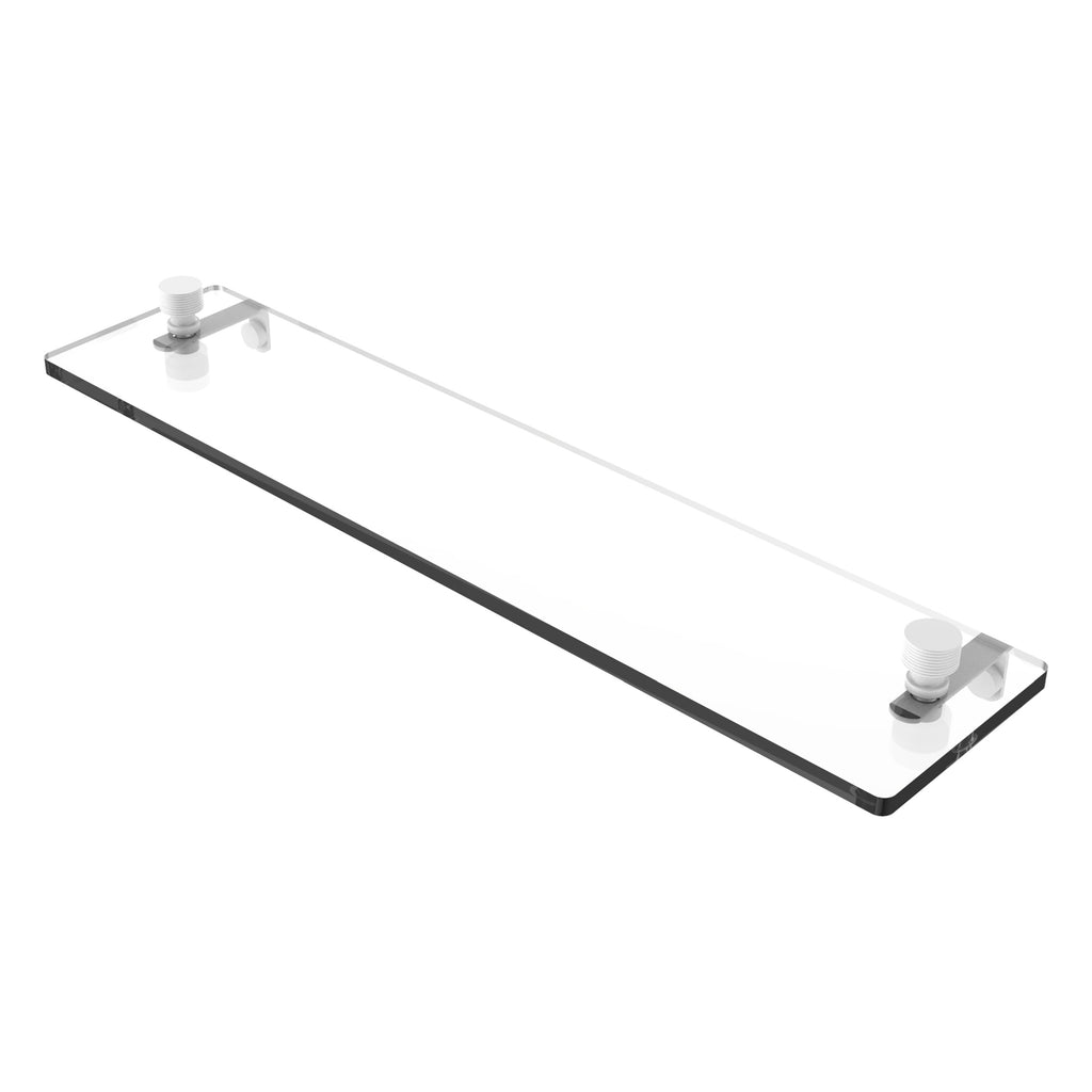 Add space and organization to your bathroom with this simple, contemporary style glass shelf. Featuring tempered, beveled-edged glass and solid brass hardware this shelf is crafted for durability, strength and style. One of the many coordinating accessories in the Allied Brass Foxtrot Collection, this subtle glass shelf is the perfect complement to your bathroom decor.