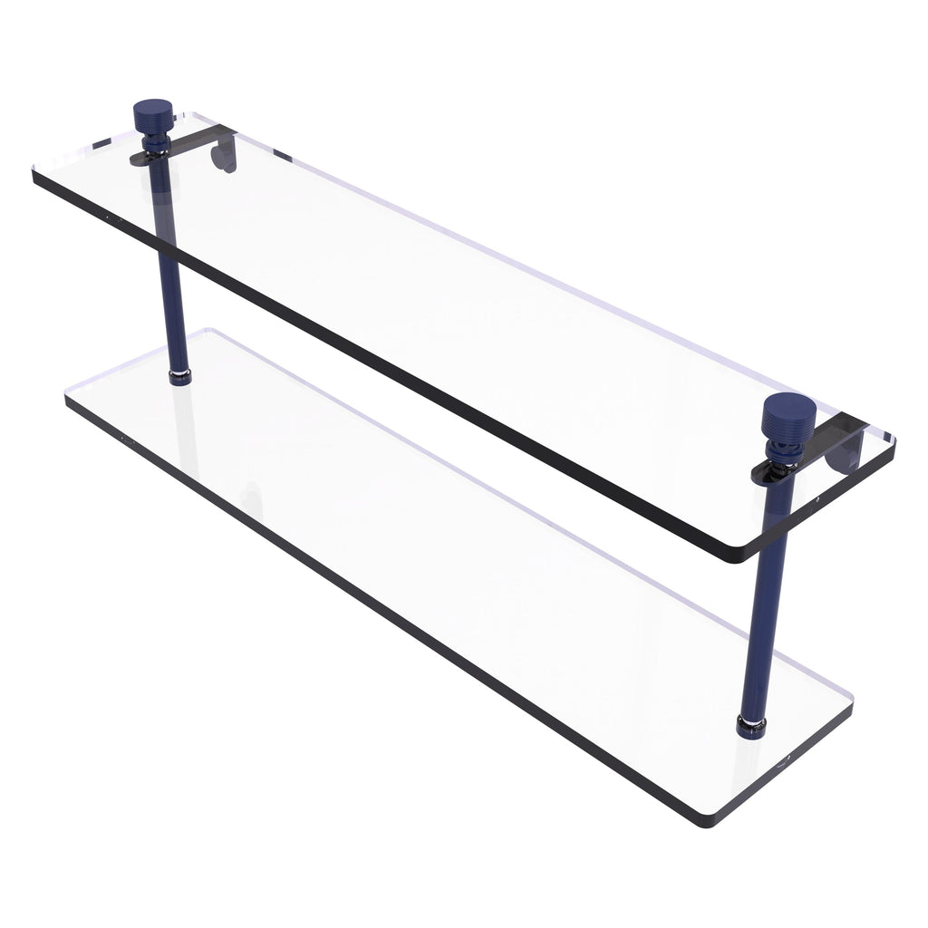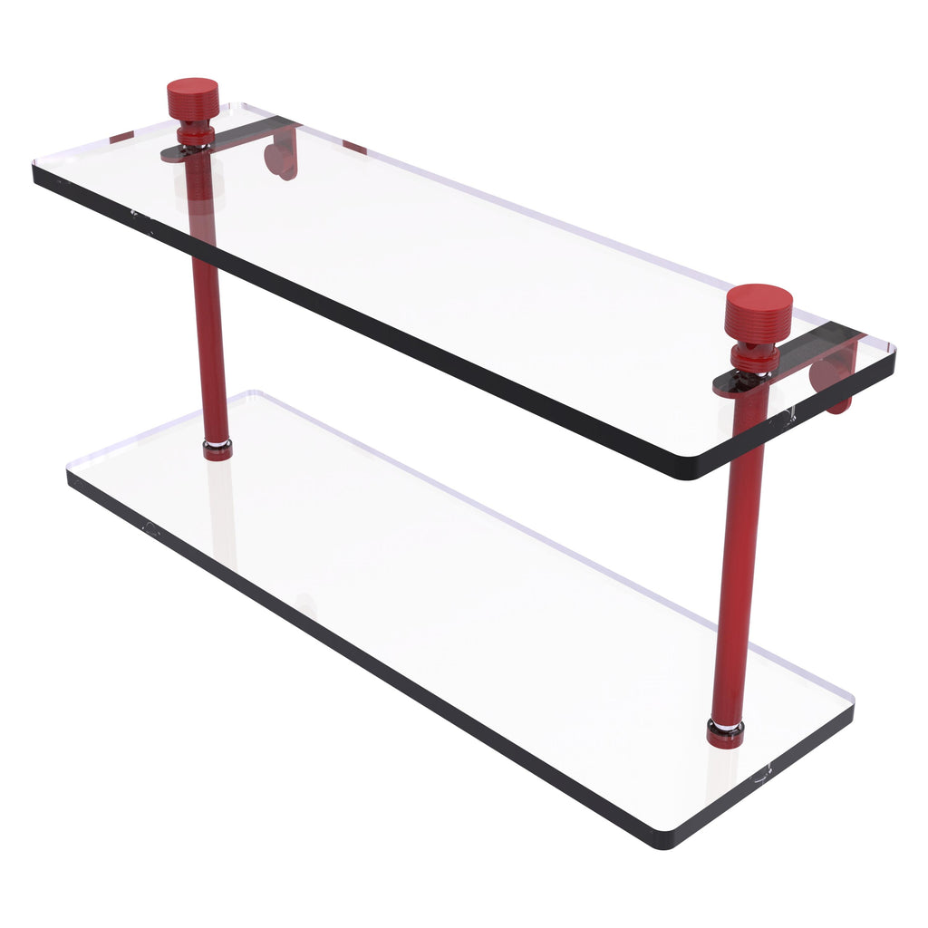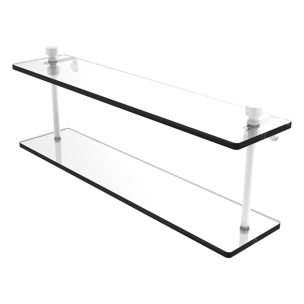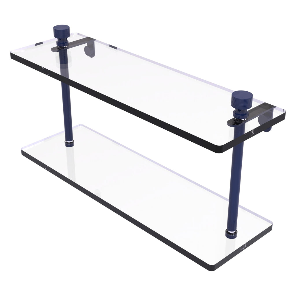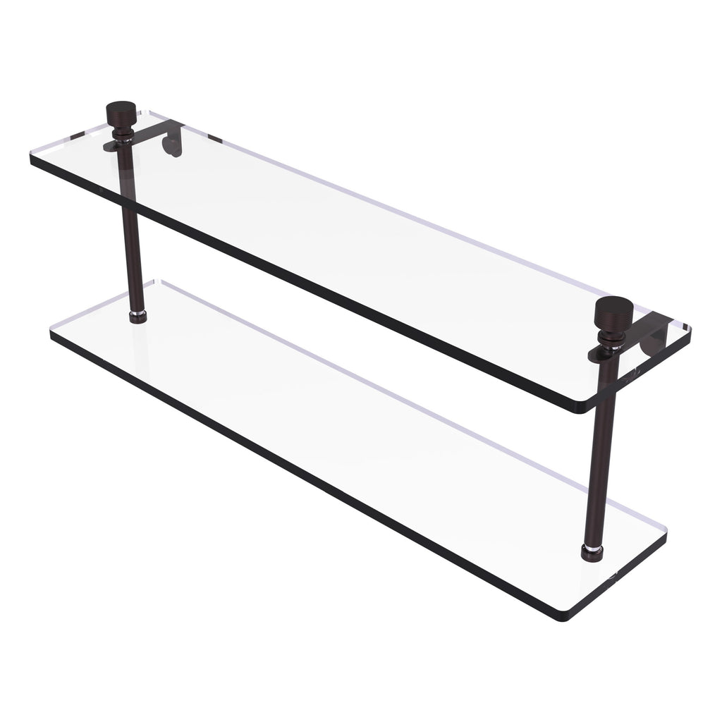 Add space and organization to your bathroom with this simple, contemporary design 2-tier glass vanity shelf. Featuring tempered, beveled-edged glass and solid brass hardware this shelving unit is crafted for durability, strength and style. One of the many coordinating accessories in the Allied Brass collection of products, this subtle glass shelf unit is the perfect complement to your bathroom decor.