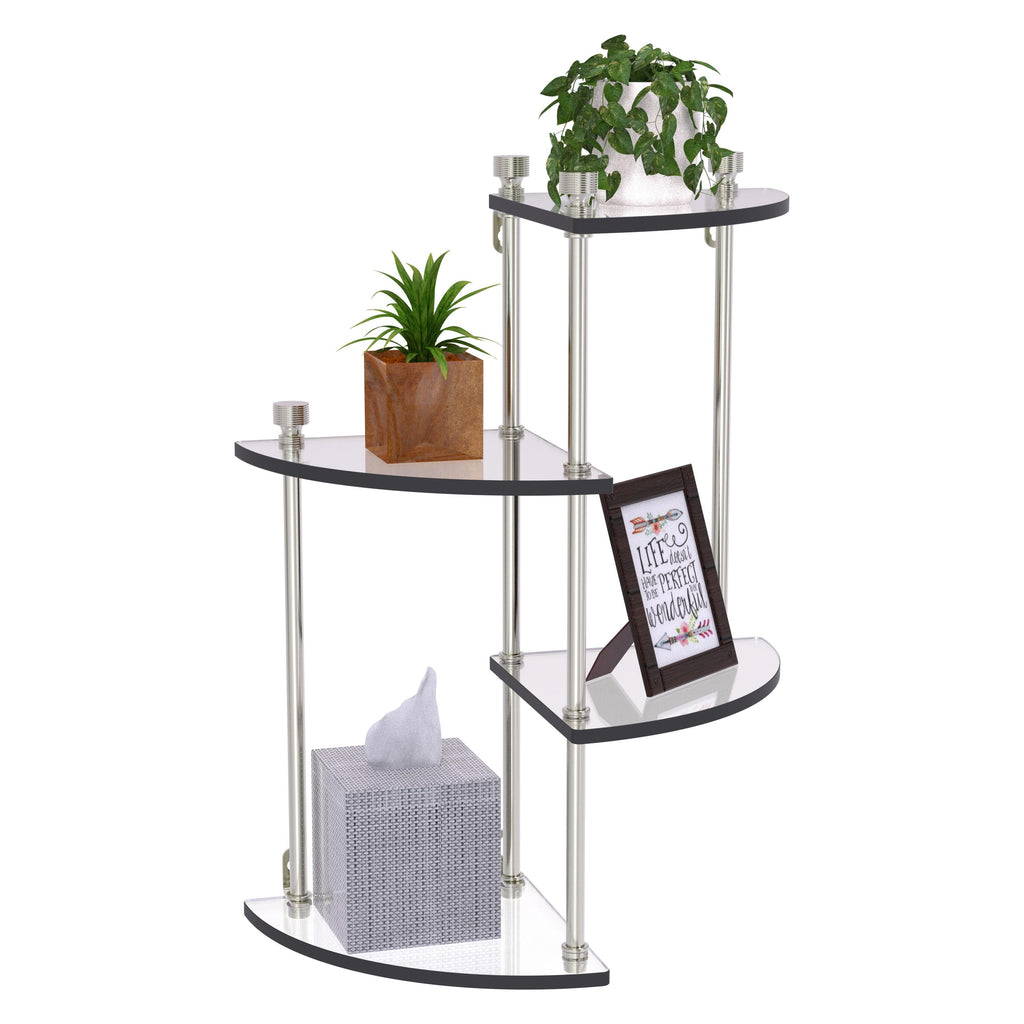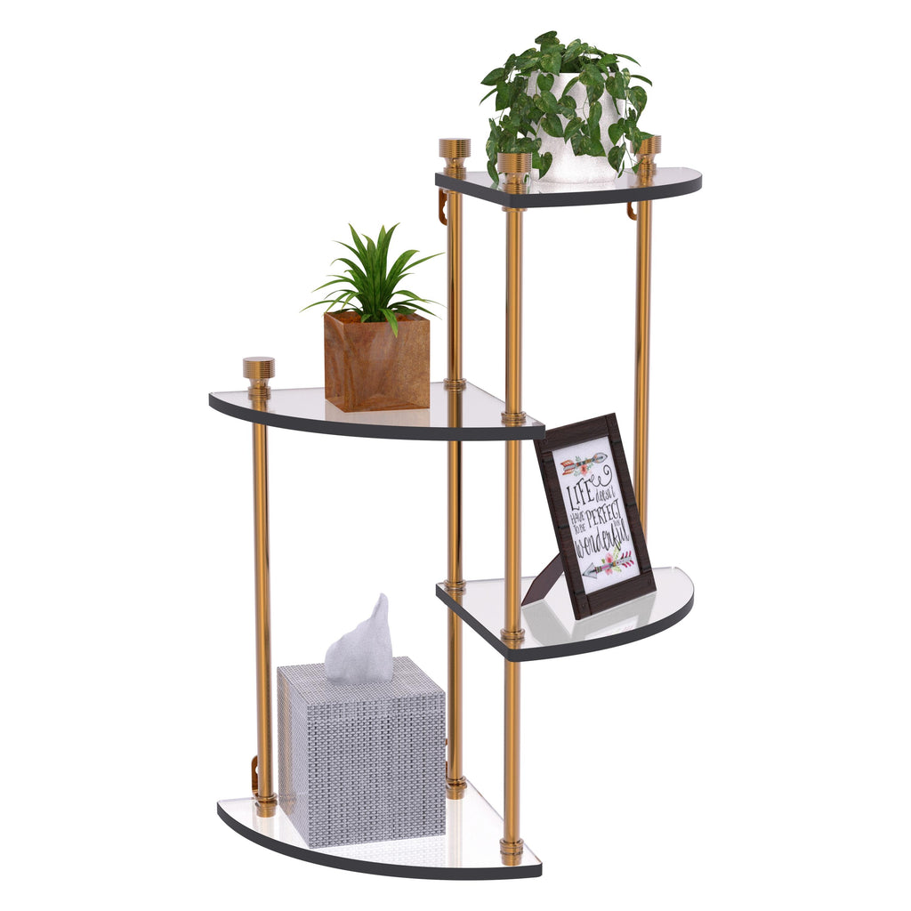 The Foxtrot Four Tier Wall Shelf by Allied Brass will be a stunning addition to your home's décor in any room of the house. It can provide an elegant way to display your prized possessions and artistic accent pieces in your living room or entryway. The transparent nature of its four glass shelves set in a unique semicircular design allows for a full view of your displayed items, making it a true work of art. Shelves are securely held in place by sections of high quality brass tubing with a solid metal support rod running through the entire length.