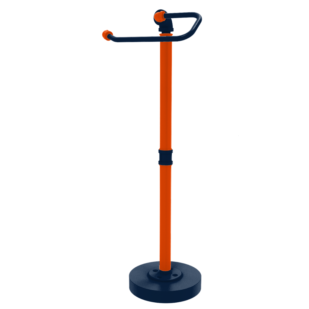 Bring the spirit of Denver into your home with our Gridiron Collection Freestanding Euro Style Toilet Tissue Stand, a must-have for any die-hard Football fan. Crafted with care from premium powder-coated industrial pipe, this stand is not only a testament to your team loyalty but also a striking addition to your bathroom décor. Featuring the iconic team colors, primary color and secondary color, it serves as a bold expression of pride and a constant reminder of the thrilling game moments shared with fellow fans.