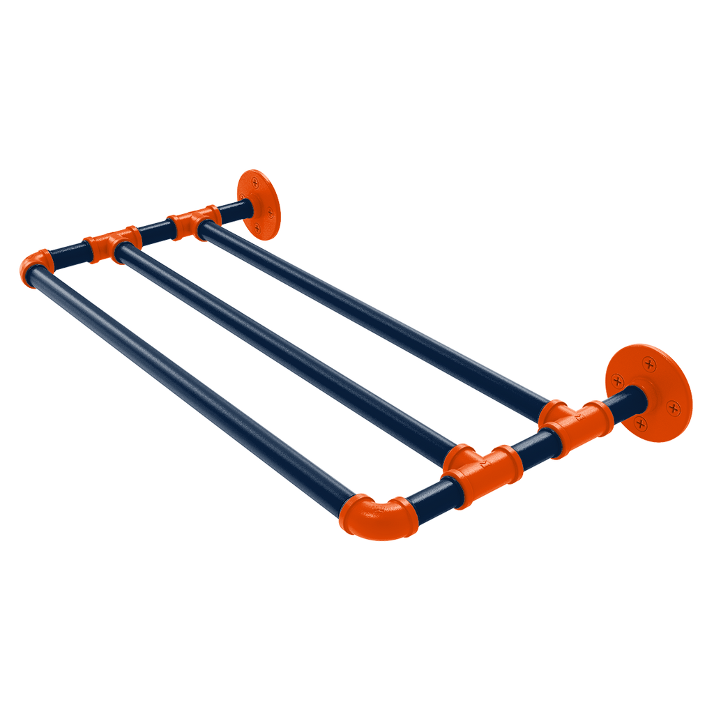 The commitment to durability is evident every aspect of the design, from the robust powder-coated industrial pipe to the detailed fittings that ensure long-lasting stability. This product not only meets your practical needs but also serves as a testament to your Denver Football allegiance, proudly displaying your team colors where they matter most.
