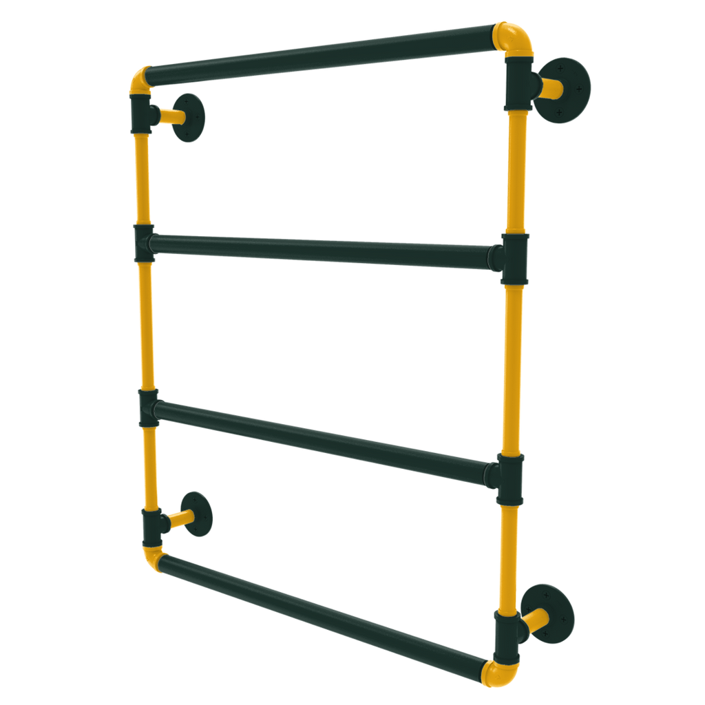 Transform your bathroom into a tribute to Green Bay spirit with the Gridiron Collection Wall Mounted Ladder Towel Bar, brilliantly adorned primary color and secondary color. Crafted from durable powder-coated industrial pipe, this exceptional towel bar not only offers a robust structure but also stands as a bold statement of your dedication to Football. Its eye-catching design integrates seamlessly into both modern and traditional decors, making it a versatile addition to any fan's home.