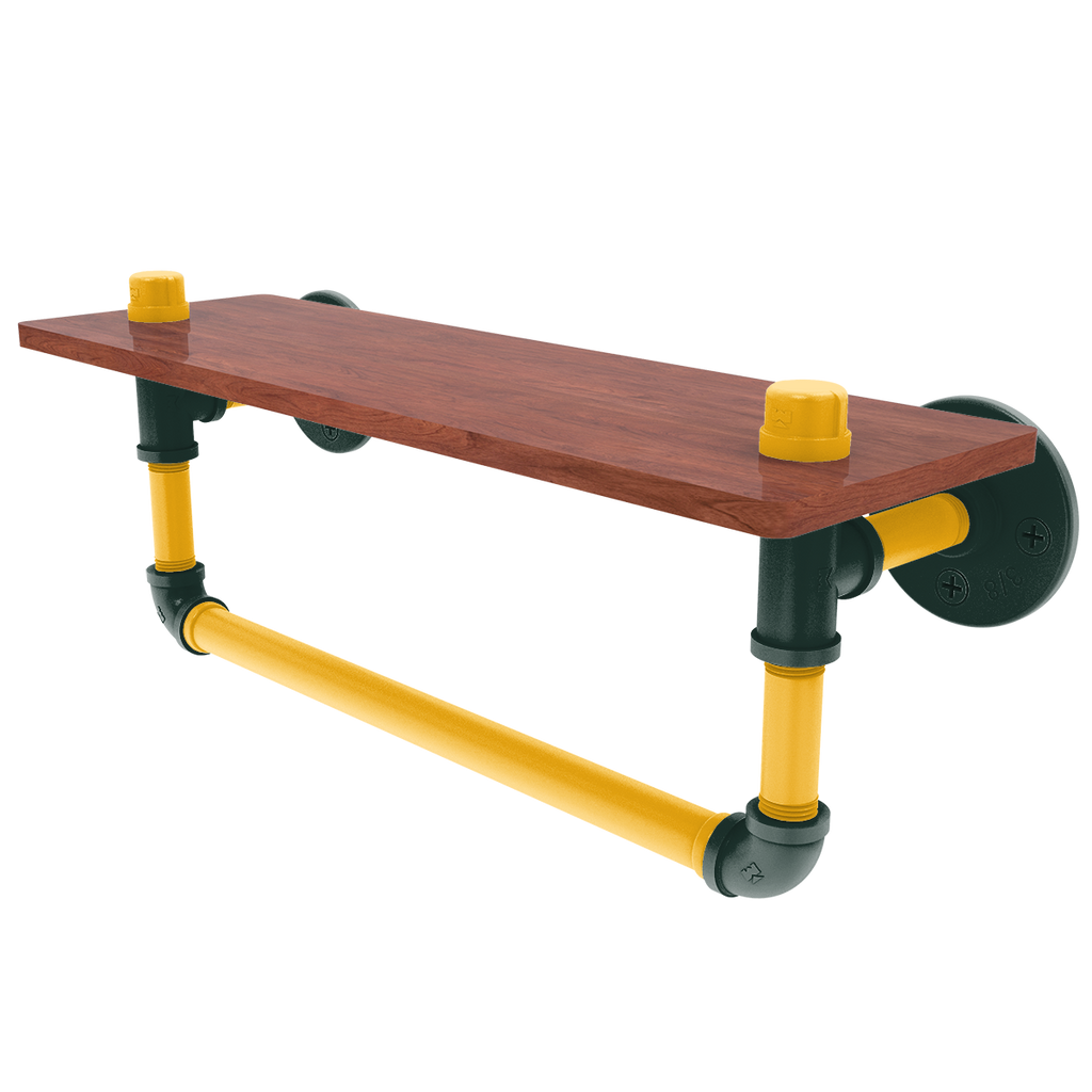 Bring the spirit of Green Bay Football into your home with the sophisticated and functional "Gridiron Collection Ironwood Shelf with Towel Bar". Perfect for any Football enthusiast, this shelf not only serves as a practical storage solution but also as a vibrant display of your team loyalty with its primary color and secondary color hues, matching your favorite team's colors. Crafted with care, it features powder-coated industrial pipe that ensures durability and longevity, making it a staple your home for years.
