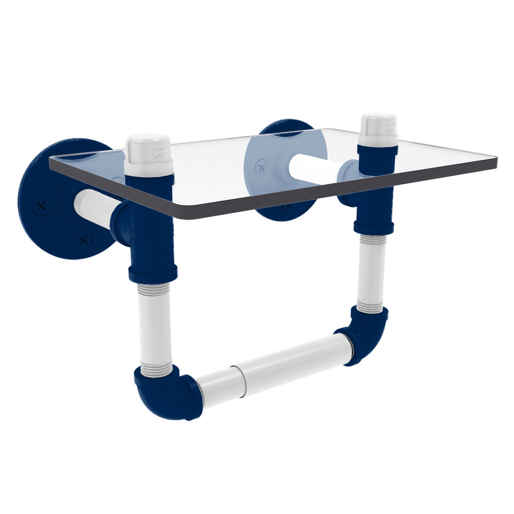 Enhance your bathroom decor while showcasing your unwavering support for your favorite Football team with the Gridiron Collection Toilet Tissue Holder with Glass Shelf, meticulously designed to reflect the vibrant primary color and secondary color hues of Indianapolis. This essential accessory not only serves a practical purpose but also ignites a sense of pride every time you step into your bathroom. Made from robust powder-coated industrial pipe, this toilet tissue holder is built to last and resist corrosion, ensuring it remains a part of your home decor for years to come.