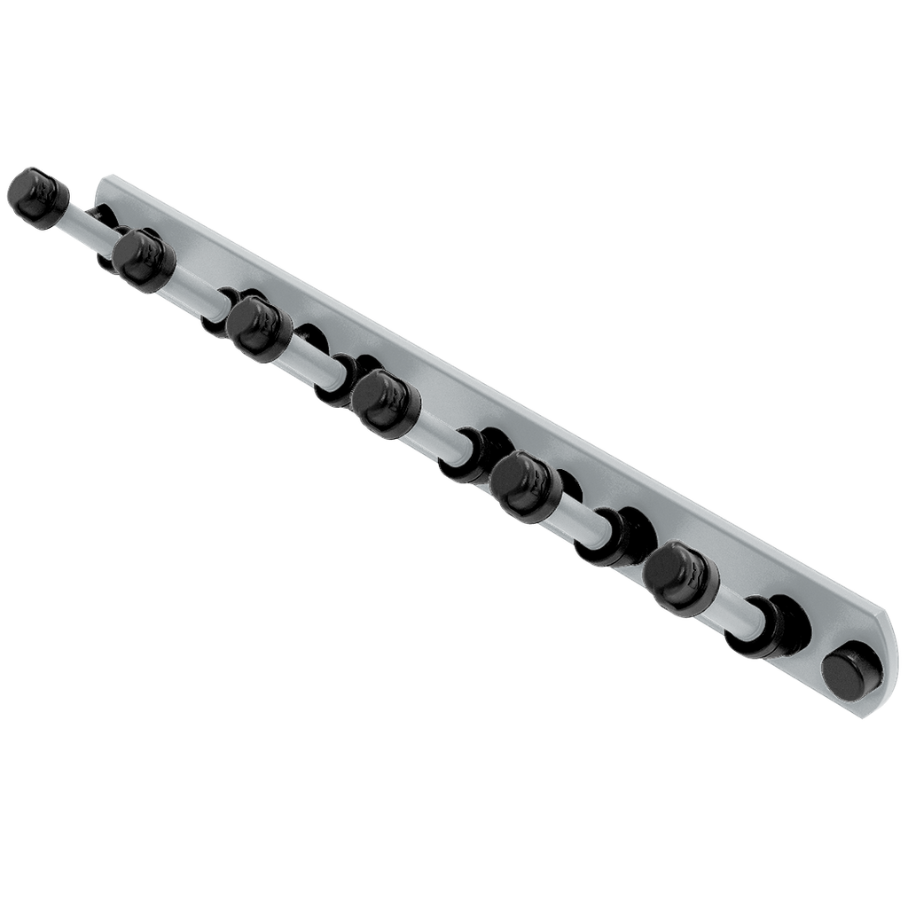 - Mounts firmly on any wall with a concealed screw mounting system, preserving the clean lines and aesthetic of the rack.