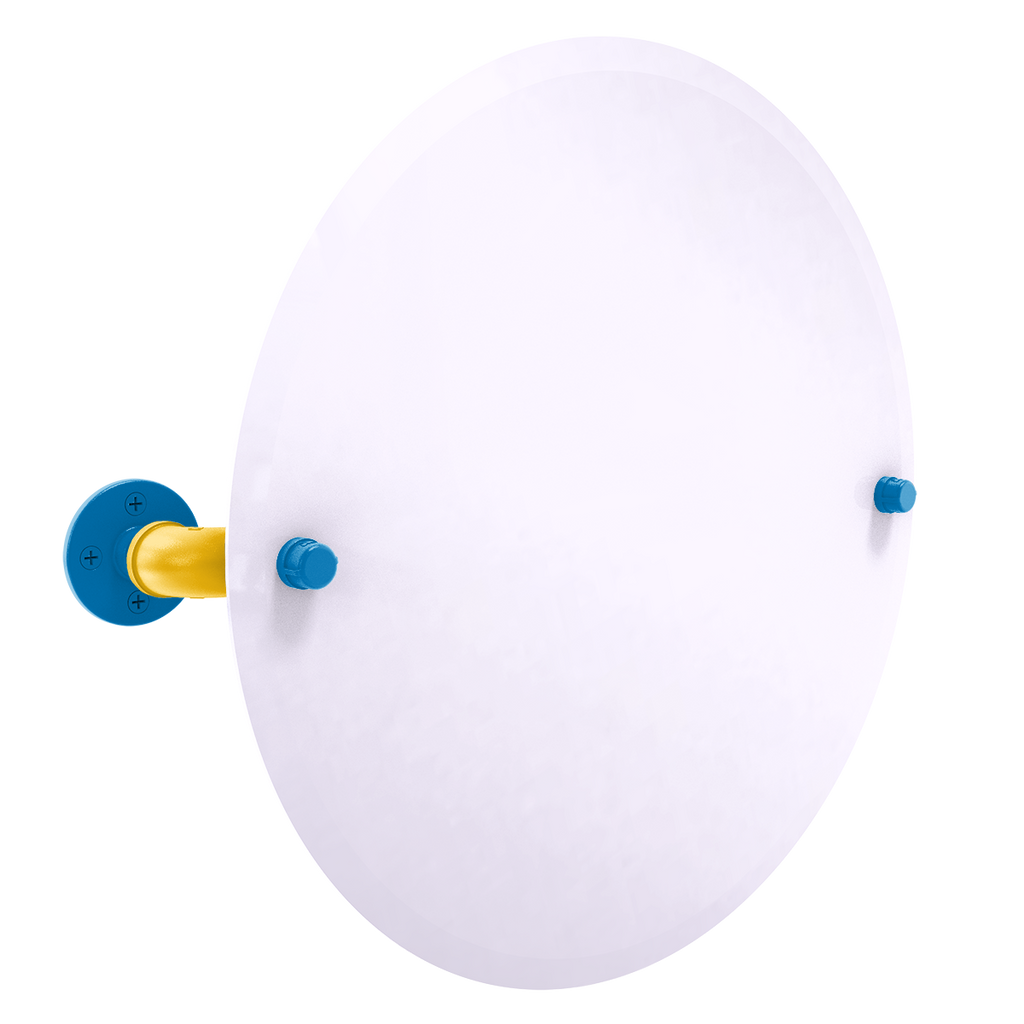 Gridiron Collection Frameless Round Wall Mounted Tilt Mirror Los Angeles Blue and Gold Edition