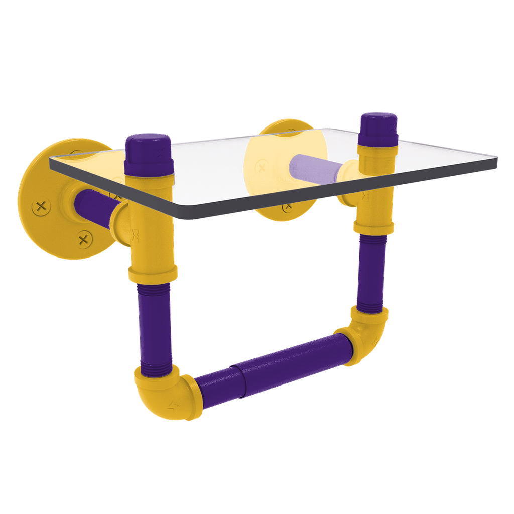 Enhance your bathroom decor while showcasing your unwavering support for your favorite Football team with the Gridiron Collection Toilet Tissue Holder with Glass Shelf, meticulously designed to reflect the vibrant primary color and secondary color hues of Minnesota. This essential accessory not only serves a practical purpose but also ignites a sense of pride every time you step into your bathroom. Made from robust powder-coated industrial pipe, this toilet tissue holder is built to last and resist corrosion, ensuring it remains a part of your home decor for years to come.