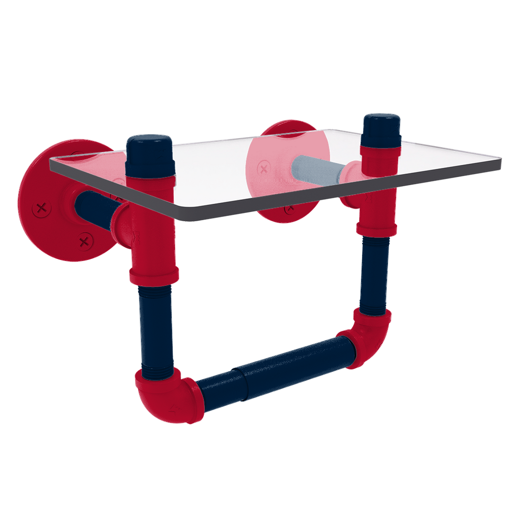 Enhance your bathroom decor while showcasing your unwavering support for your favorite Football team with the Gridiron Collection Toilet Tissue Holder with Glass Shelf, meticulously designed to reflect the vibrant primary color and secondary color hues of New England. This essential accessory not only serves a practical purpose but also ignites a sense of pride every time you step into your bathroom. Made from robust powder-coated industrial pipe, this toilet tissue holder is built to last and resist corrosion, ensuring it remains a part of your home decor for years to come.
