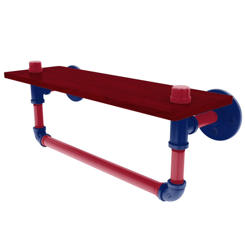 Gridiron Collection Wood Shelf with Towel Bar New York Blue and Red Edition
