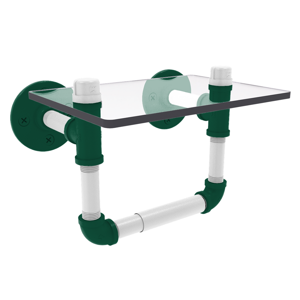 Gridiron Collection Toilet Tissue Holder with Glass Shelf New York Green and White Edition