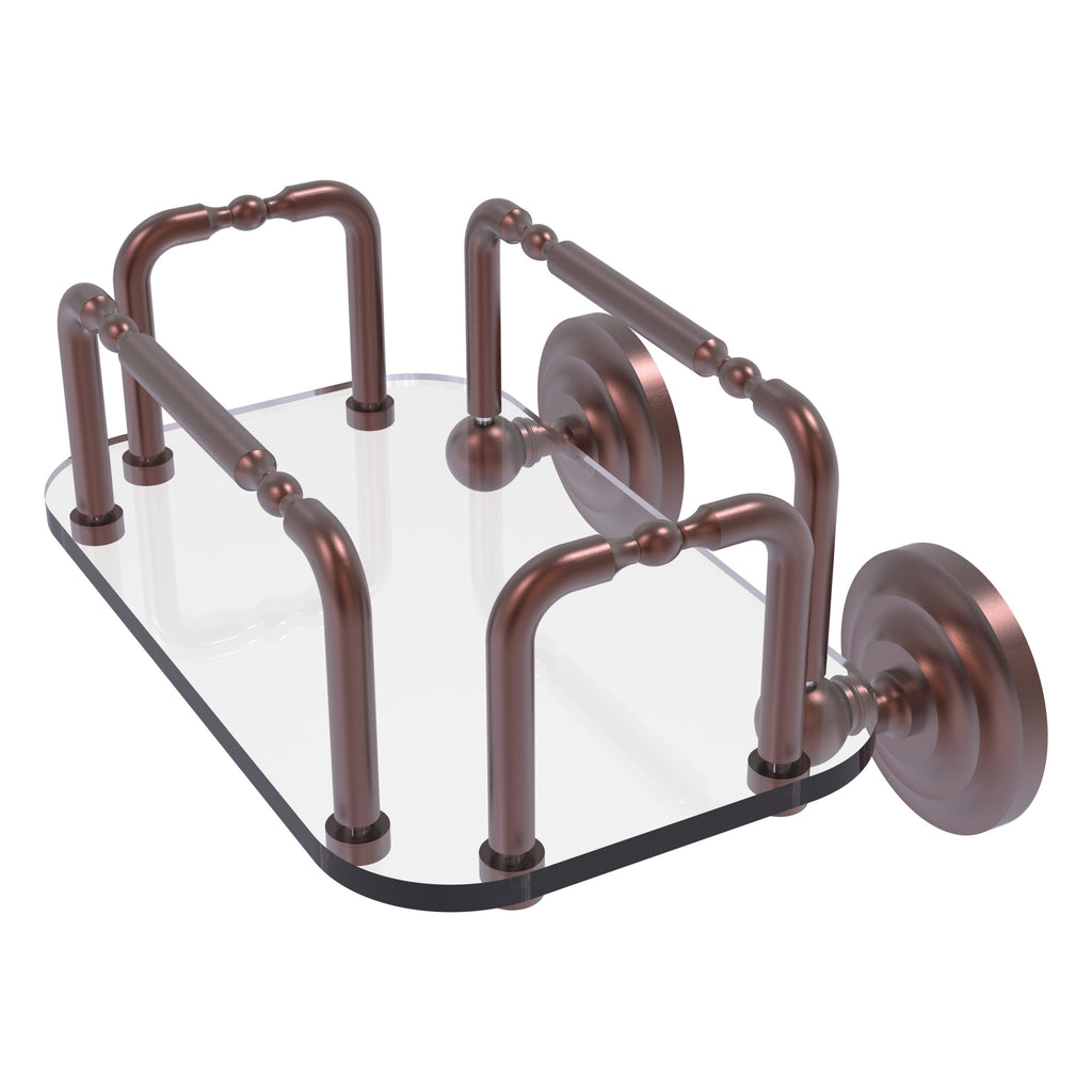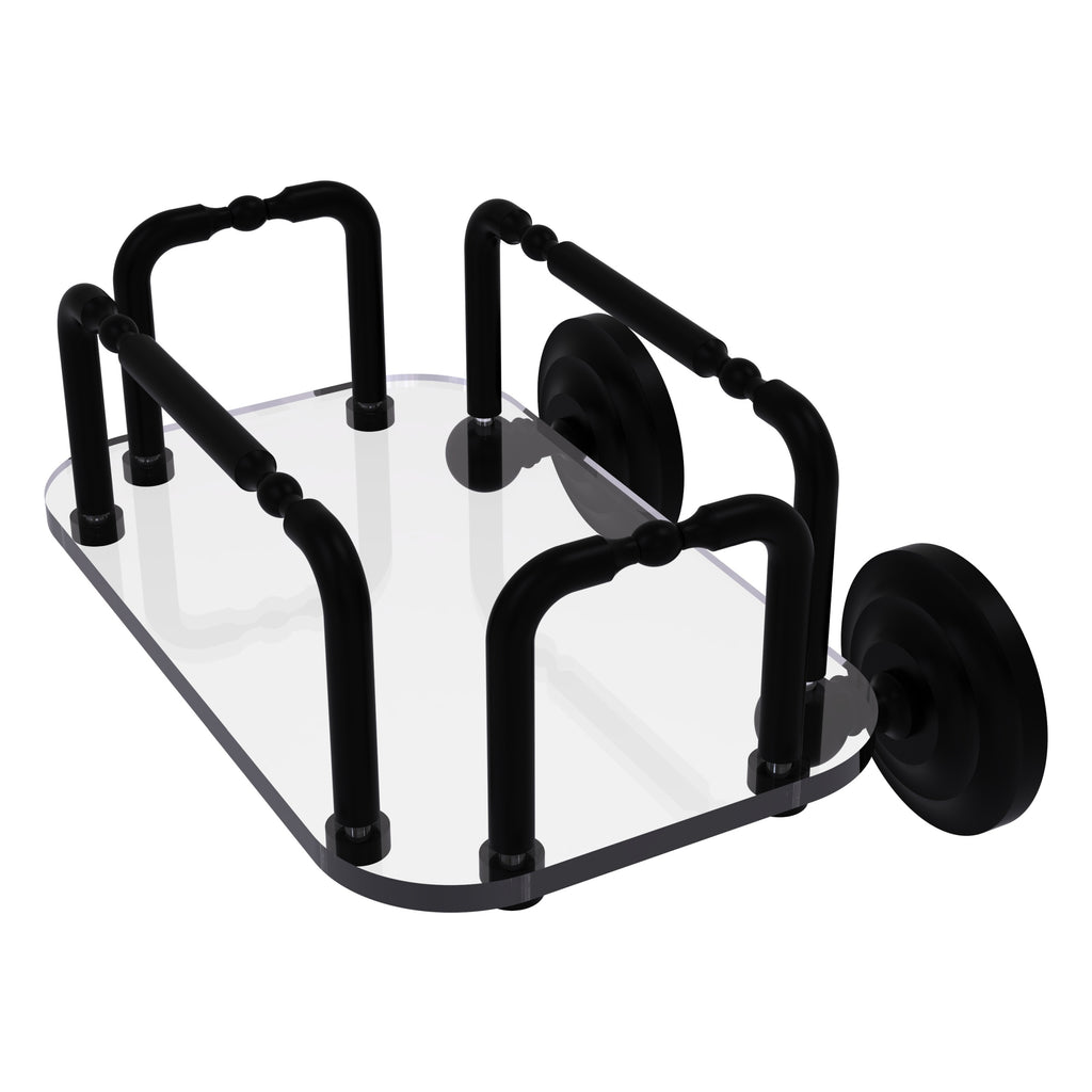 This elegant wall mounted guest towel tray will add style and convenience to your bathroom décor. Ideally sized to hold your favorite guest towels or a standard box of Kleenex Tissues. Keep your vanity top organized and clutter free with this wall mounted accessory. Tempered glass and brass rails are used to make this item sturdy and stylish. Any of our lifetime designer finishes will provide a lifetime of use.