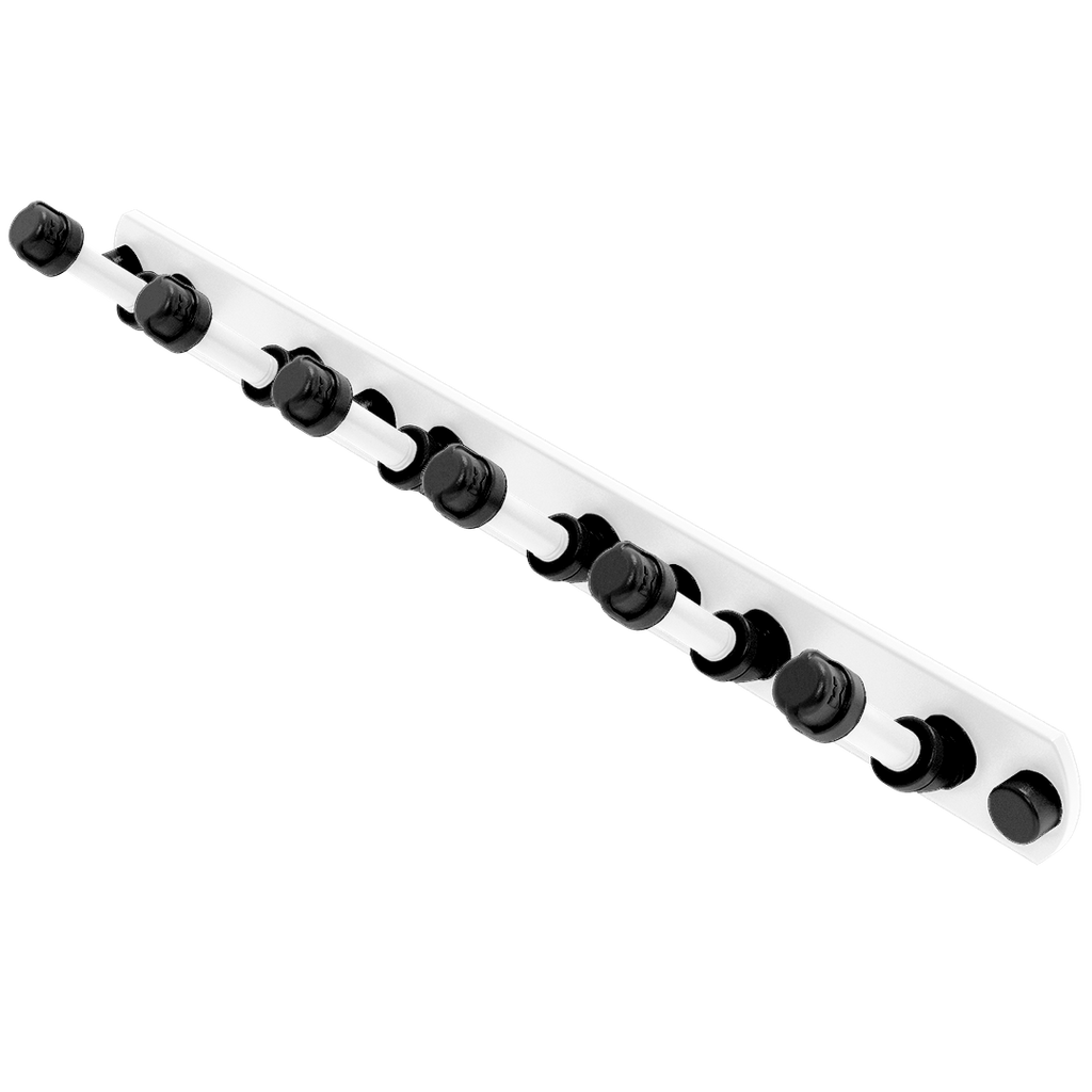 - Mounts firmly on any wall with a concealed screw mounting system, preserving the clean lines and aesthetic of the rack.