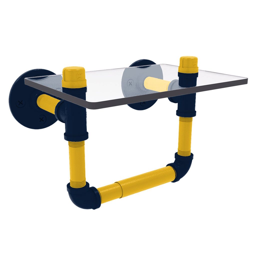 Enhance your bathroom decor while showcasing your unwavering support for your favorite Basketball team with the Hardwood Collection Toilet Tissue Holder with Glass Shelf, meticulously designed to reflect the vibrant primary color and secondary color hues of Denver. This essential accessory not only serves a practical purpose but also ignites a sense of pride every time you step into your bathroom. Made from robust powder-coated industrial pipe, this toilet tissue holder is built to last and resist corrosion, ensuring it remains a part of your home decor for years to come.