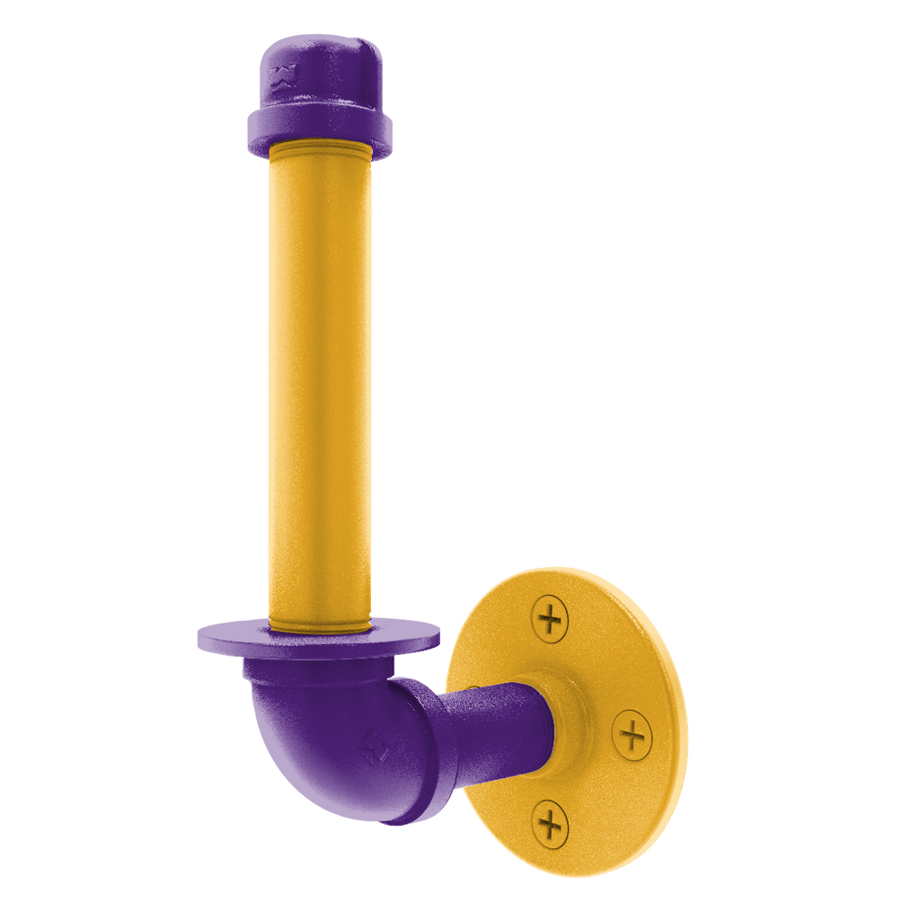 Transform your bathroom into a vibrant showcase of your Los Angeles Basketball enthusiasm with the Hardwood Collection Upright Toilet Paper Holder. Crafted from robust powder-coated industrial pipe, this holder is not only a practical addition to your bathroom but also a bold expression of team loyalty. The striking combination of primary color and secondary color hues instantly elevates your decor, reflecting your passion for the game and your favorite team every day.