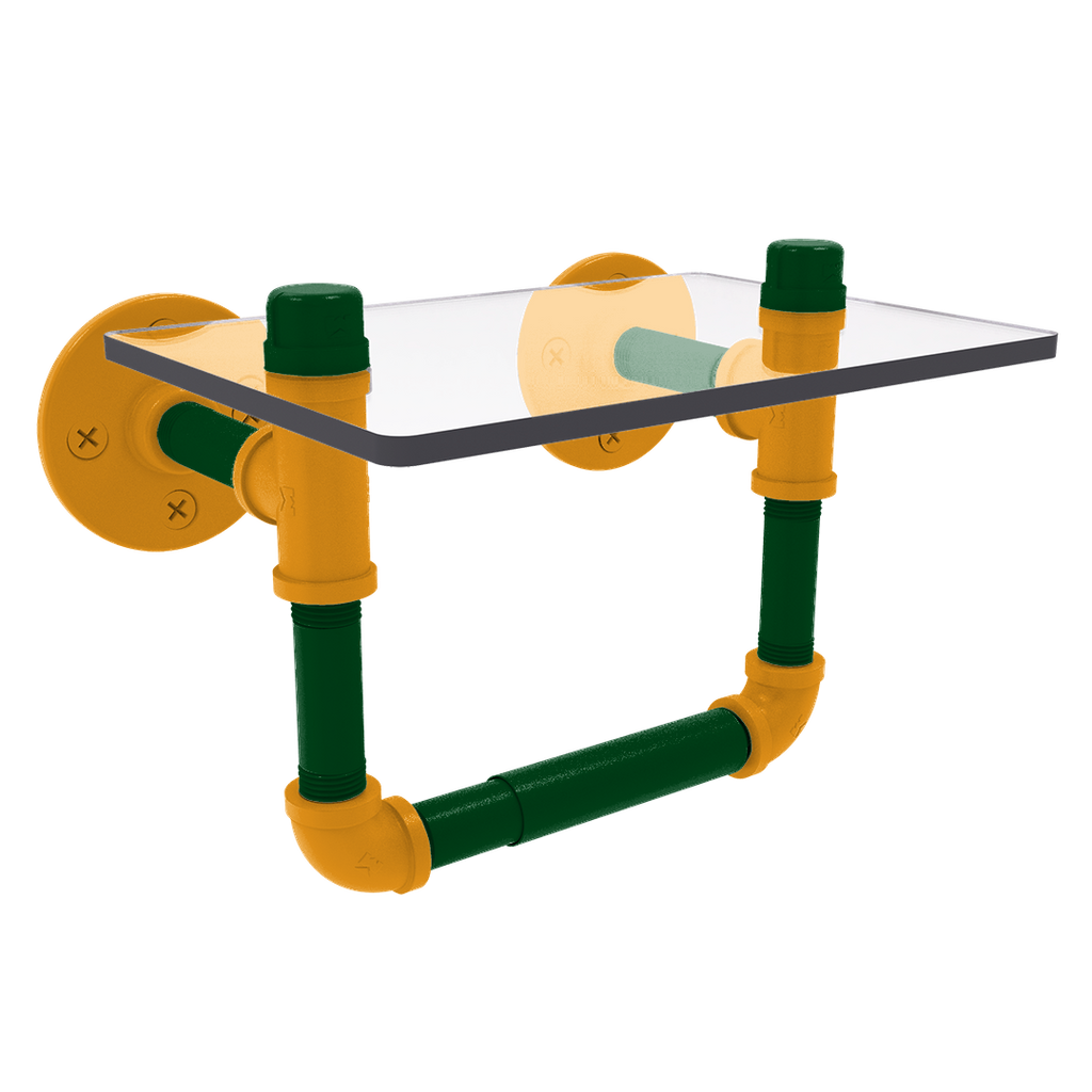 Enhance your bathroom decor while showcasing your unwavering support for your favorite Basketball team with the Hardwood Collection Toilet Tissue Holder with Glass Shelf, meticulously designed to reflect the vibrant primary color and secondary color hues of Utah. This essential accessory not only serves a practical purpose but also ignites a sense of pride every time you step into your bathroom. Made from robust powder-coated industrial pipe, this toilet tissue holder is built to last and resist corrosion, ensuring it remains a part of your home decor for years to come.