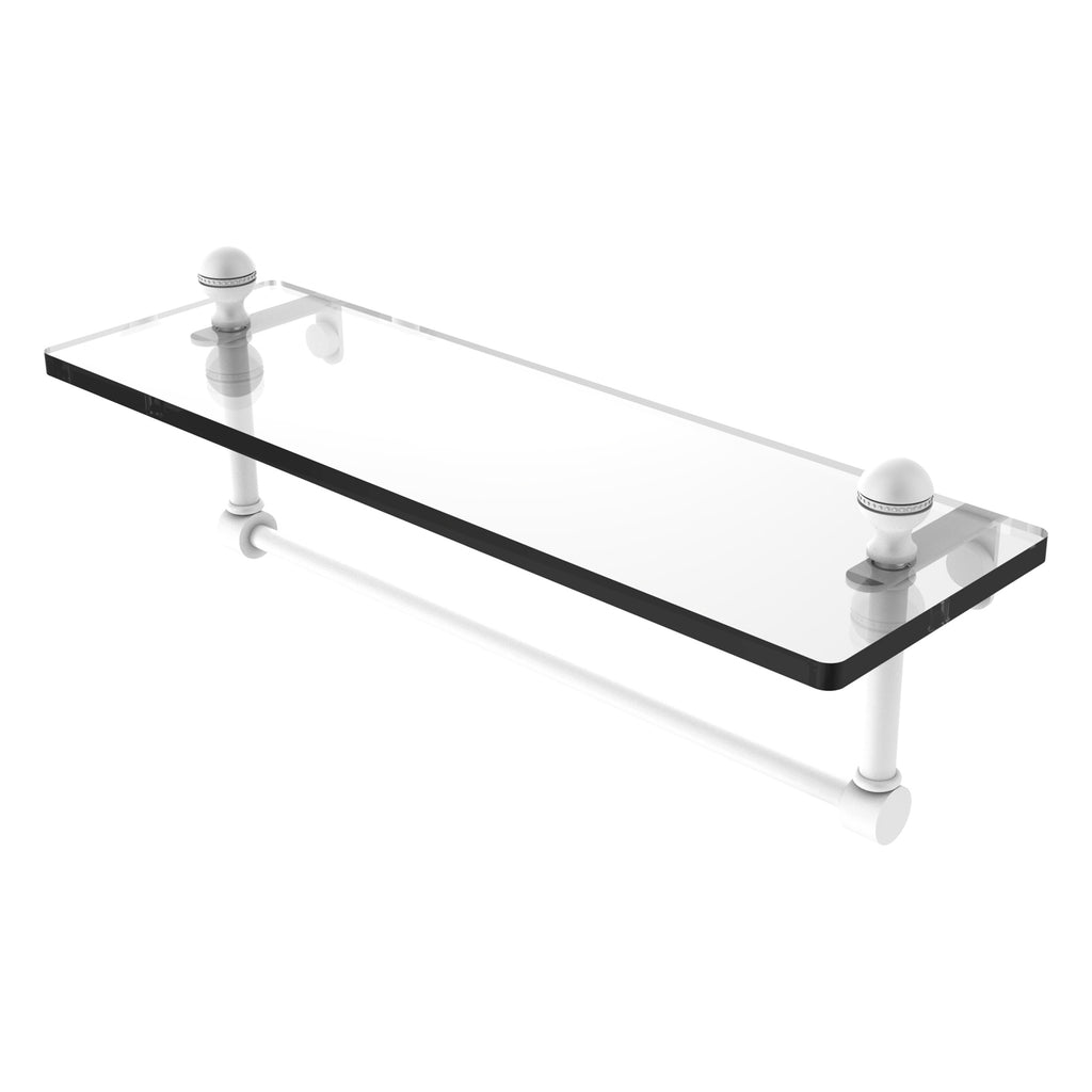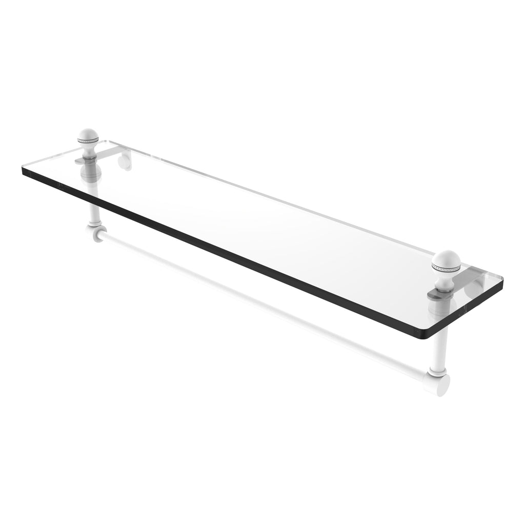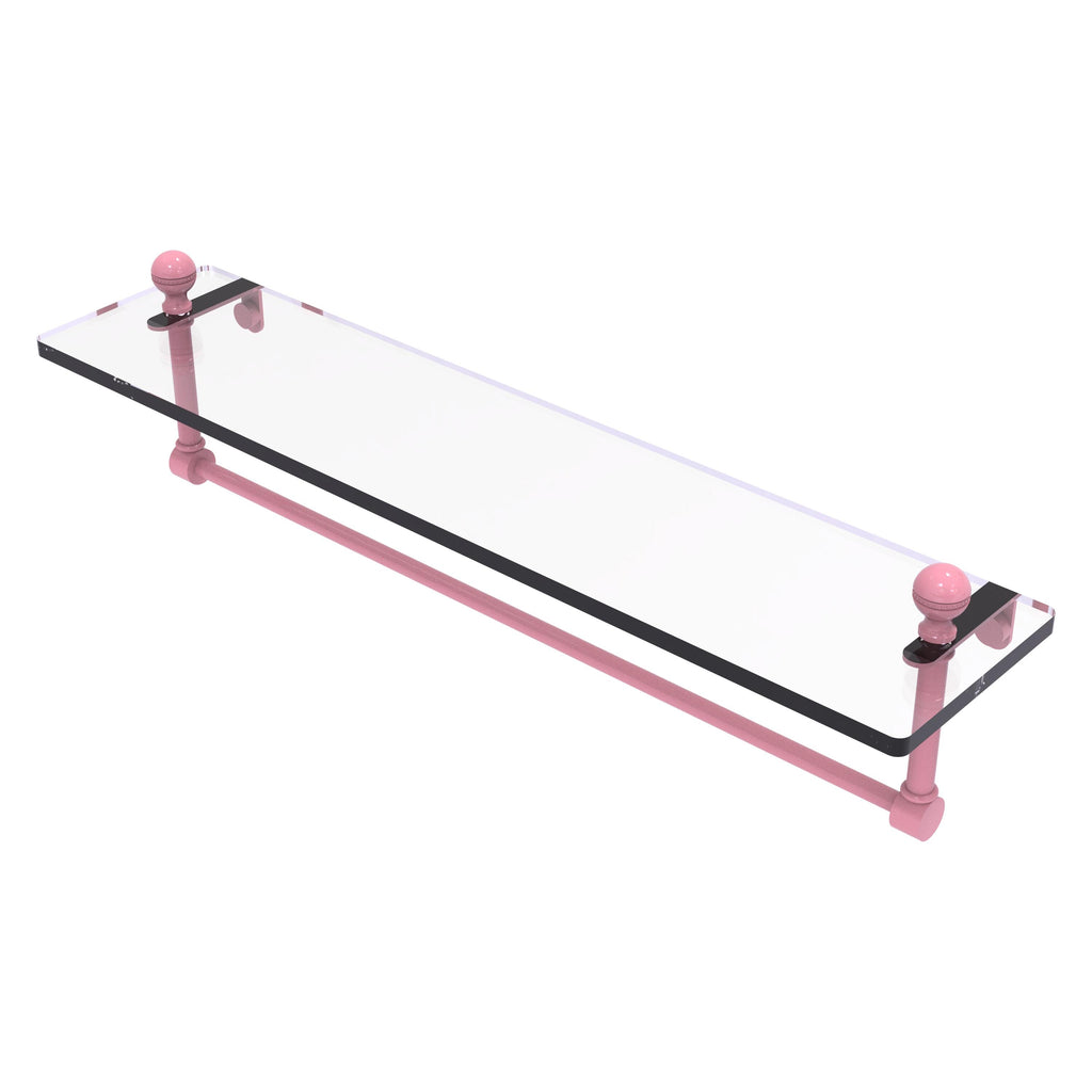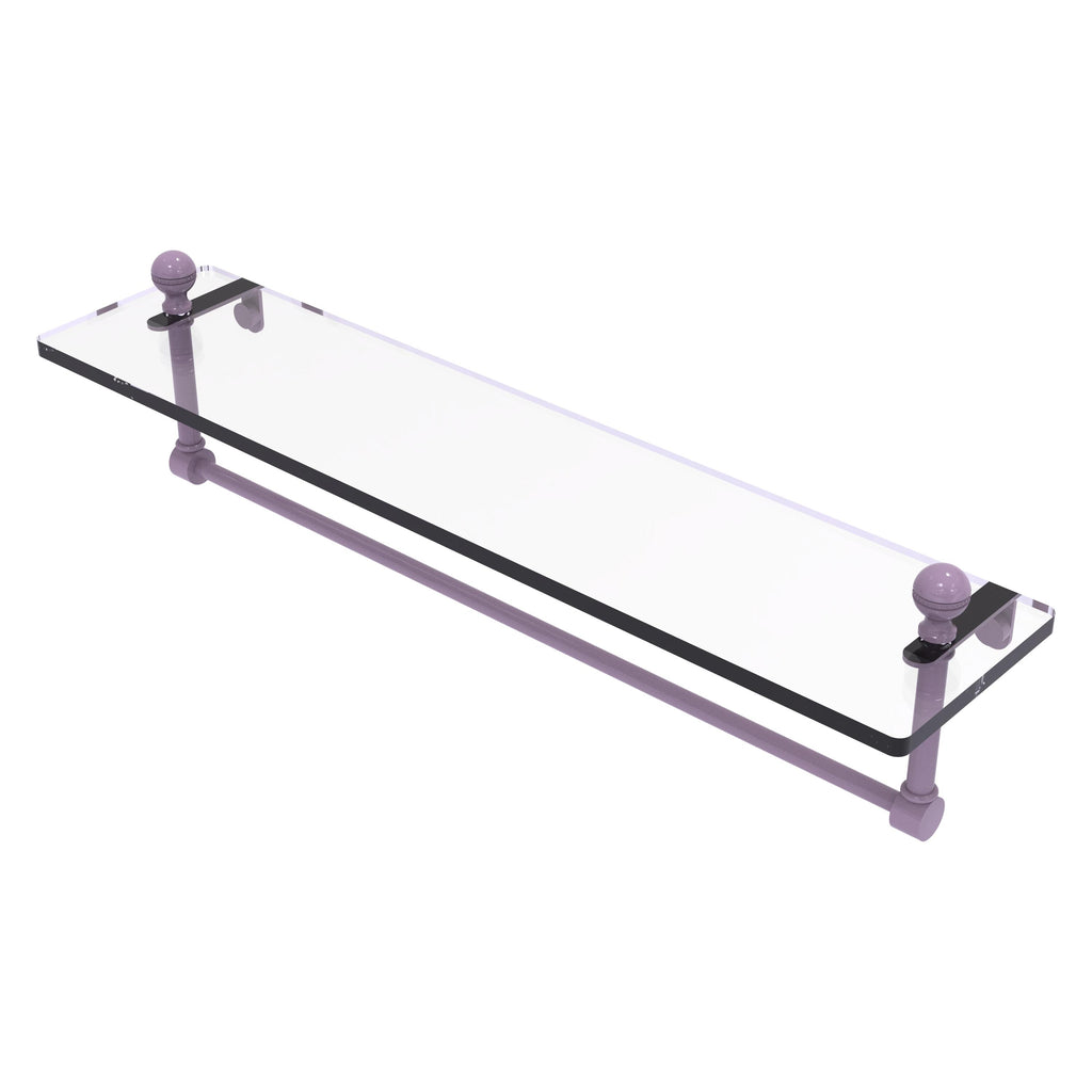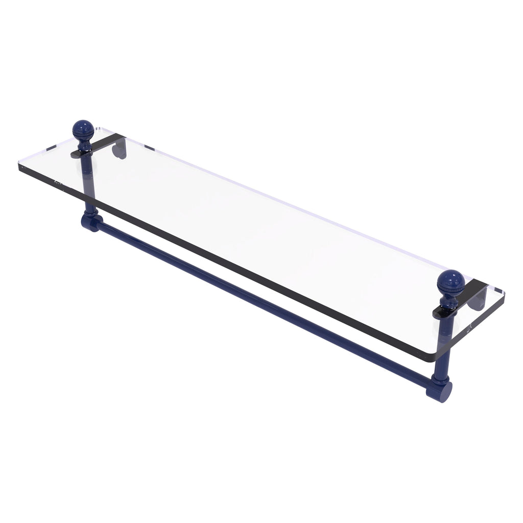 Add space and organization to your bathroom with this simple, contemporary style glass shelf. Featuring tempered, beveled-edged glass and solid brass hardware this shelf is crafted for durability, strength and style. One of the many coordinating accessories in the Allied Brass Mambo Collection, this subtle glass shelf is the perfect complement to your bathroom decor.