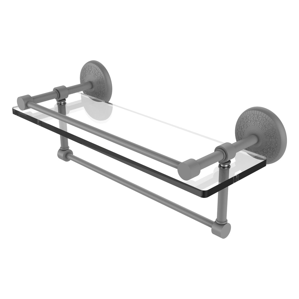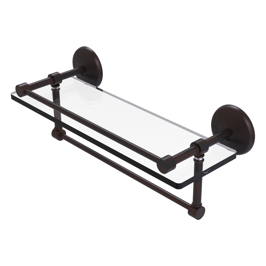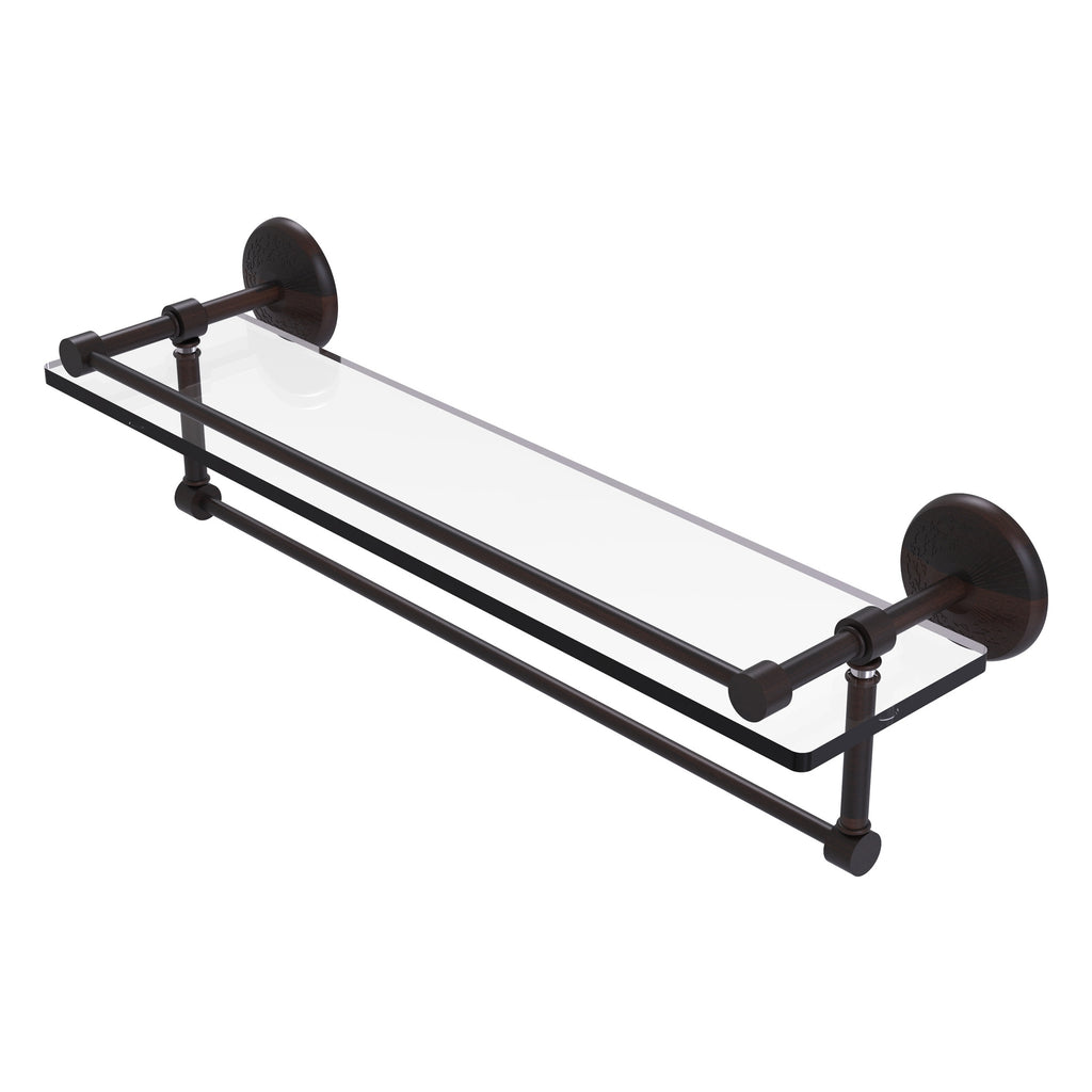 Add a flare of style to your décor with this decorative glass shelf. Shelf can be used anywhere in the home for a great space to store your products. Gallery rail will keep your items secure while the integrated towel bar provides a creative space for your towels. Tempered glass is 3/8 Inches thick and all of the hardware is made of solid brass and finished with the highest quality materials to provide a lifetime of beauty.
