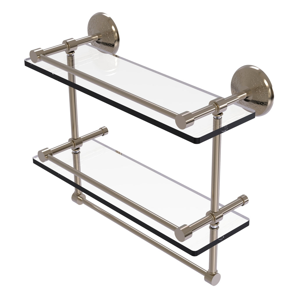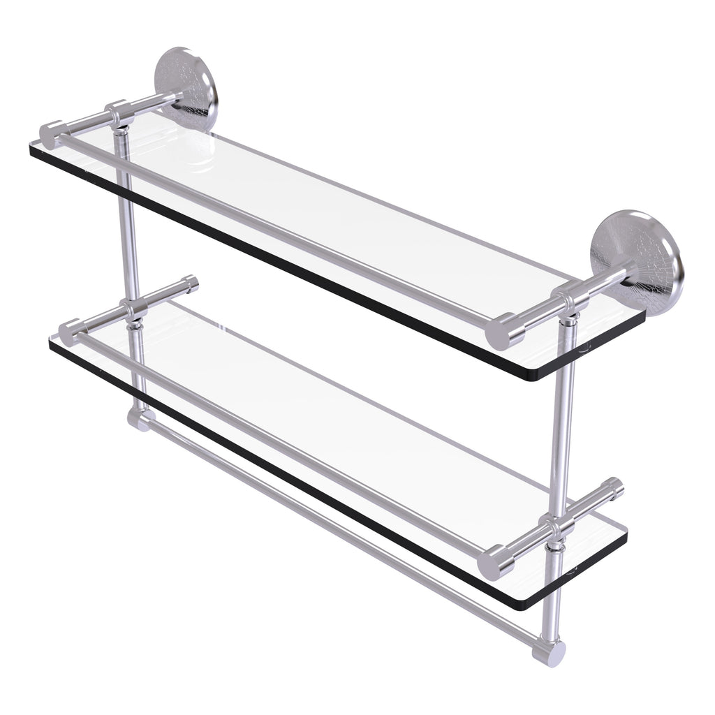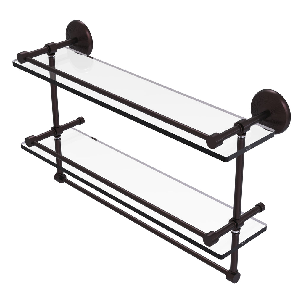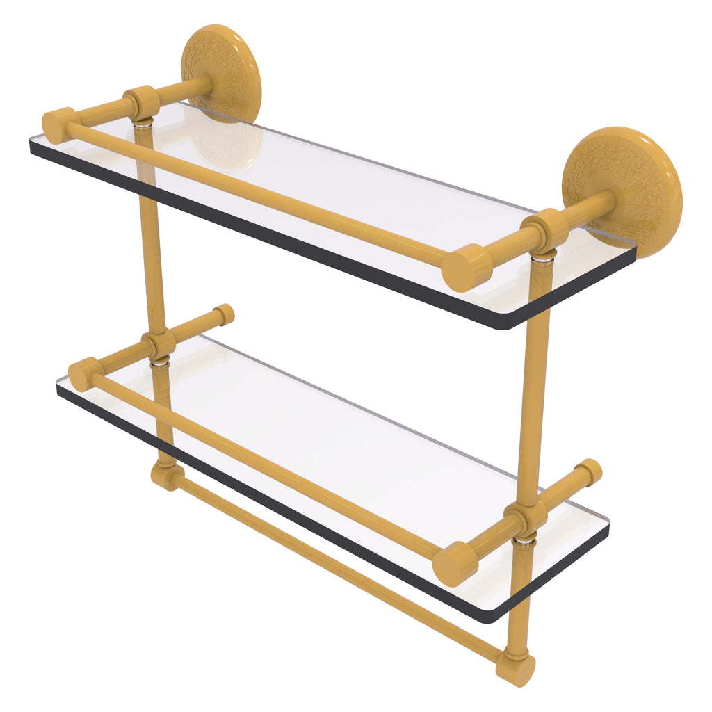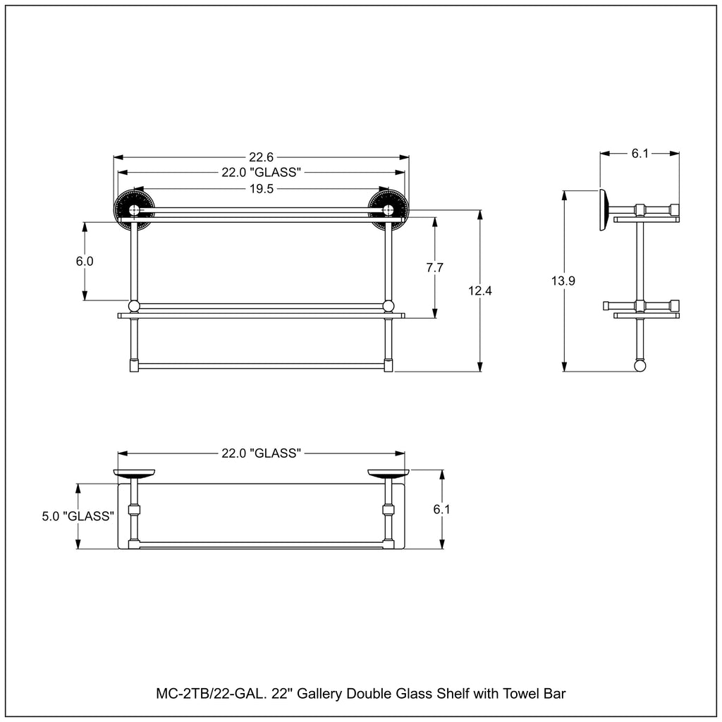 Add a flare of style to your décor with this decorative glass shelf. Shelf can be used anywhere in the home for a great space to store your products. Gallery rail will keep your items secure while the integrated towel bar provides a creative space for your towels. Tempered glass is 3/8 Inches thick and all of the hardware is made of solid brass and finished with the highest quality materials to provide a lifetime of beauty.
