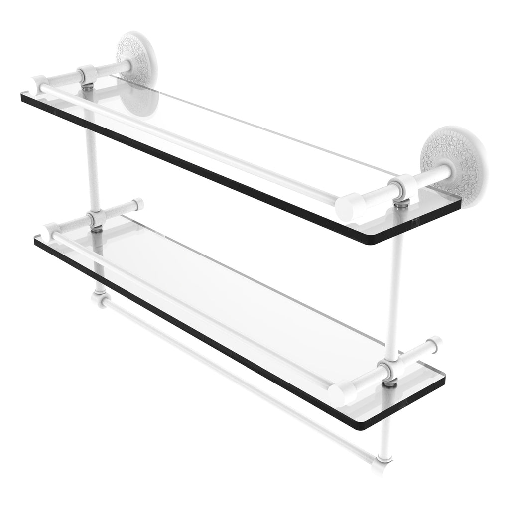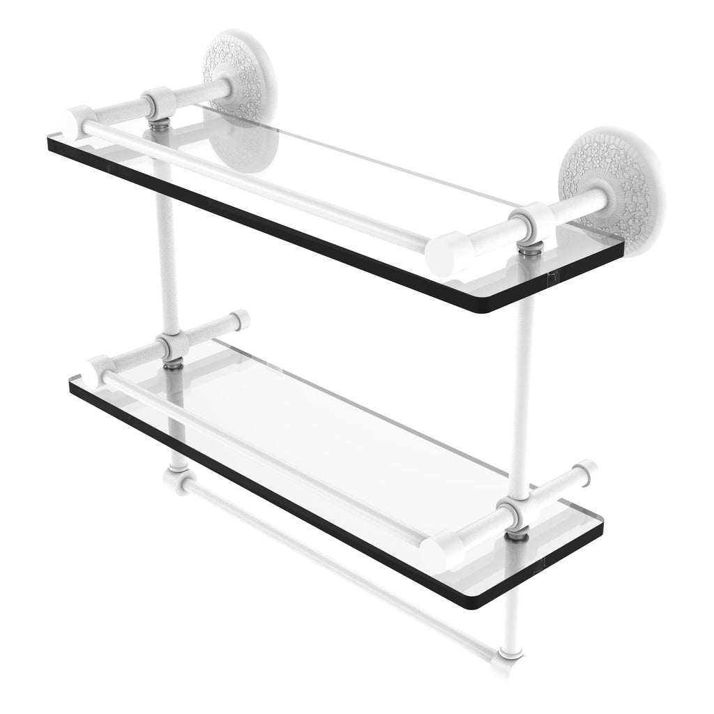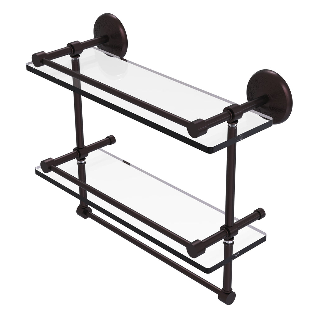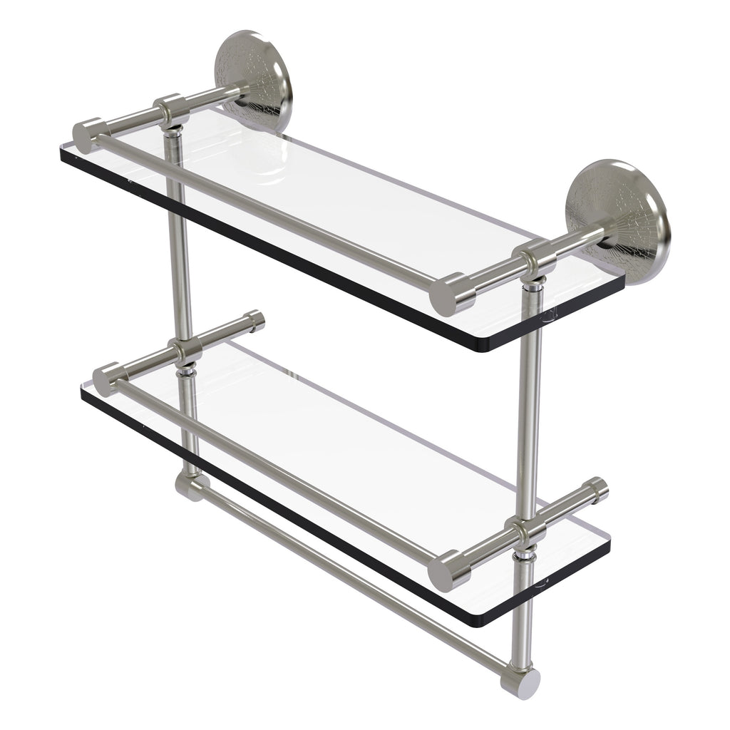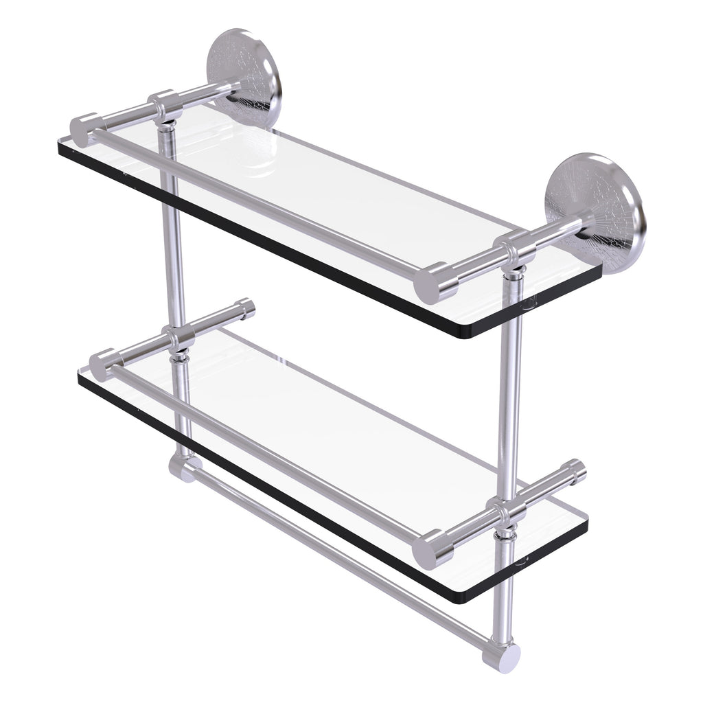 Add a flare of style to your décor with this decorative glass shelf. Shelf can be used anywhere in the home for a great space to store your products. Gallery rail will keep your items secure while the integrated towel bar provides a creative space for your towels. Tempered glass is 3/8 Inches thick and all of the hardware is made of solid brass and finished with the highest quality materials to provide a lifetime of beauty.