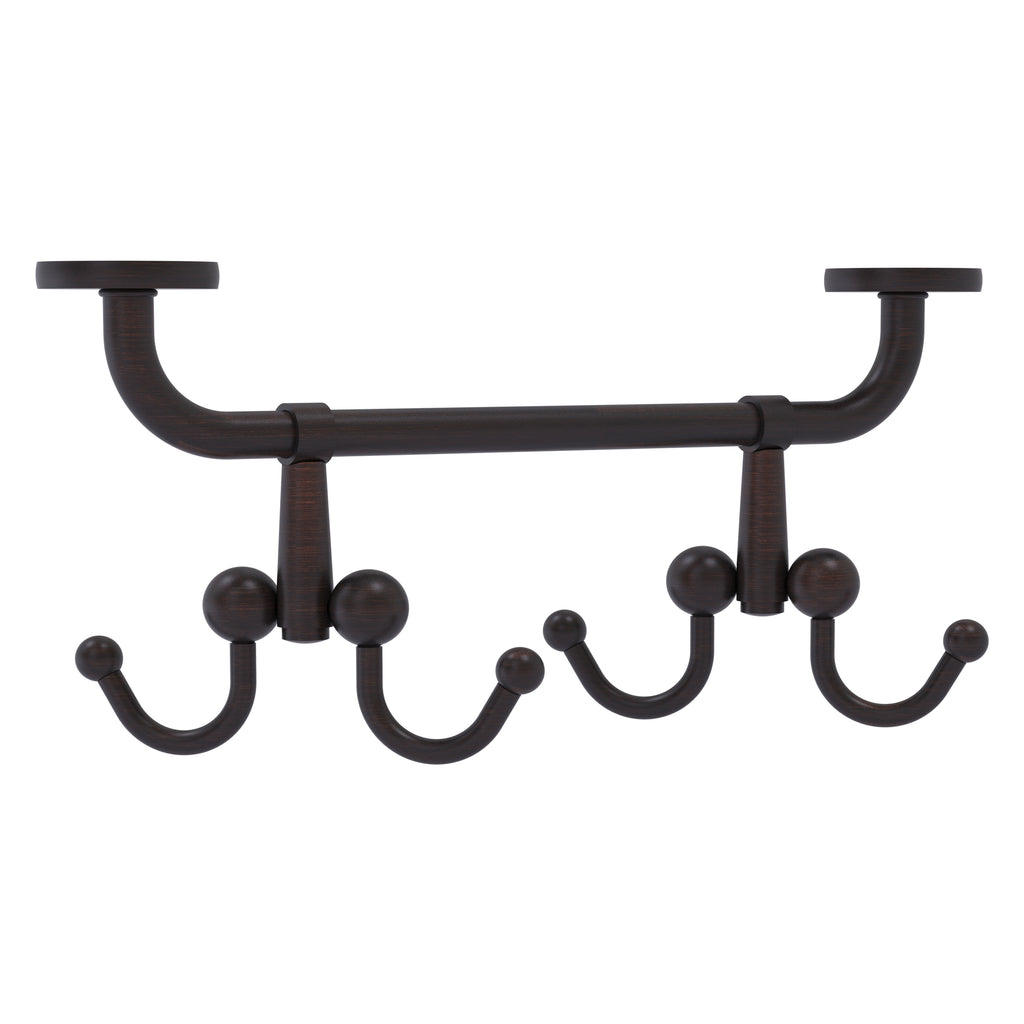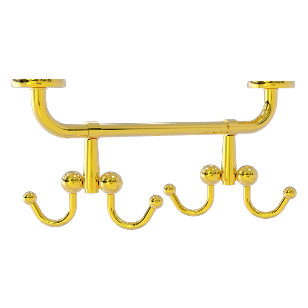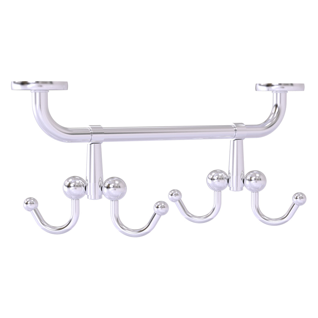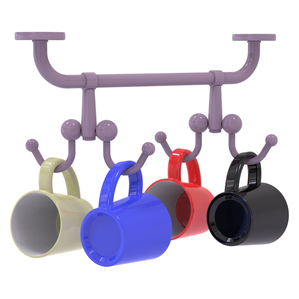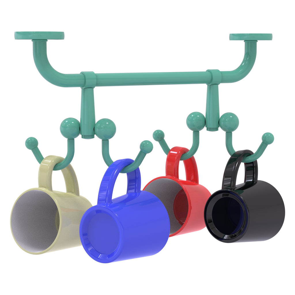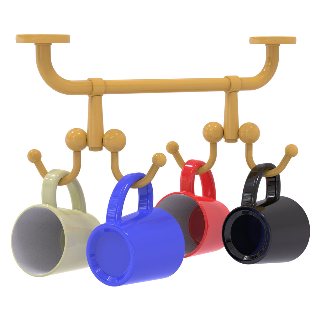 Add an elegant bistro look to your kitchen by proudly displaying your favorite coffee mugs on this decorative under cabinet mount 4 mug rack. The rack can be installed strategically on the underside of your cabinets making it both a focal point and a space saving convenience. Just grab your favorite mug for that first quick cup in the morning and you're off and running. Its sleek design blends with a variety of decors from modern to eclectic. The rack is available in a wide variety of beautiful decorative finishes and coated guaranteeing it to be free from corrosion. Mugs not included with rack.