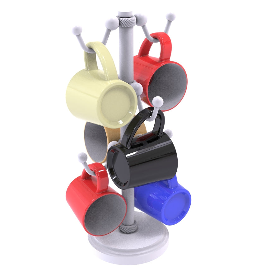 - Holds 6 small or large coffee mugs