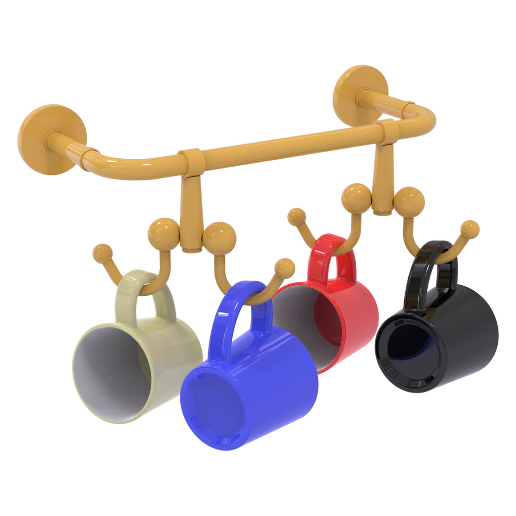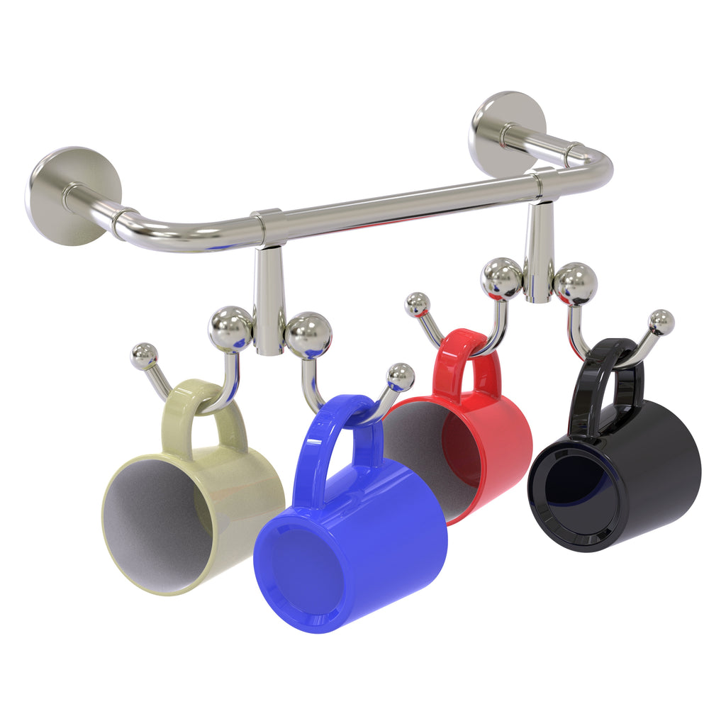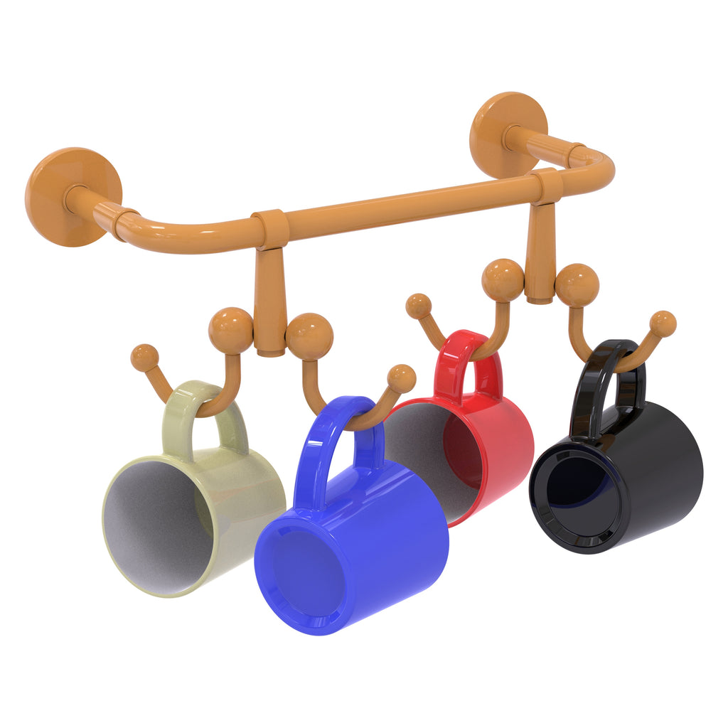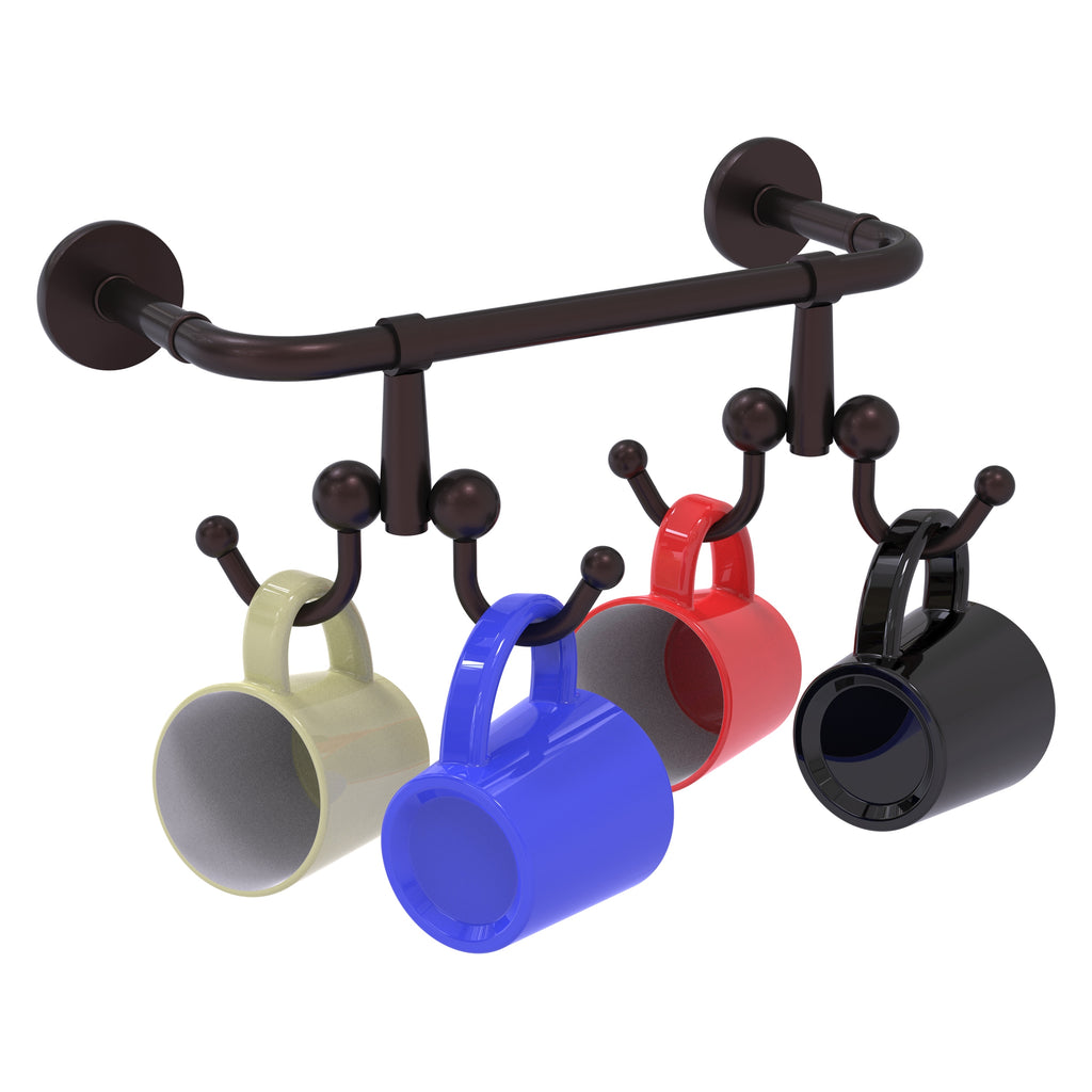 Add an elegant bistro look to your kitchen by proudly displaying your favorite coffee mugs with this decorative wall mounted 4 mug rack. Find that perfect location on your wall to locate this rack making it both a focal point and a space saving convenience. Just grab your favorite mug for that first quick cup in the morning and you're off and running. Its sleek design blends with a variety of decors from modern to eclectic. The rack is available in a wide variety of beautiful decorative finishes and coated guaranteeing it to be free from corrosion. Mugs not included with rack.