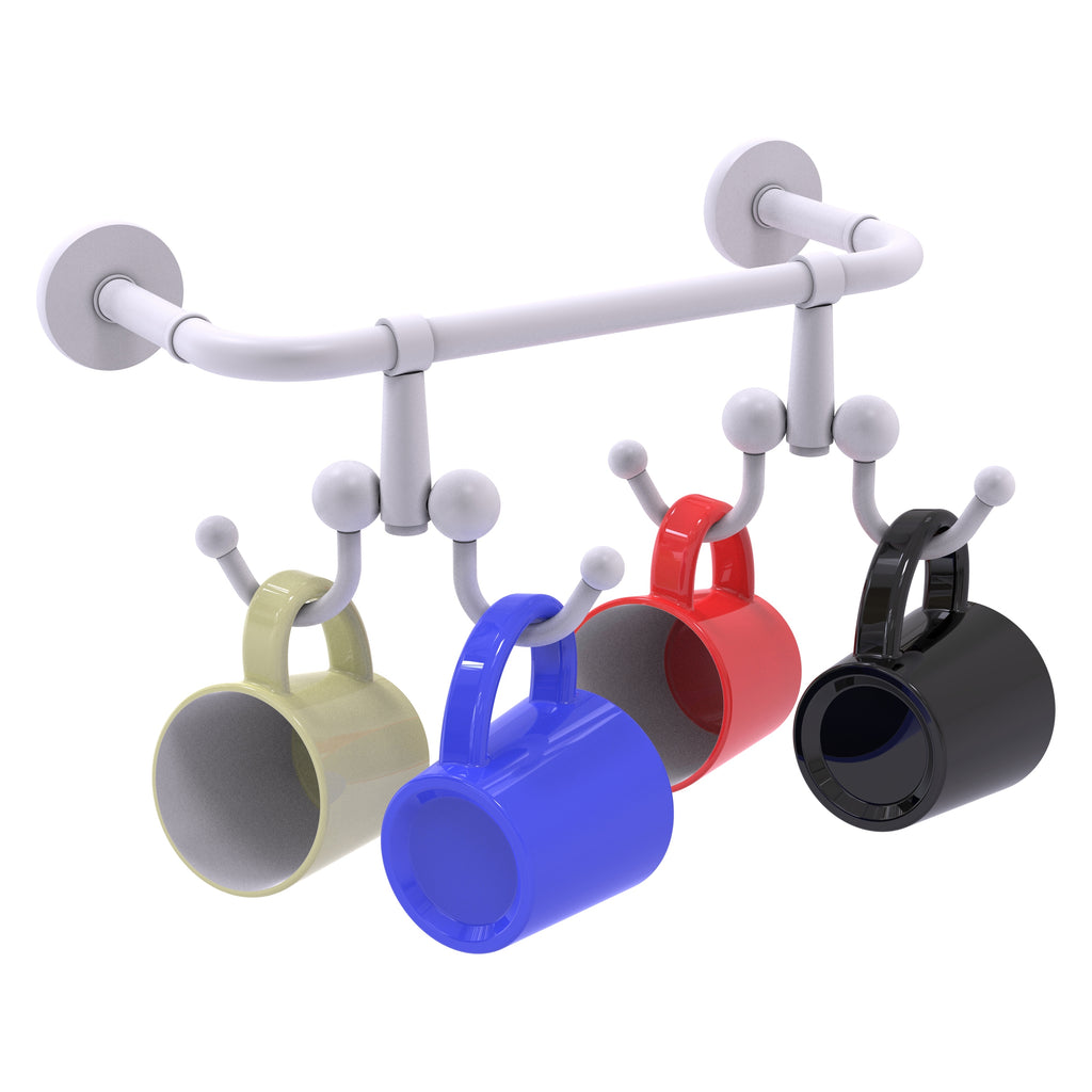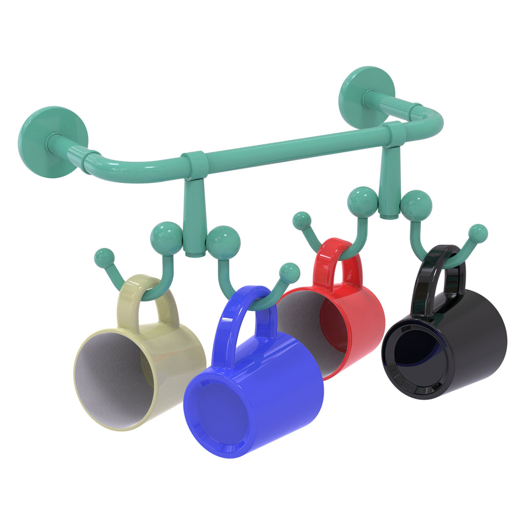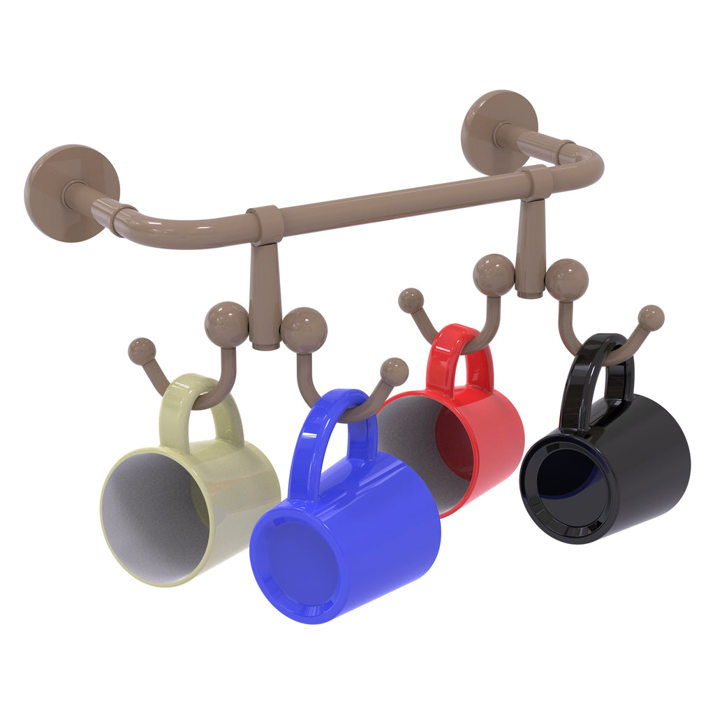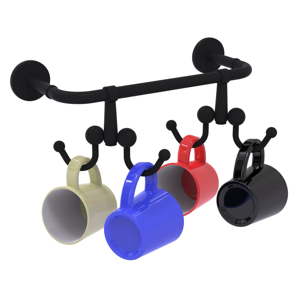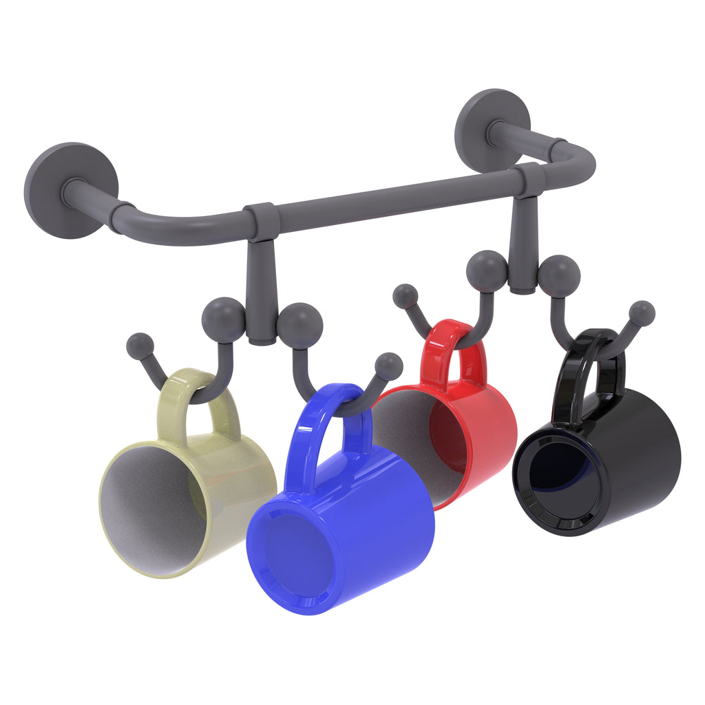Add an elegant bistro look to your kitchen by proudly displaying your favorite coffee mugs with this decorative wall mounted 4 mug rack. Find that perfect location on your wall to locate this rack making it both a focal point and a space saving convenience. Just grab your favorite mug for that first quick cup in the morning and you're off and running. Its sleek design blends with a variety of decors from modern to eclectic. The rack is available in a wide variety of beautiful decorative finishes and coated guaranteeing it to be free from corrosion. Mugs not included with rack.