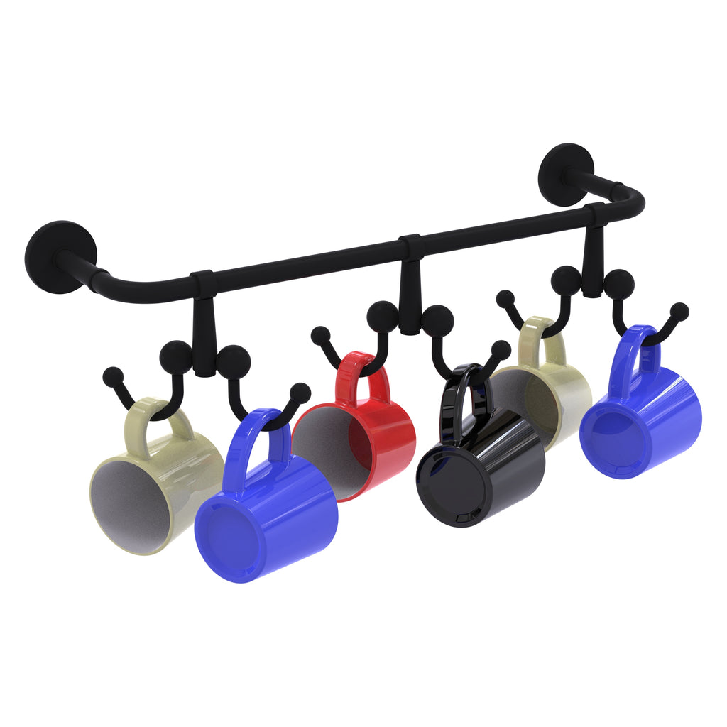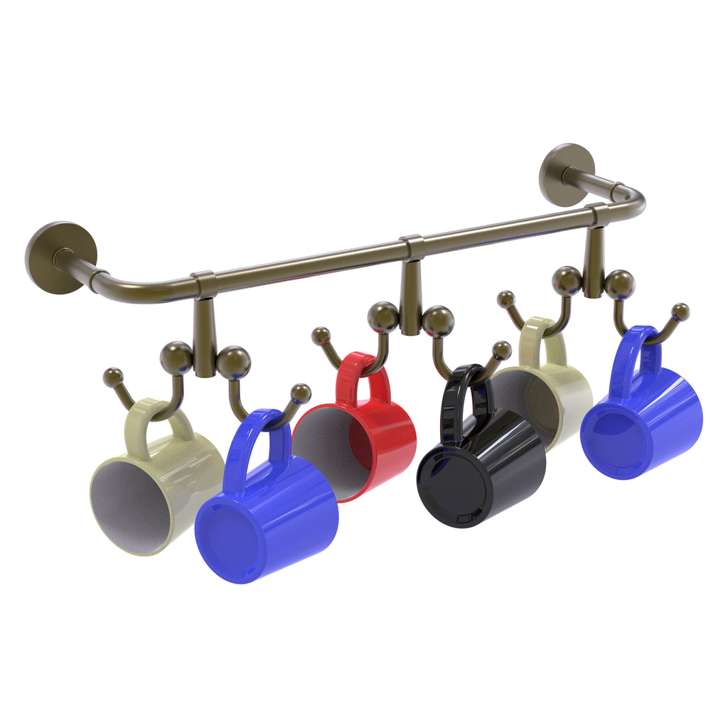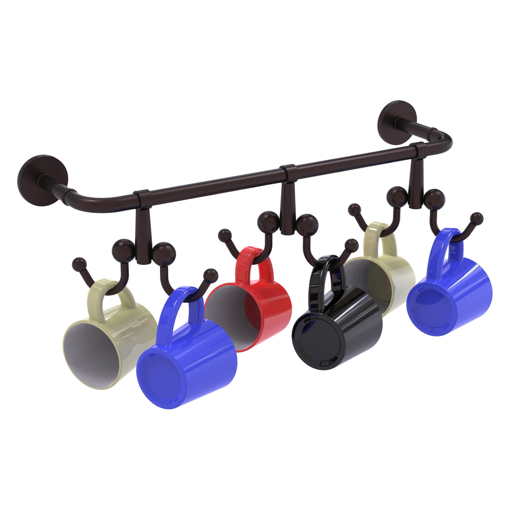 Add an elegant bistro look to your kitchen by proudly displaying your favorite coffee mugs with this decorative wall mounted 6 mug rack. Find that perfect location on your wall to locate this rack making it both a focal point and a space saving convenience. Just grab your favorite mug for that first quick cup in the morning and you're off and running. Its sleek design blends with a variety of decors from modern to eclectic. The rack is available in a wide variety of beautiful decorative finishes and coated guaranteeing it to be free from corrosion. Mugs not included with rack.