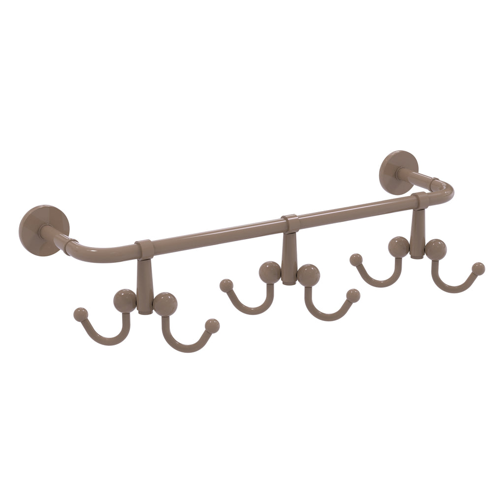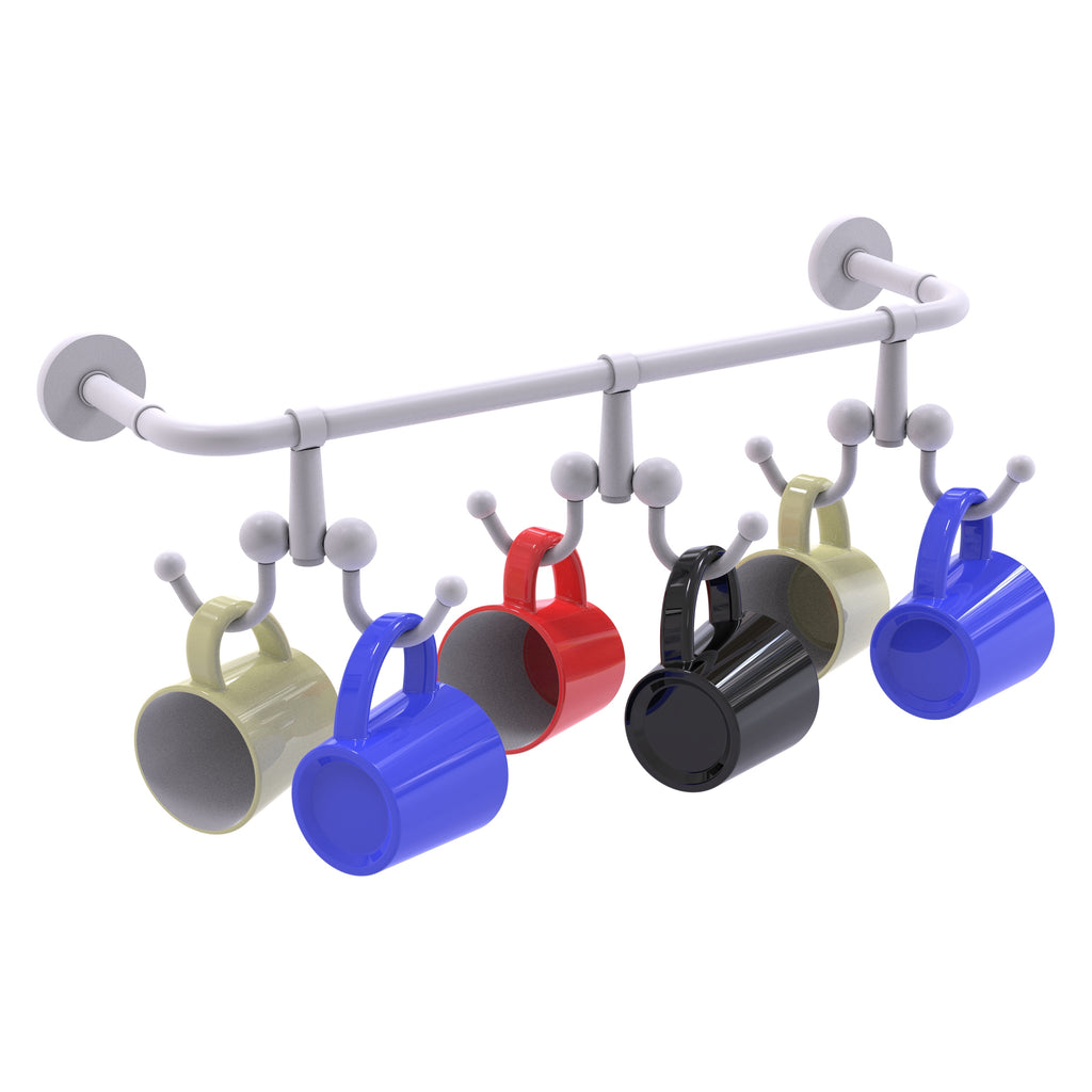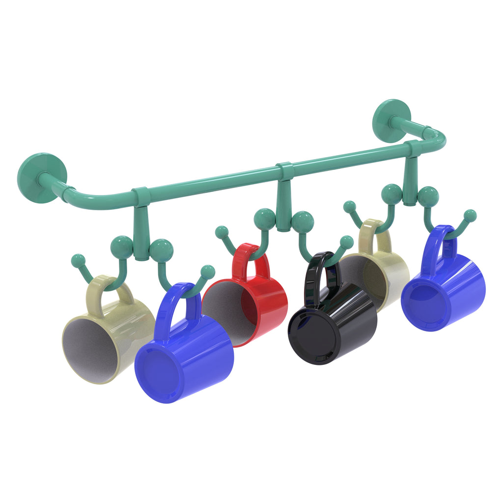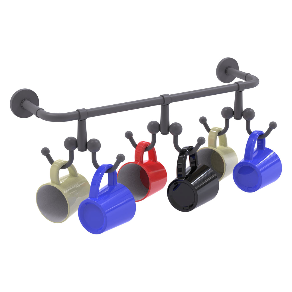 Add an elegant bistro look to your kitchen by proudly displaying your favorite coffee mugs with this decorative wall mounted 6 mug rack. Find that perfect location on your wall to locate this rack making it both a focal point and a space saving convenience. Just grab your favorite mug for that first quick cup in the morning and you're off and running. Its sleek design blends with a variety of decors from modern to eclectic. The rack is available in a wide variety of beautiful decorative finishes and coated guaranteeing it to be free from corrosion. Mugs not included with rack.