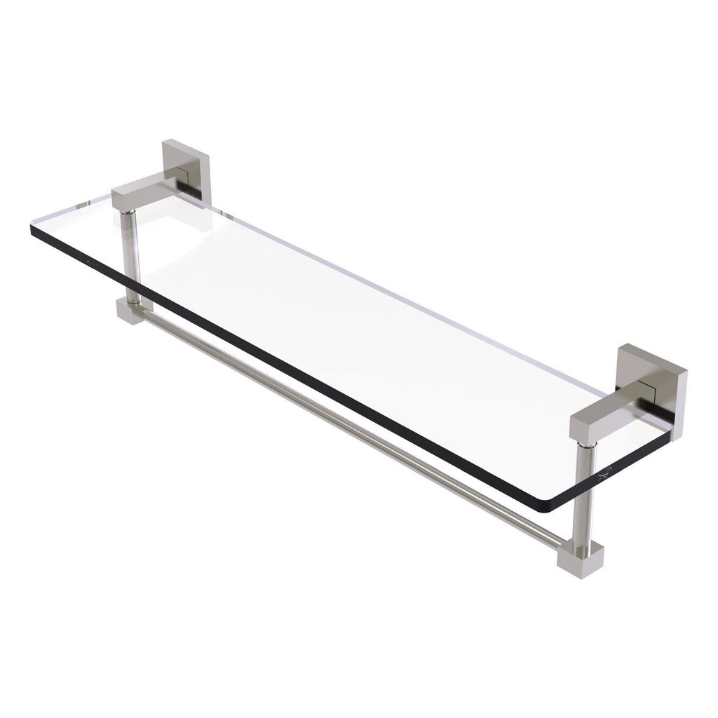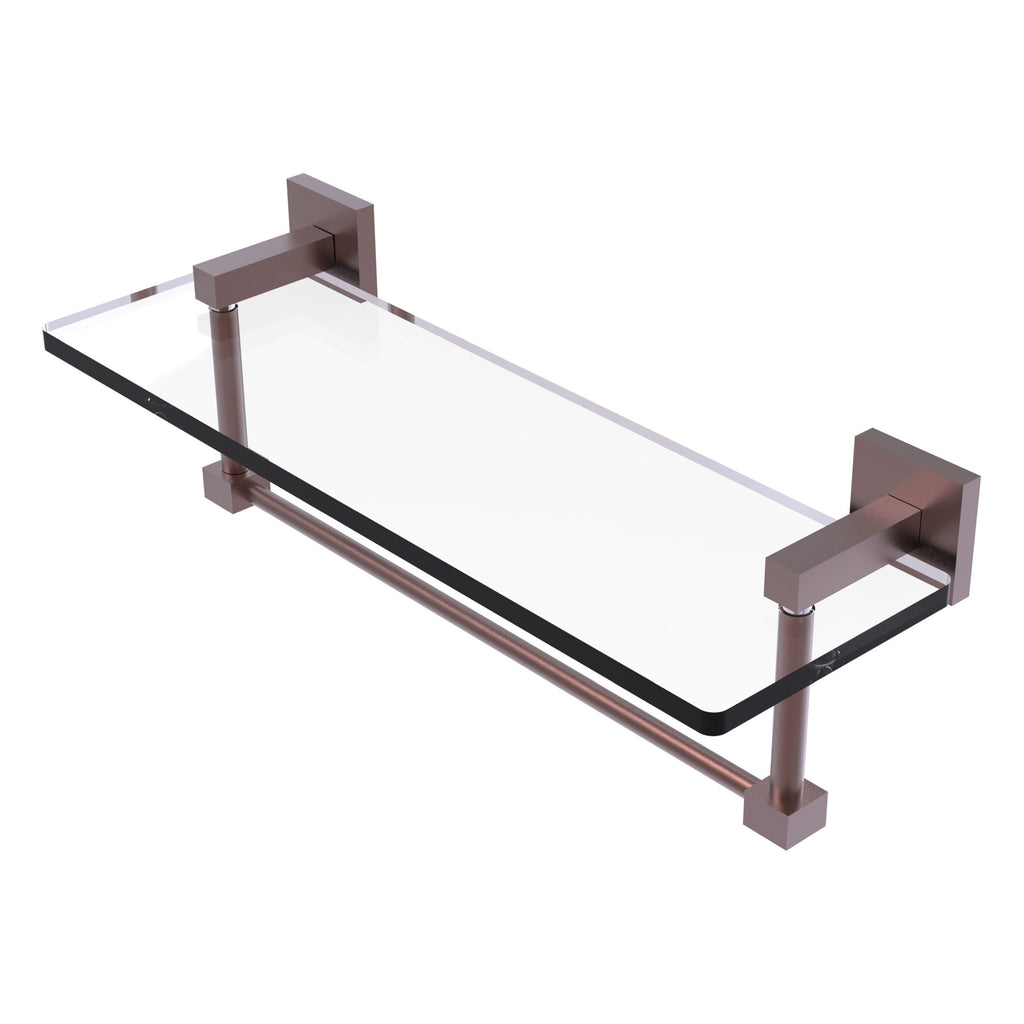 Add space and organization to your bathroom or vanity area with this simple, modern style 2-in-1 glass shelf and towel bar. Featuring tempered, beveled-edge glass and solid brass hardware this shelf is crafted for durability strength and style. One of the many coordinating accessories in the Allied Brass Collection of accessories, this subtle glass shelf is the perfect complement to your bathroom decor.