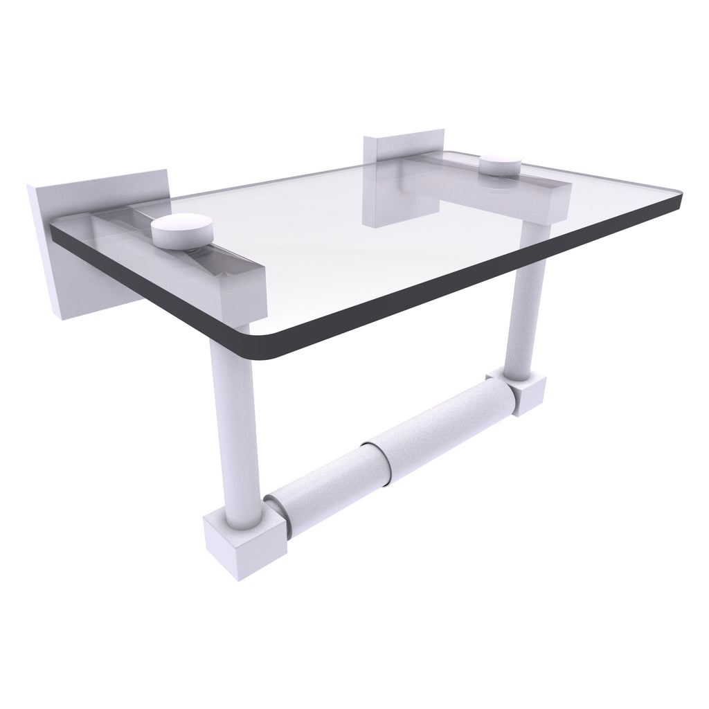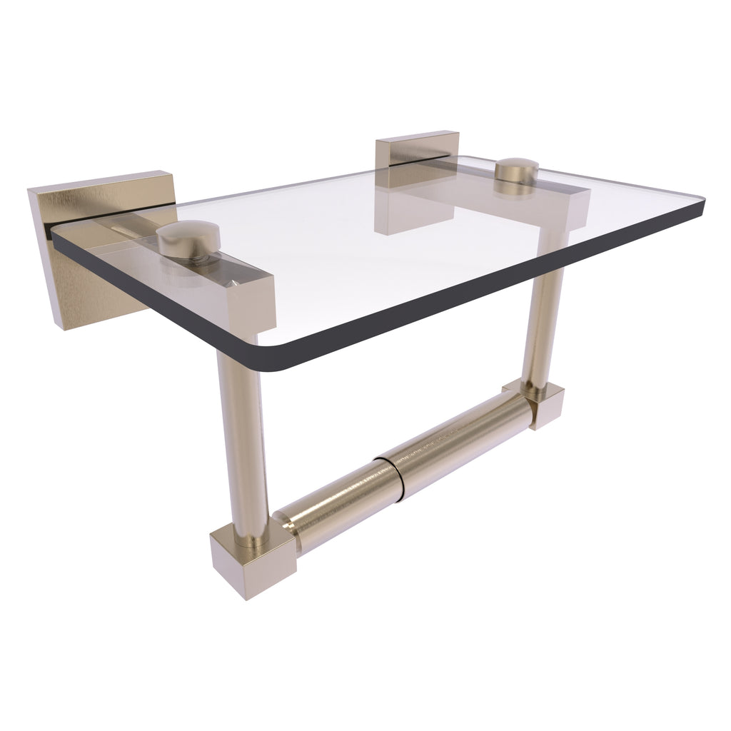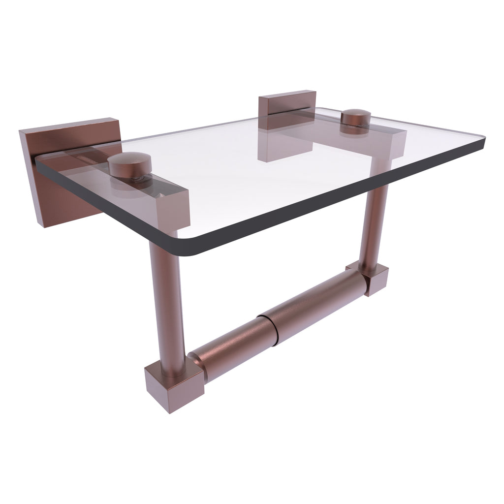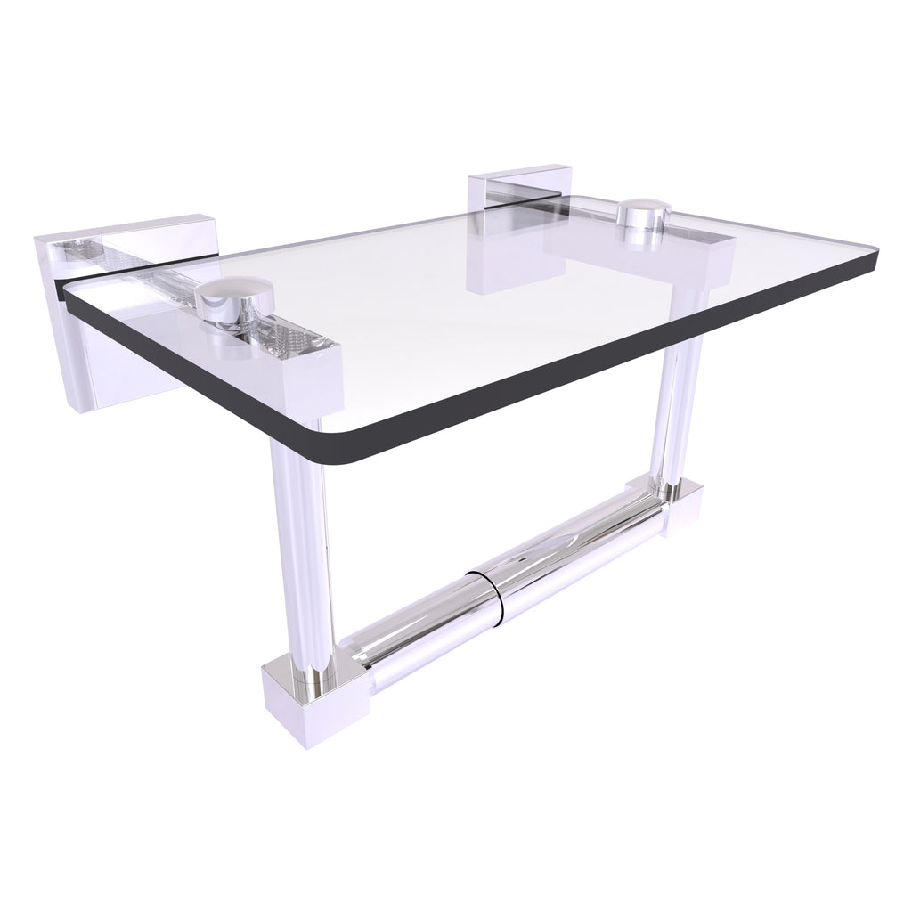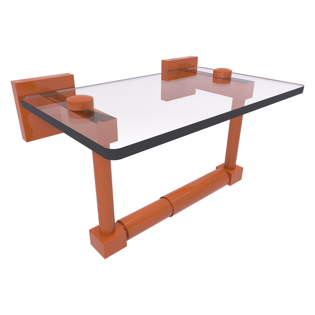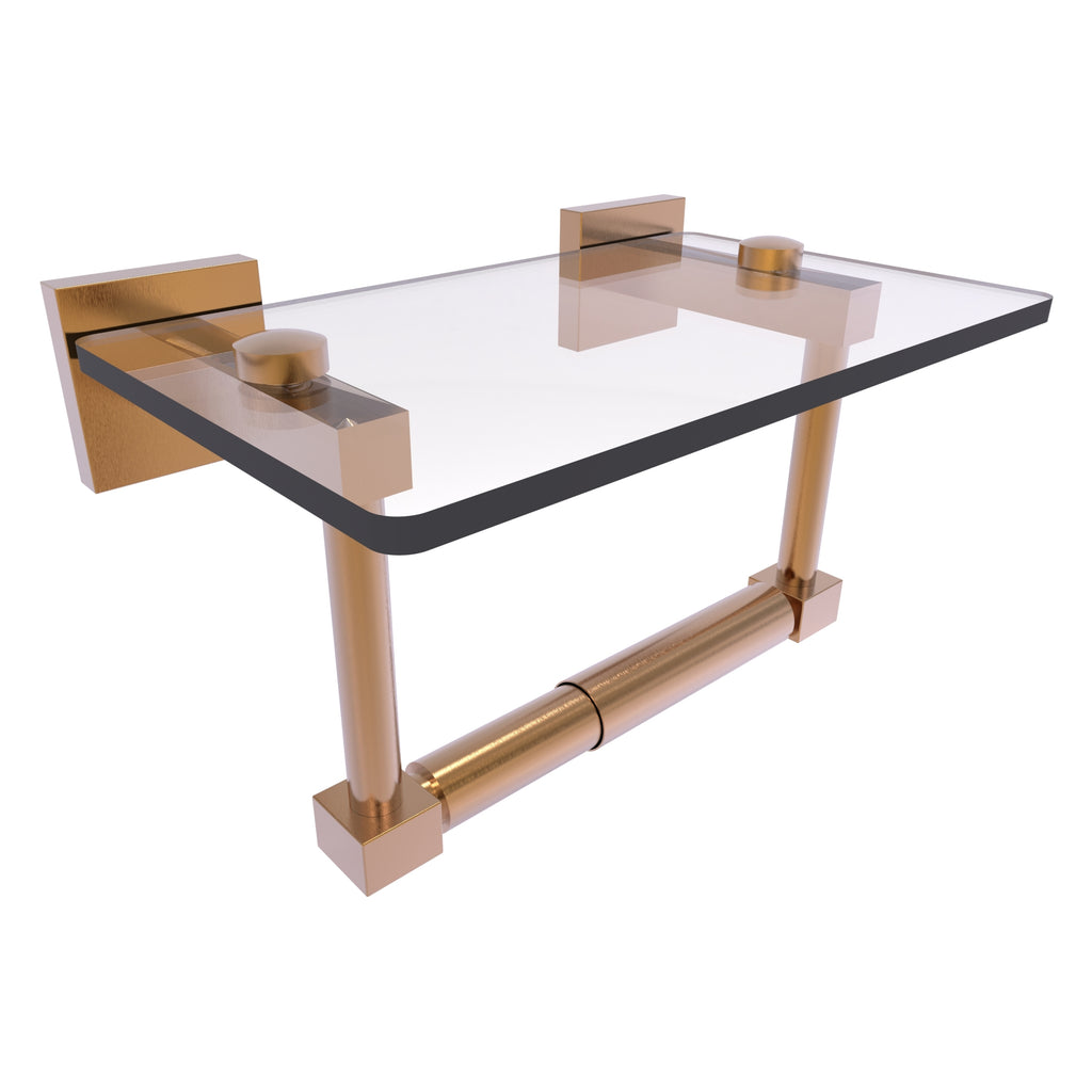 Upgrade your bathroom with the contemporary square design toilet paper holder with a glass shelf. This innovative design not only holds your toilet paper, but also provides a compact glass shelf above the roll holder, perfect for placing your phone or other personal items. The 5'' x 8'' wide glass shelf is the ideal size for the commode area and adds a touch of elegance to your bathroom. Made of solid brass and available in a variety of designer finishes, this toilet paper holder is built to last a lifetime. Get your contemporary square design toilet paper holder with a glass shelf today and enjoy its many benefits.