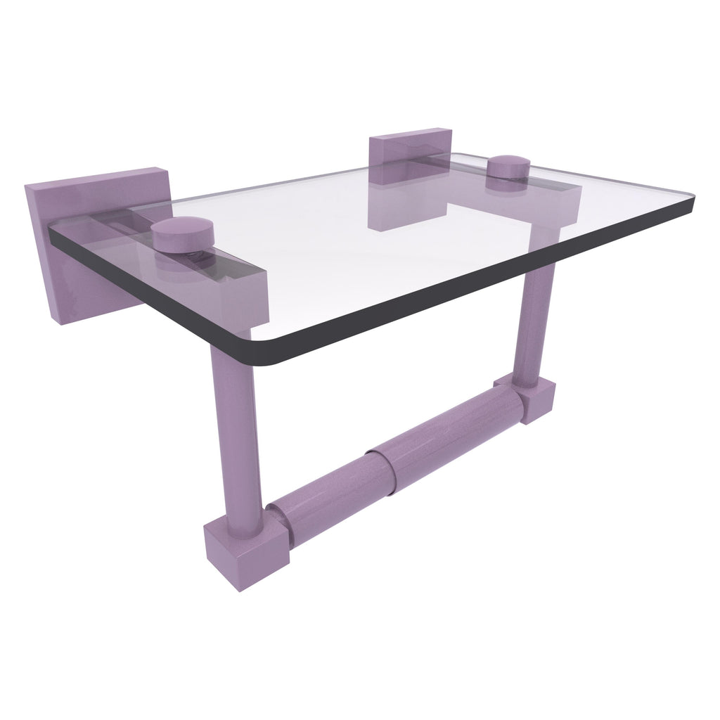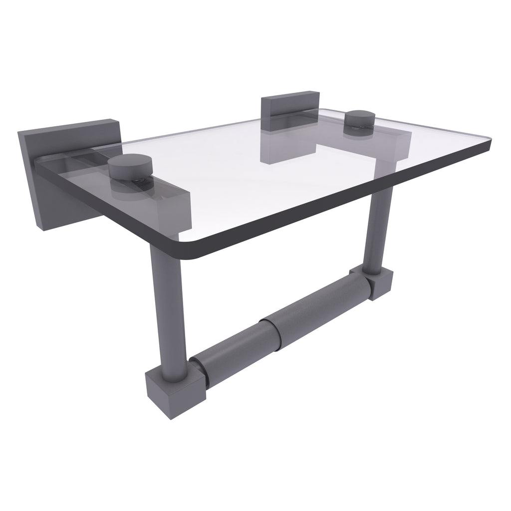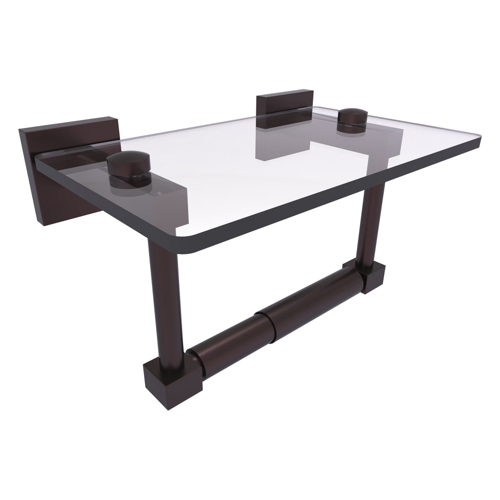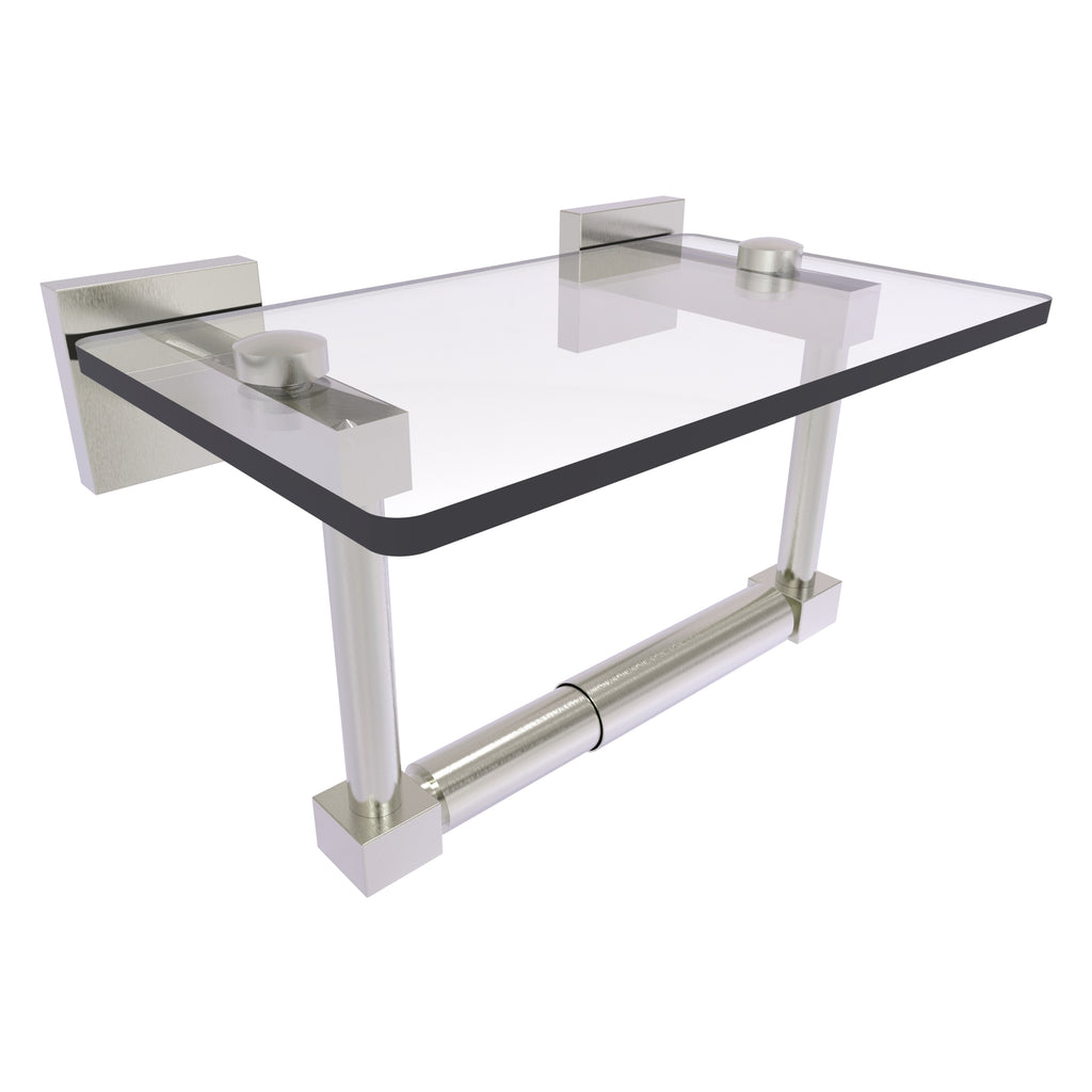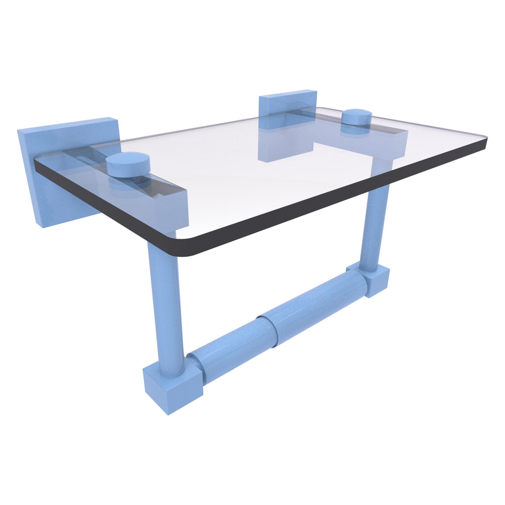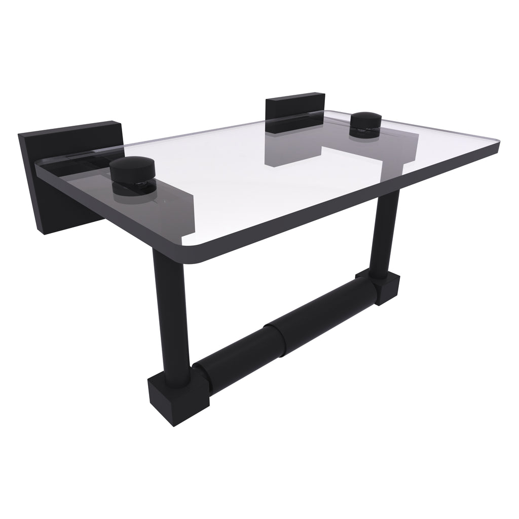 Upgrade your bathroom with the contemporary square design toilet paper holder with a glass shelf. This innovative design not only holds your toilet paper, but also provides a compact glass shelf above the roll holder, perfect for placing your phone or other personal items. The 5'' x 8'' wide glass shelf is the ideal size for the commode area and adds a touch of elegance to your bathroom. Made of solid brass and available in a variety of designer finishes, this toilet paper holder is built to last a lifetime. Get your contemporary square design toilet paper holder with a glass shelf today and enjoy its many benefits.