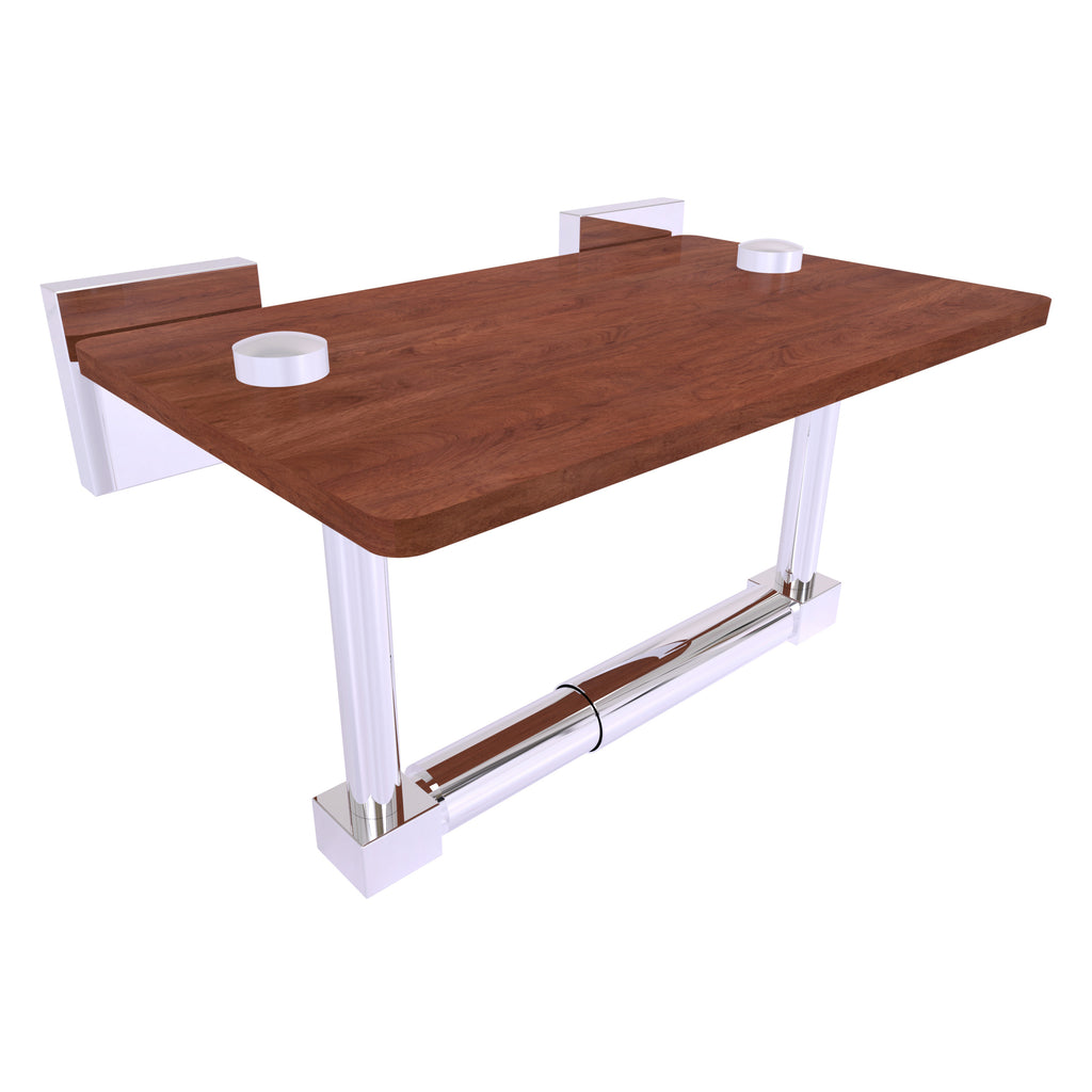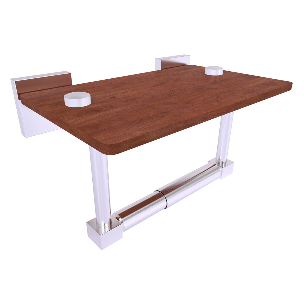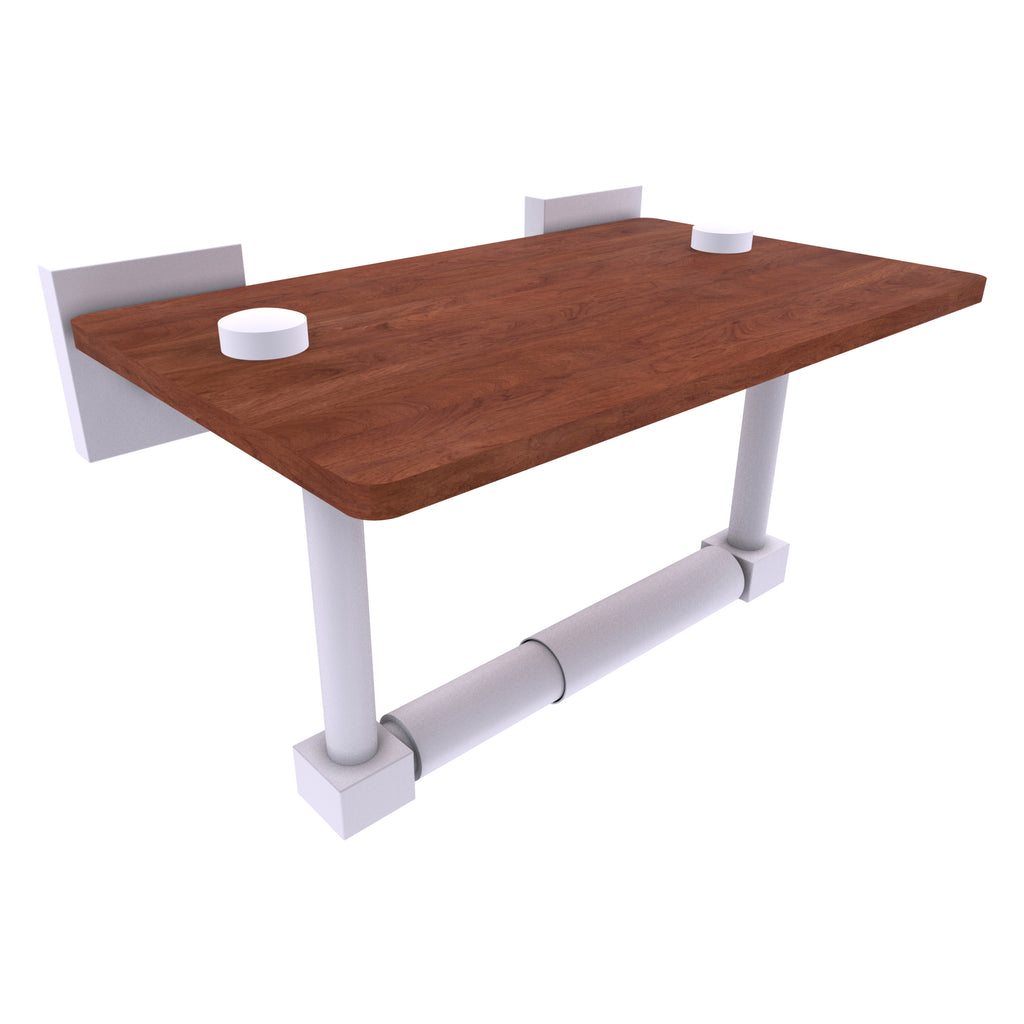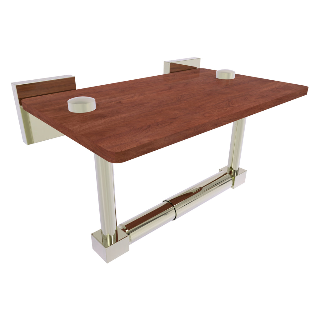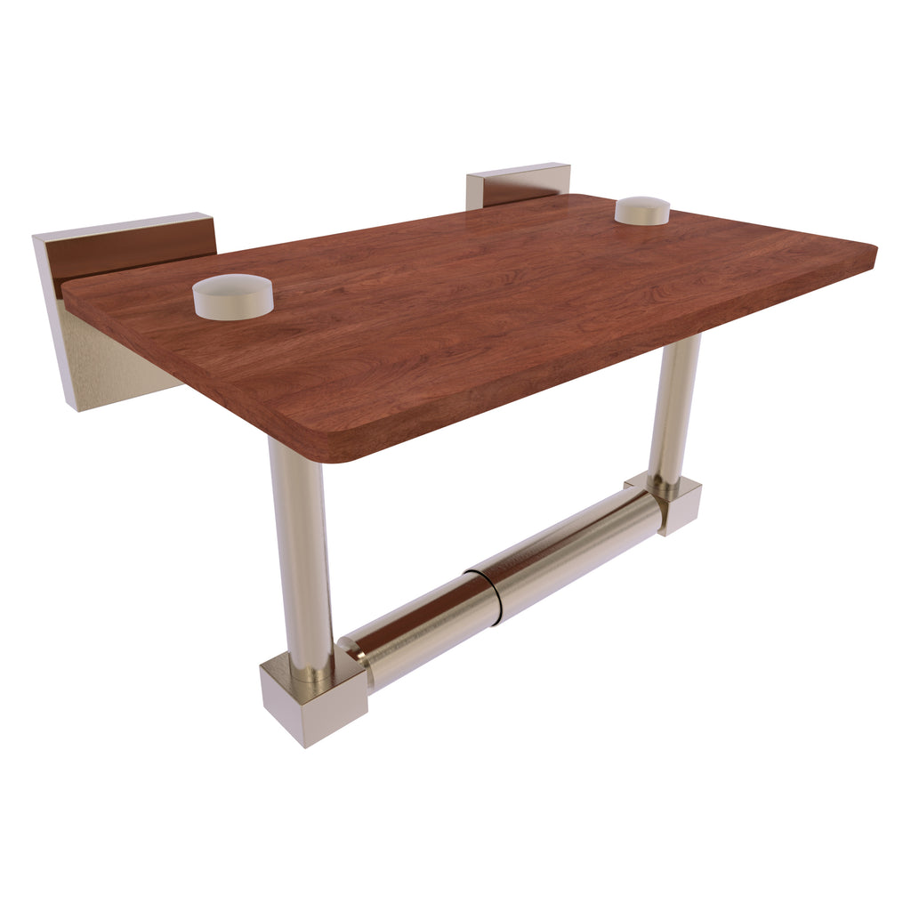 Elevate your bathroom decor with the contemporary square design toilet paper holder with a hardwood shelf. This unique design not only holds your toilet paper but also provides a compact hardwood shelf above the roll holder, perfect for holding your phone or other personal items. The hardwood shelf adds a touch of natural beauty to your bathroom and is the ideal size for the commode area. Made of solid brass and available in a variety of designer finishes, this toilet paper holder is built to last a lifetime. Say goodbye to boring and basic toilet paper holders and upgrade to one that adds convenience and style to your bathroom.