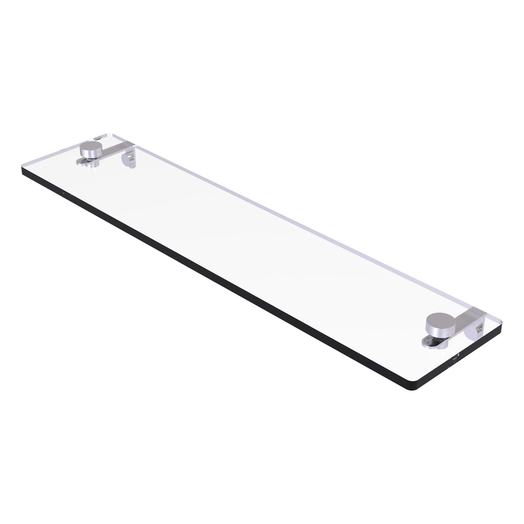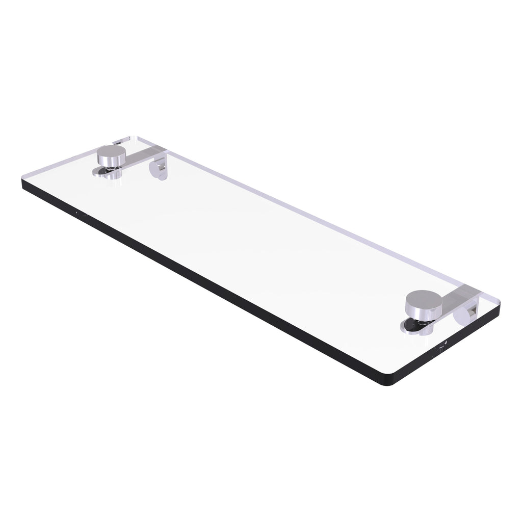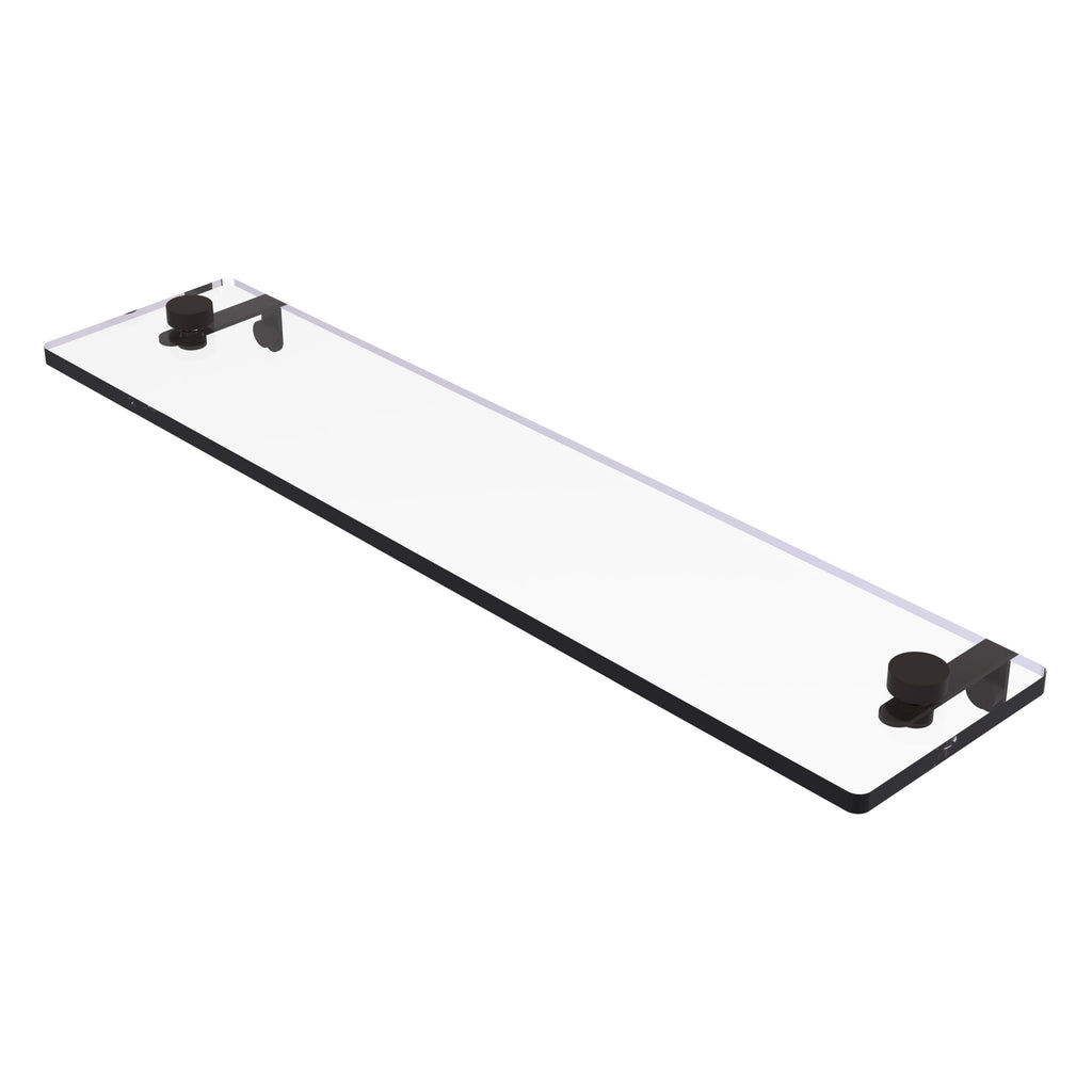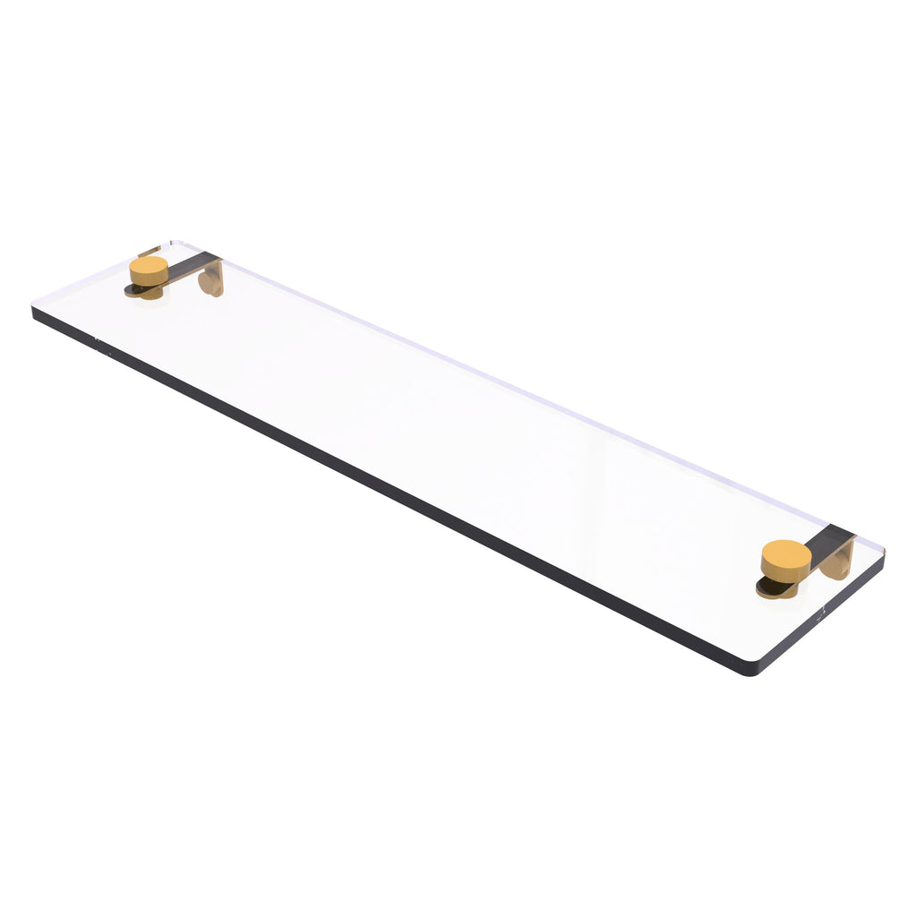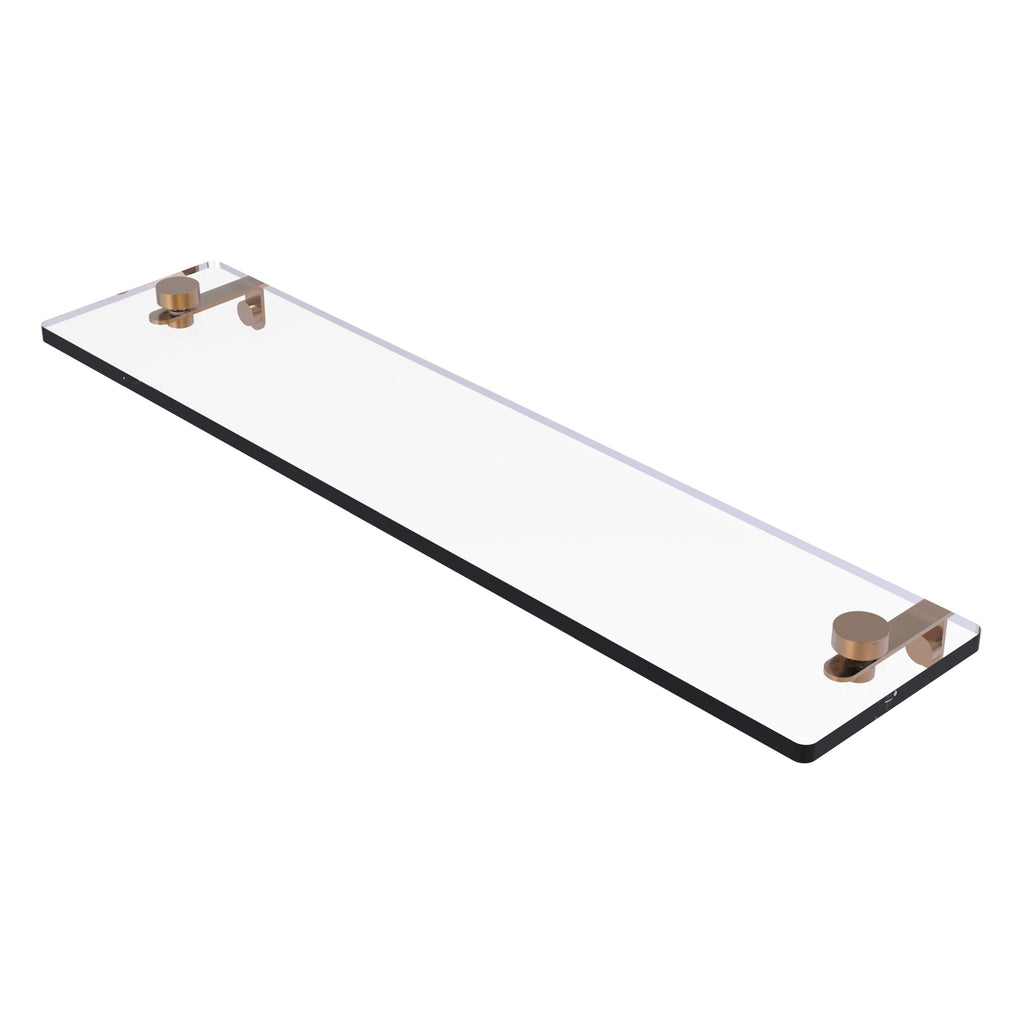 Add space and organization to your bathroom with this simple, contemporary style glass shelf. Featuring tempered, beveled-edged glass and solid brass hardware this shelf is crafted for durability, strength and style. One of the many coordinating accessories in the Allied Brass Collection of accessories, this subtle glass shelf is the perfect complement to your bathroom decor.