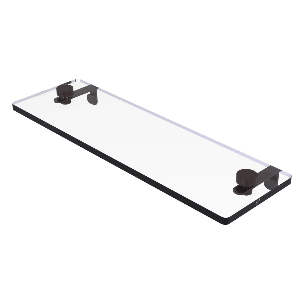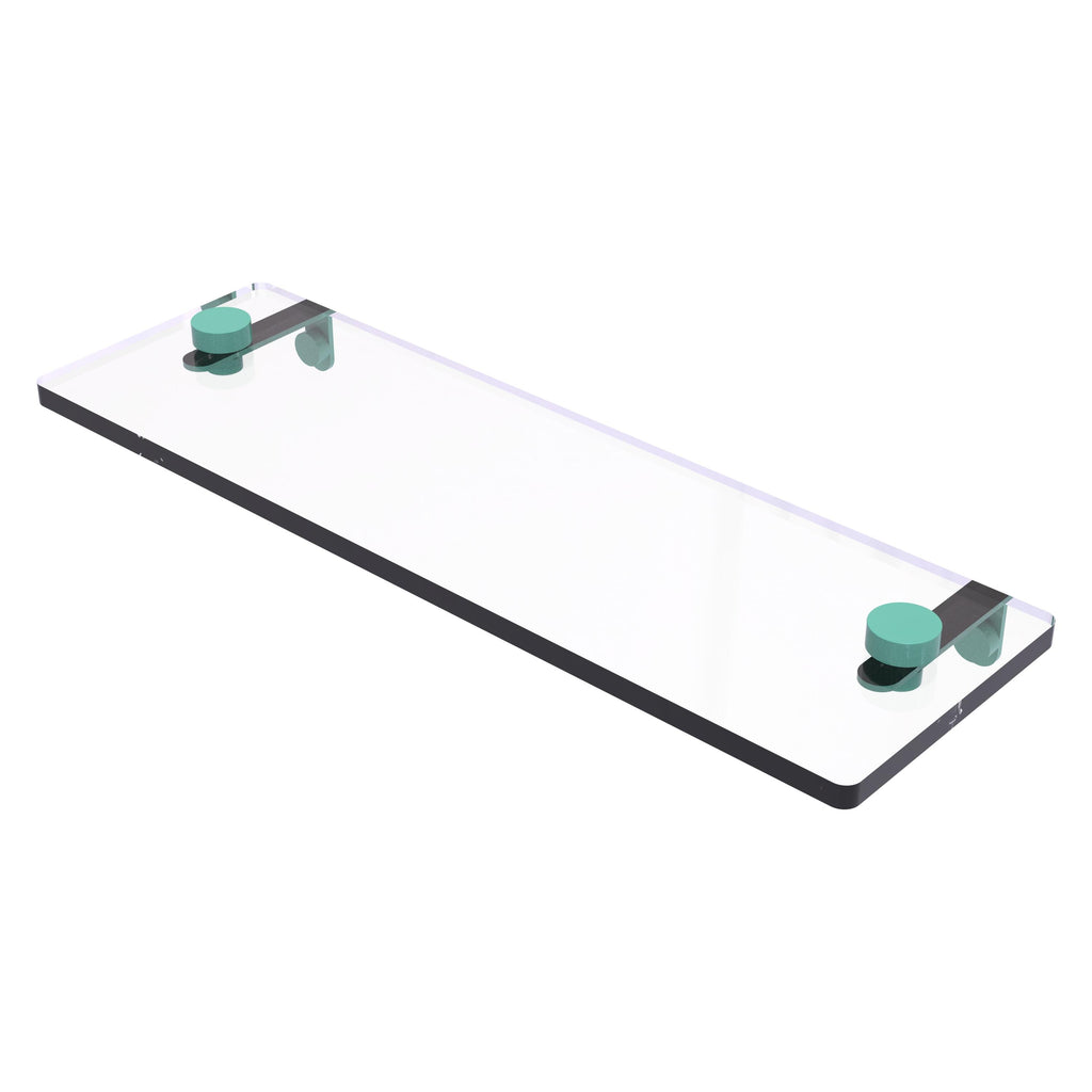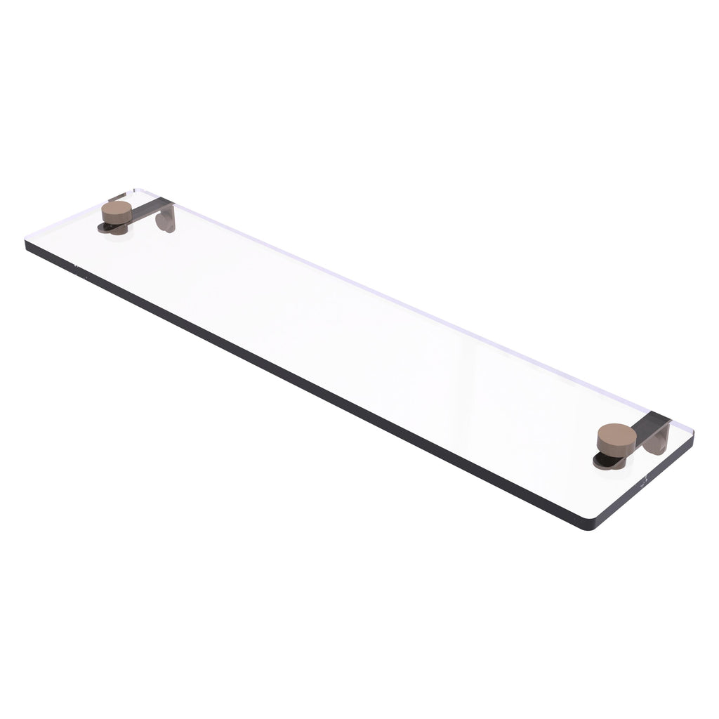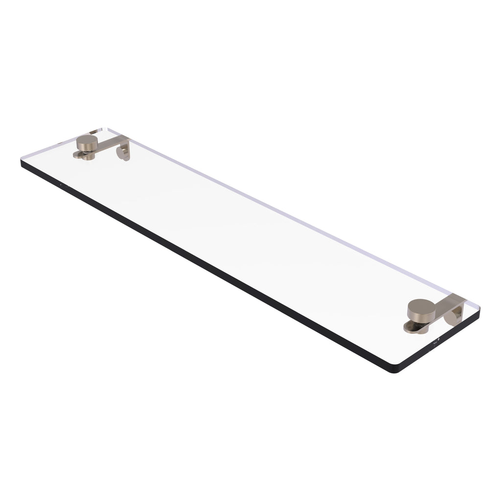 Add space and organization to your bathroom with this simple, contemporary style glass shelf. Featuring tempered, beveled-edged glass and solid brass hardware this shelf is crafted for durability, strength and style. One of the many coordinating accessories in the Allied Brass Collection of accessories, this subtle glass shelf is the perfect complement to your bathroom decor.