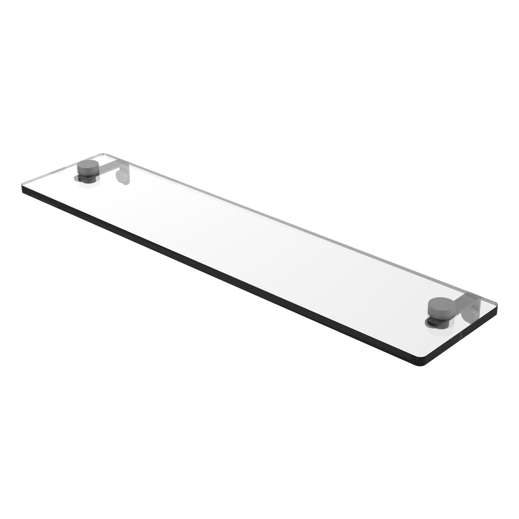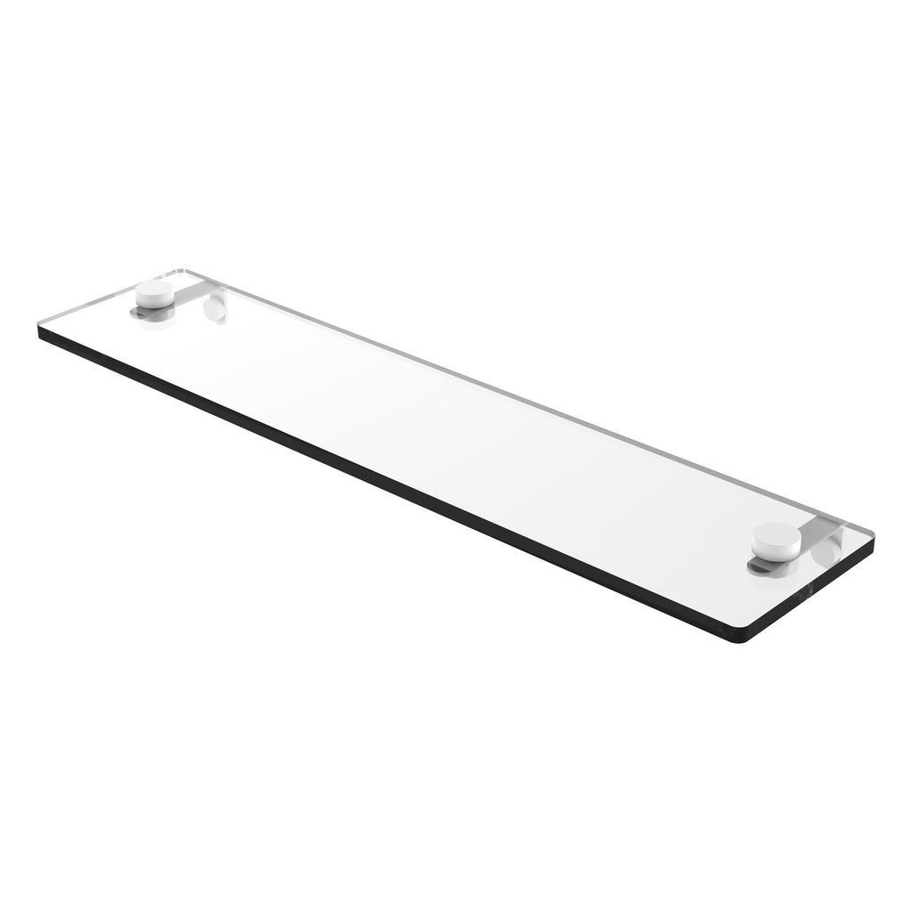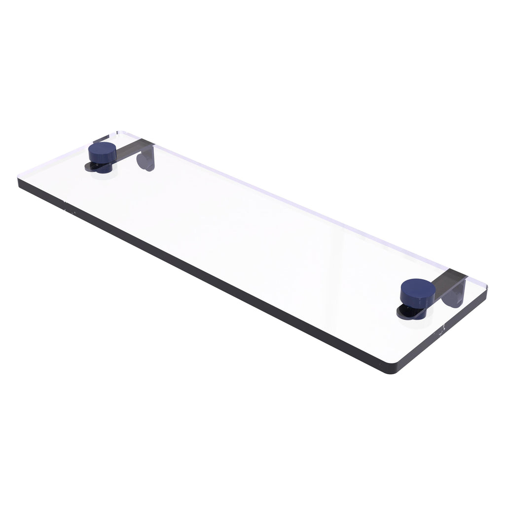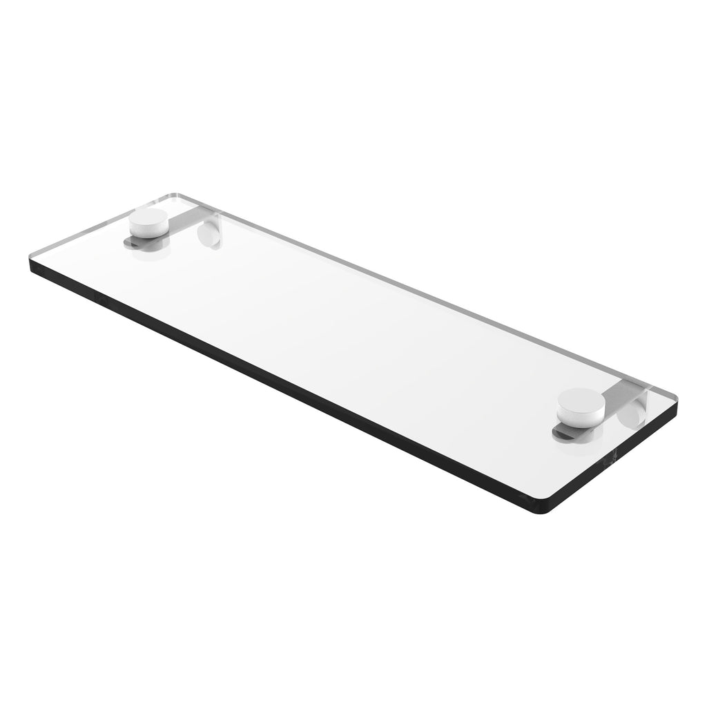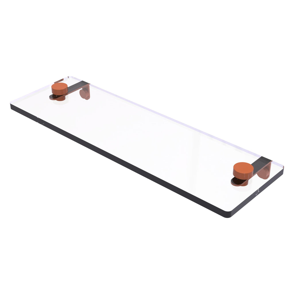 Add space and organization to your bathroom with this simple, contemporary style glass shelf. Featuring tempered, beveled-edged glass and solid brass hardware this shelf is crafted for durability, strength and style. One of the many coordinating accessories in the Allied Brass Collection of accessories, this subtle glass shelf is the perfect complement to your bathroom decor.