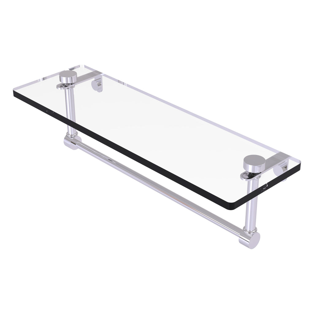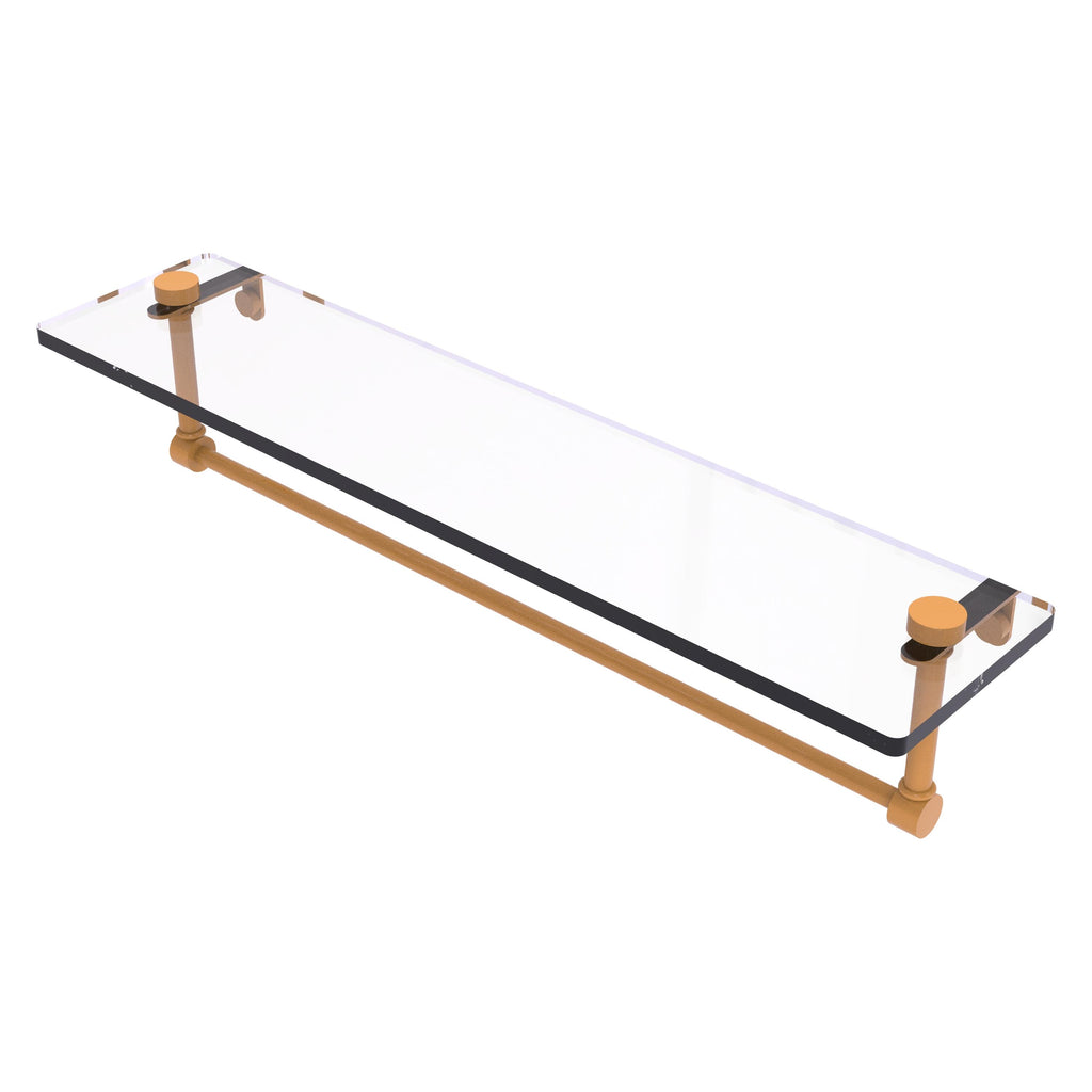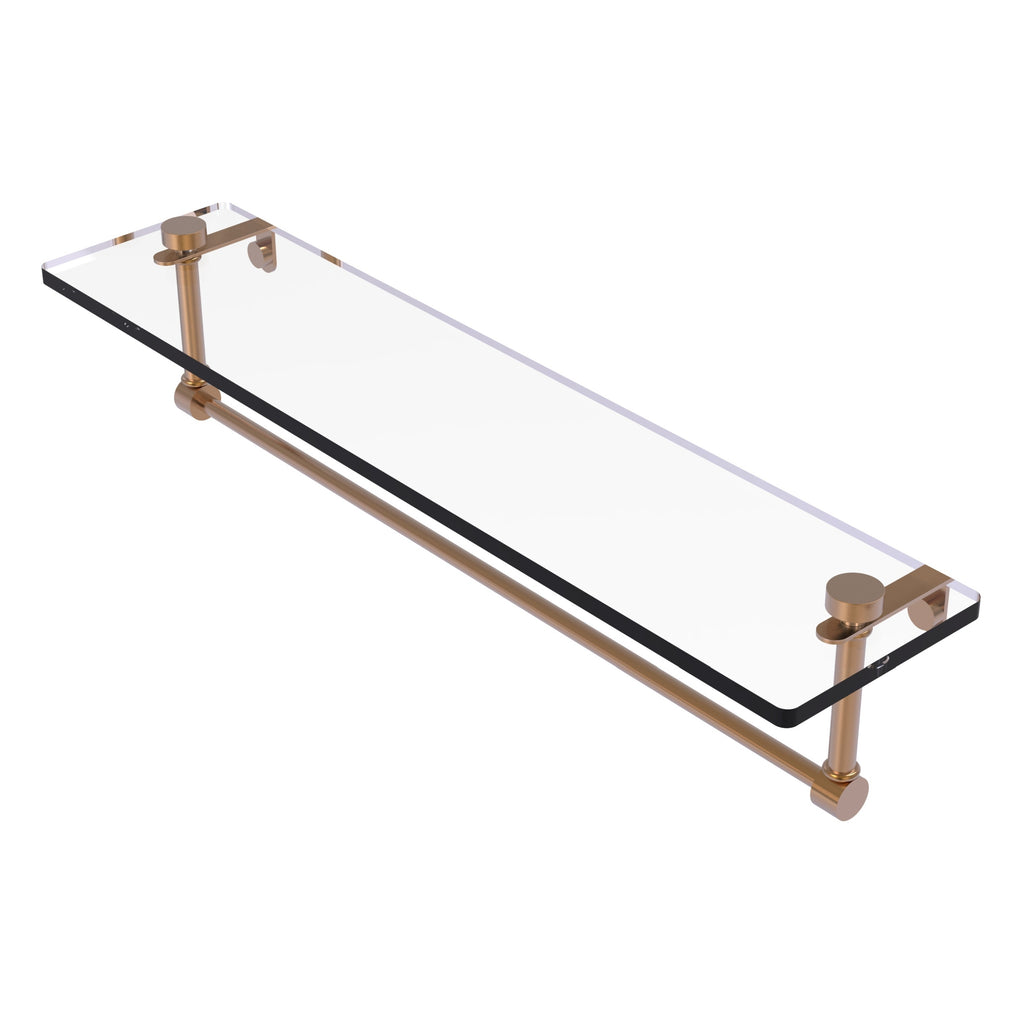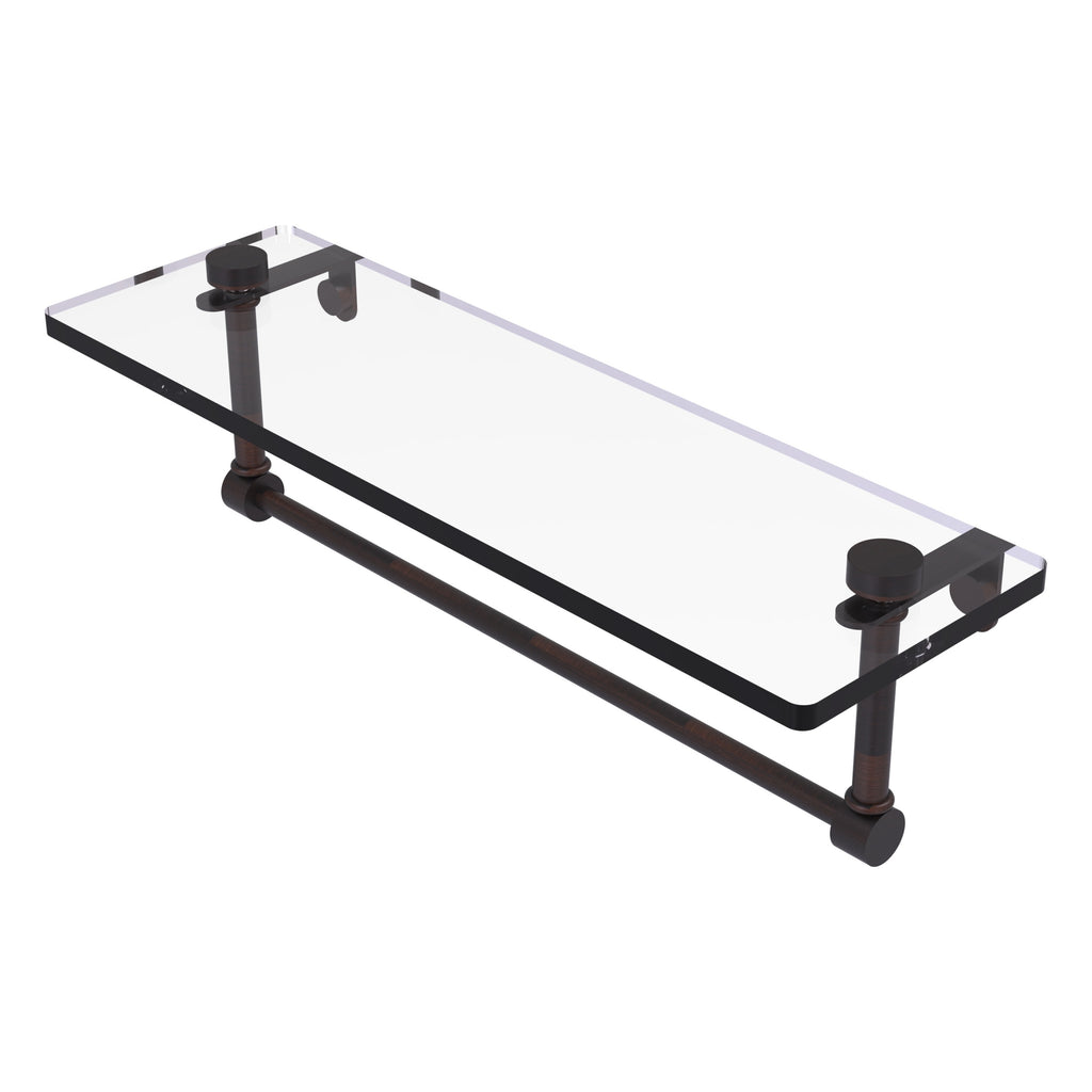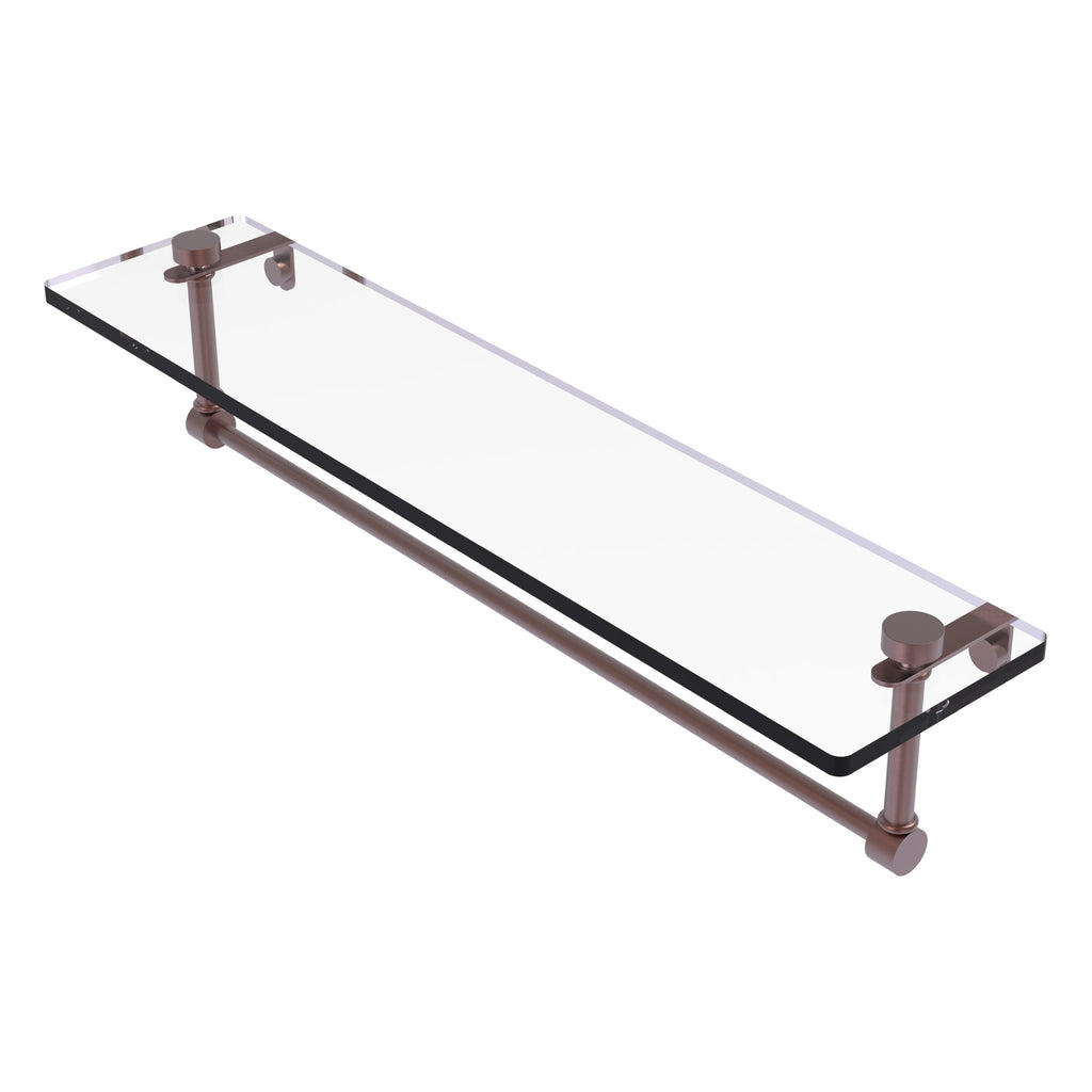 Add space and organization to your bathroom with this simple, contemporary style glass shelf. Featuring tempered, beveled-edged glass and solid brass hardware this shelf is crafted for durability, strength and style. One of the many coordinating accessories in the Allied Brass Collection of accessories, this subtle glass shelf is the perfect complement to your bathroom decor.