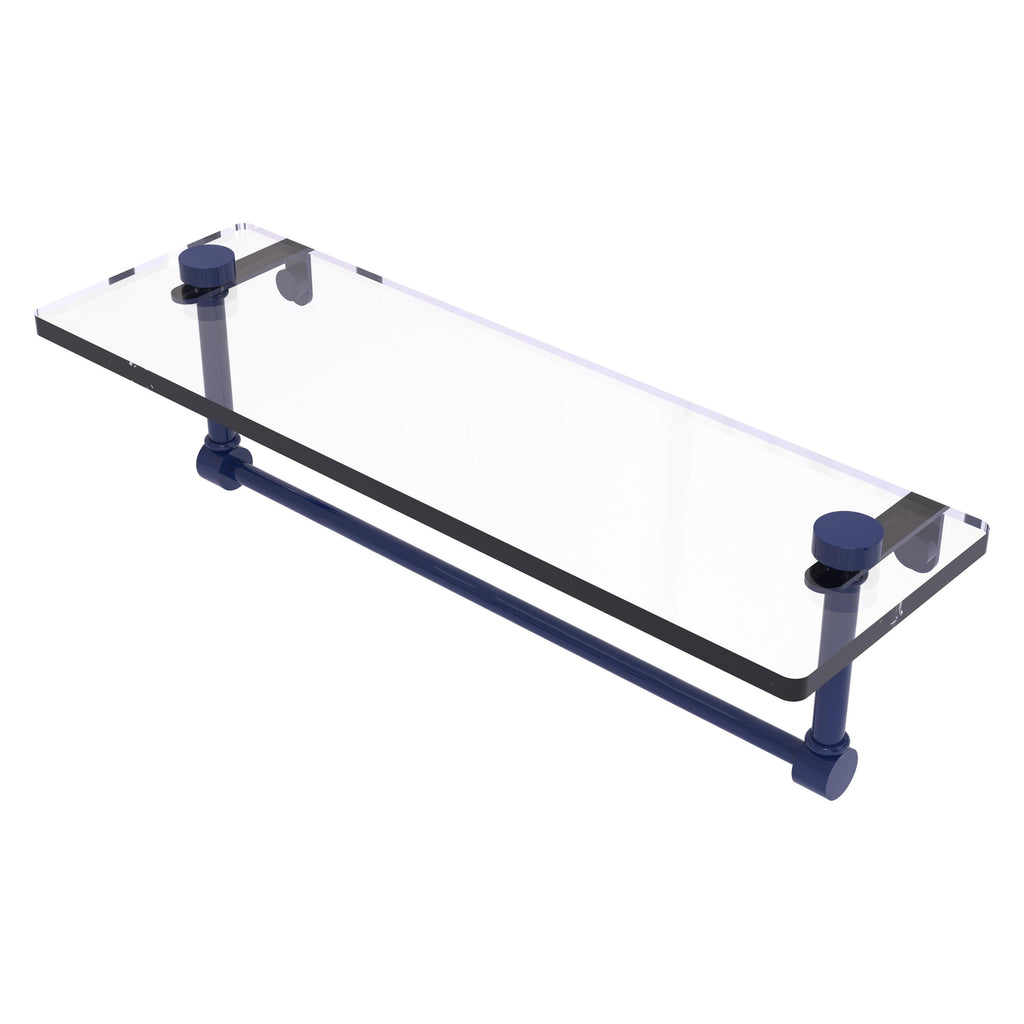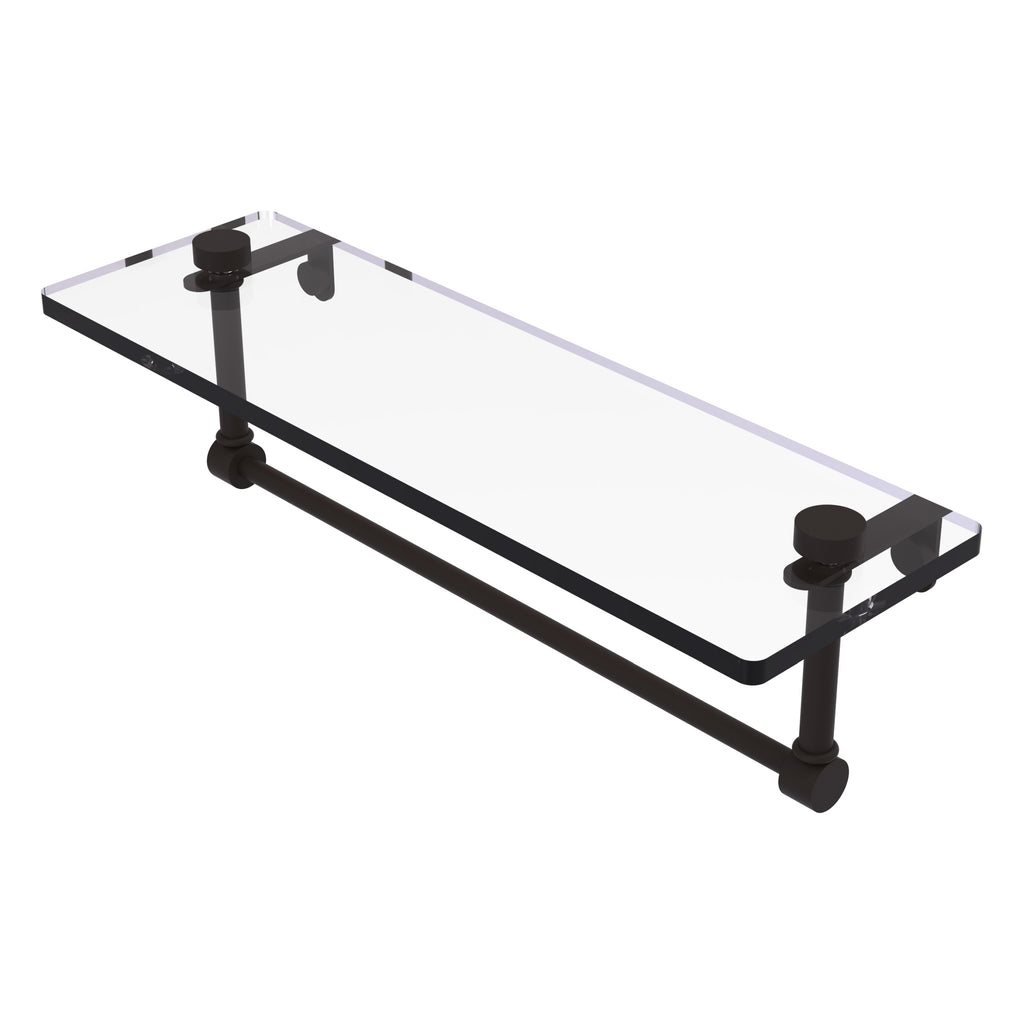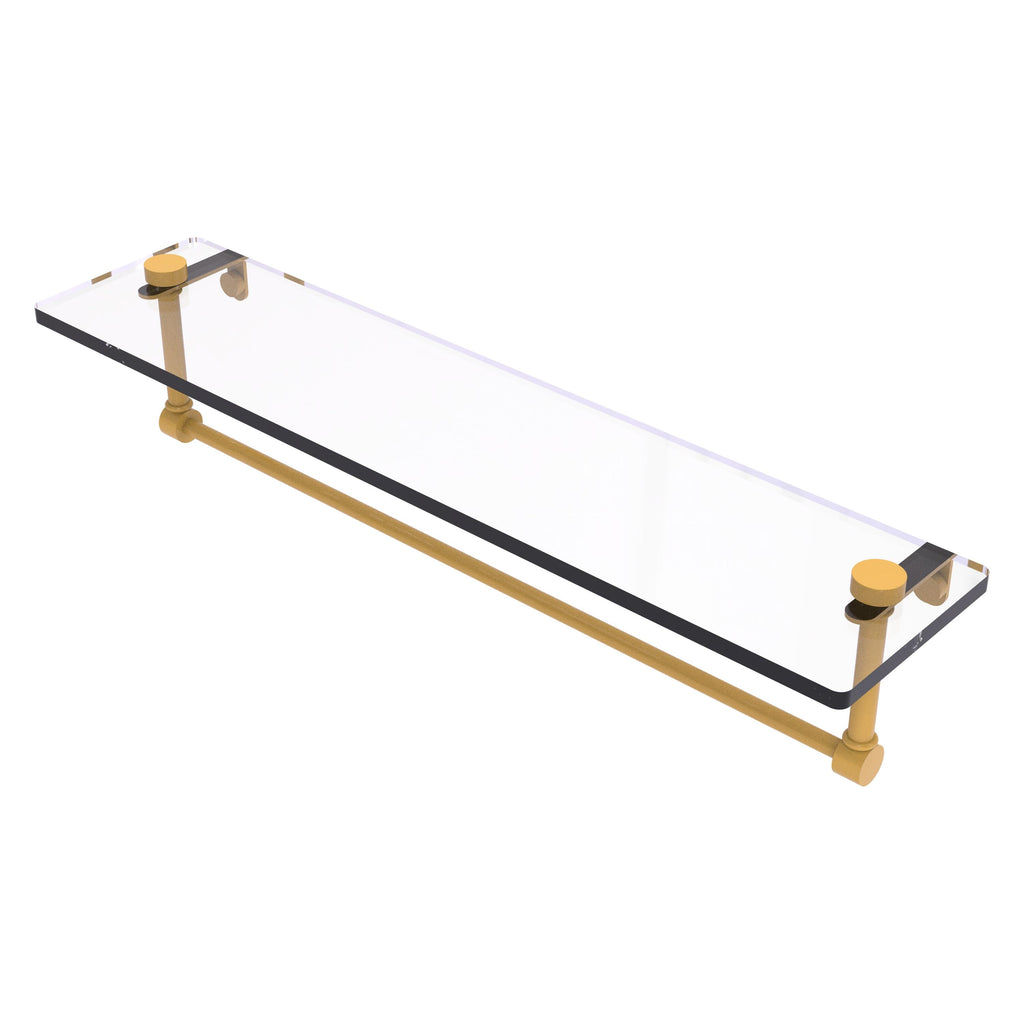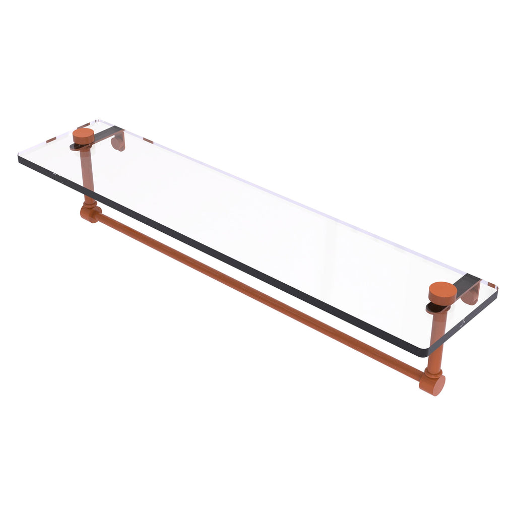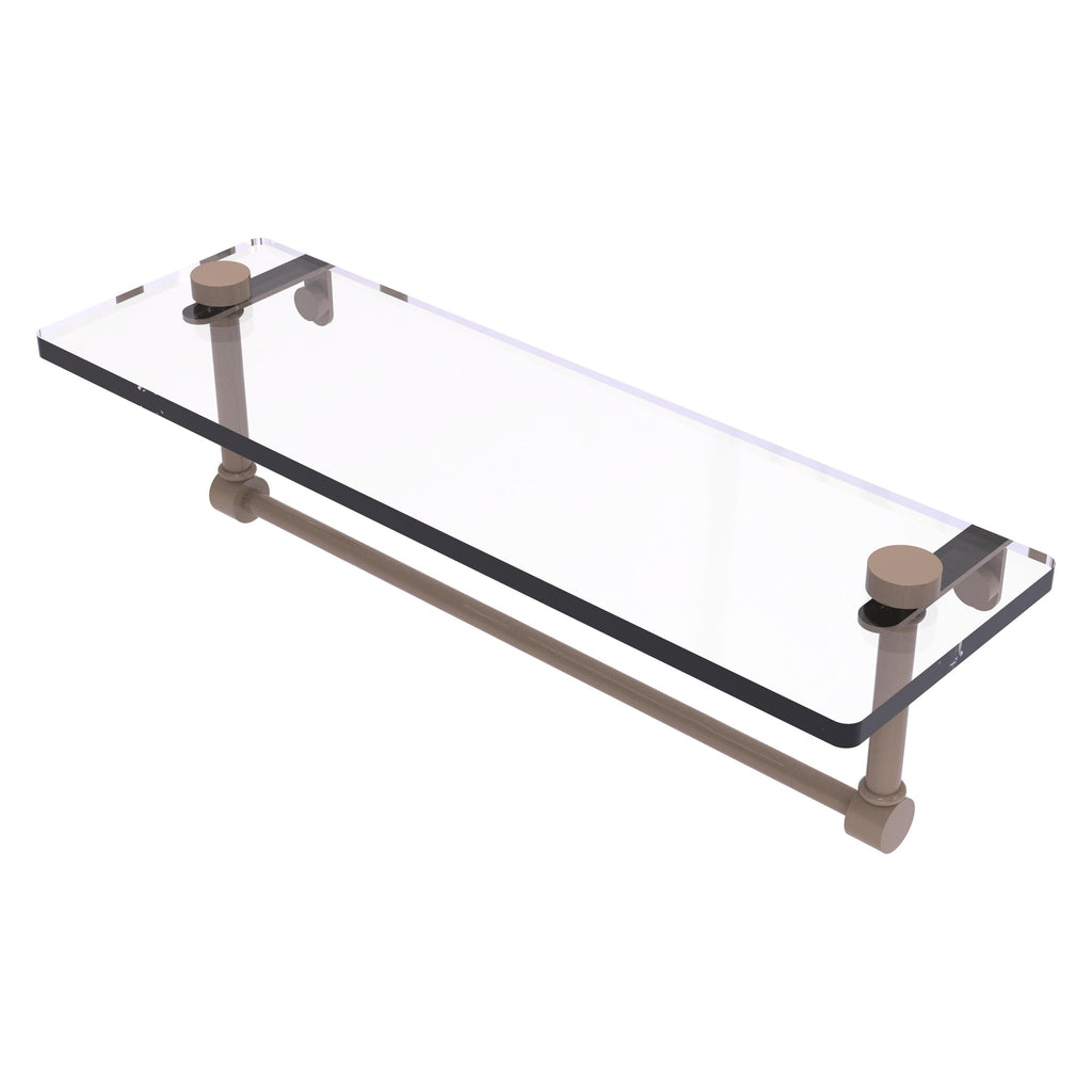 Add space and organization to your bathroom with this simple, contemporary style glass shelf. Featuring tempered, beveled-edged glass and solid brass hardware this shelf is crafted for durability, strength and style. One of the many coordinating accessories in the Allied Brass Collection of accessories, this subtle glass shelf is the perfect complement to your bathroom decor.