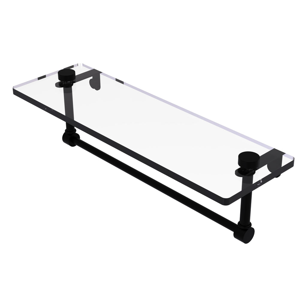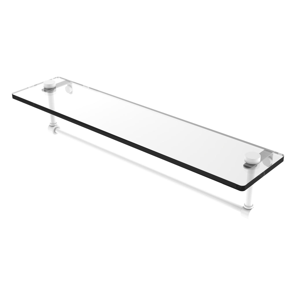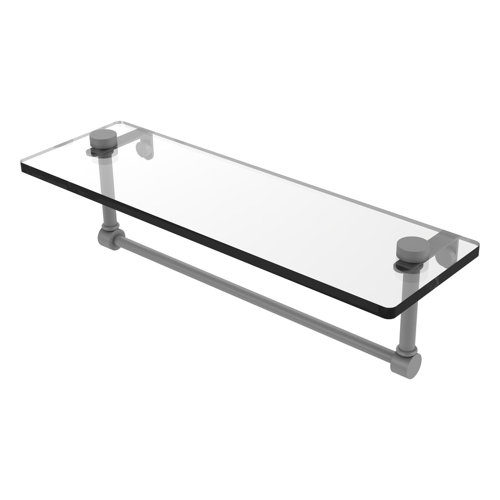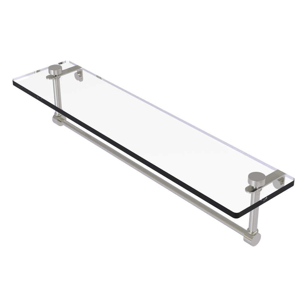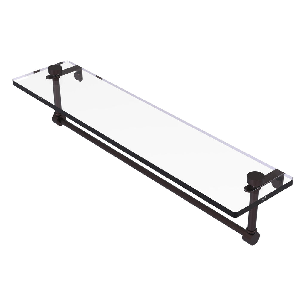 Add space and organization to your bathroom with this simple, contemporary style glass shelf. Featuring tempered, beveled-edged glass and solid brass hardware this shelf is crafted for durability, strength and style. One of the many coordinating accessories in the Allied Brass Collection of accessories, this subtle glass shelf is the perfect complement to your bathroom decor.