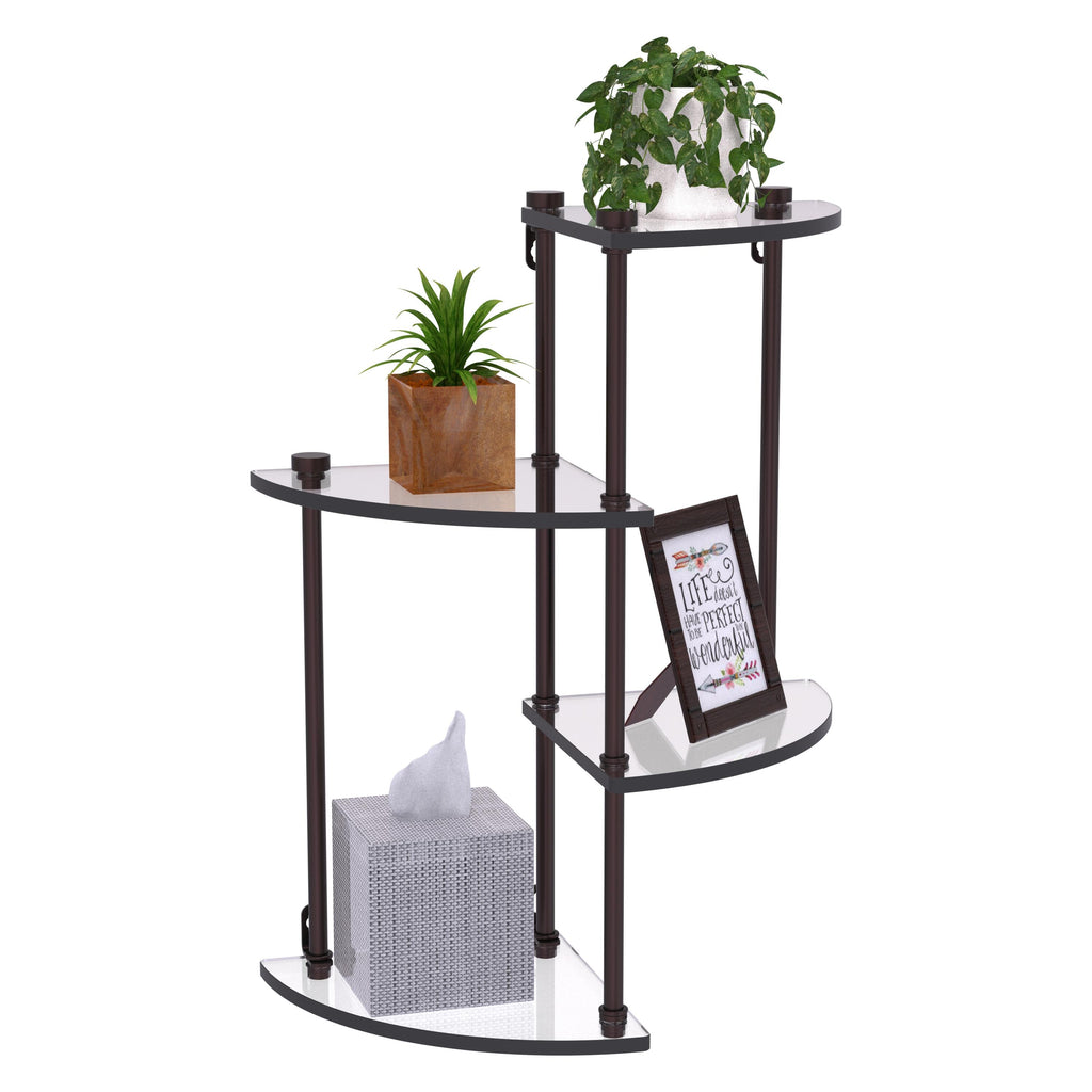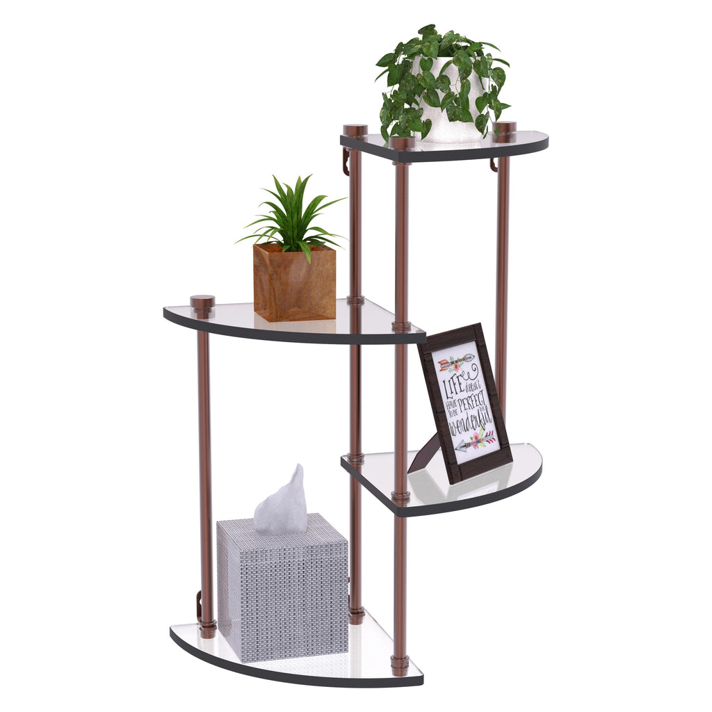 The Four Tier Wall Shelf by Allied Brass will be a stunning addition to your home's décor in any room of the house. Available in a wide variety of finishes, this shelf is both decorative and functional. It can provide an elegant way to display your prized possessions and artistic accent pieces in your living room or entryway. Shelves are securely held in place by sections of high quality brass tubing with a solid metal support rod running through the entire length. The shelf is designed for easy assembly without the use of tools. Its unique design, high-quality materials, and durable construction make it a must-have addition to your home.