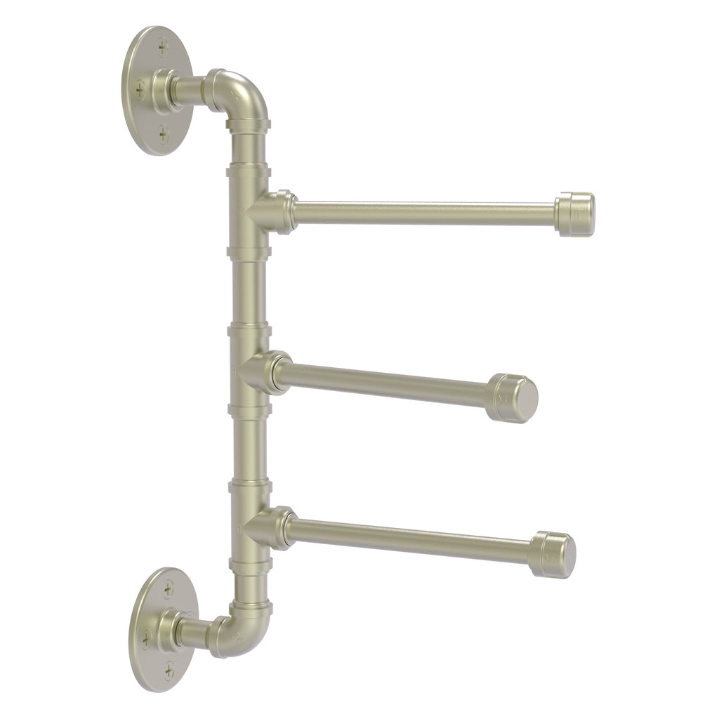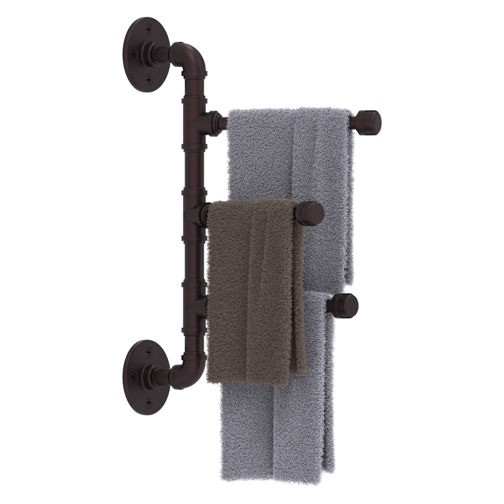 With its in vogue industrial look, this Allied Brass Swing Arm Vertical Hand Towel Bar is sure to be the highlight of your bathroom's decor. Its three horizontal bars can rotate independently to allow you to position your hand towels so they are nicely displayed and easy to grab. When not holding a towel, each bar can be swung close to the wall so it's out of the way. The Pipeline vertical towel bar can also be a handy solution for holding kitchen towels.
